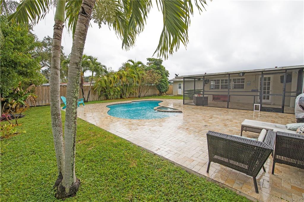 Beautiful home in prestigious Hollywood Hills. This entertainers dream FULLY REMODELED OPEN CONCEPT, 4 bedroom/2 bath home, with garage is located on a quiet street in the heart of Hollywood Hills! The home features a 4 year old roof, full hurricane protection including new IMPACT windows/garage door, sprinkler system, crown molding, a huge 200 square foot dining room for entertaining, recessed LED lighting, circular driveway and so much more. The fully updated custom kitchen boasts GE stainless steel appliances including a gas stove, quartz counter tops and 2 pantries. Master B/R has a walk-in closet, and fully updated en-suite bathroom with marble shower/floors and quartz countertop. Large private fenced in yard with pool and huge travertine patio (with child safety gate). Move right in!