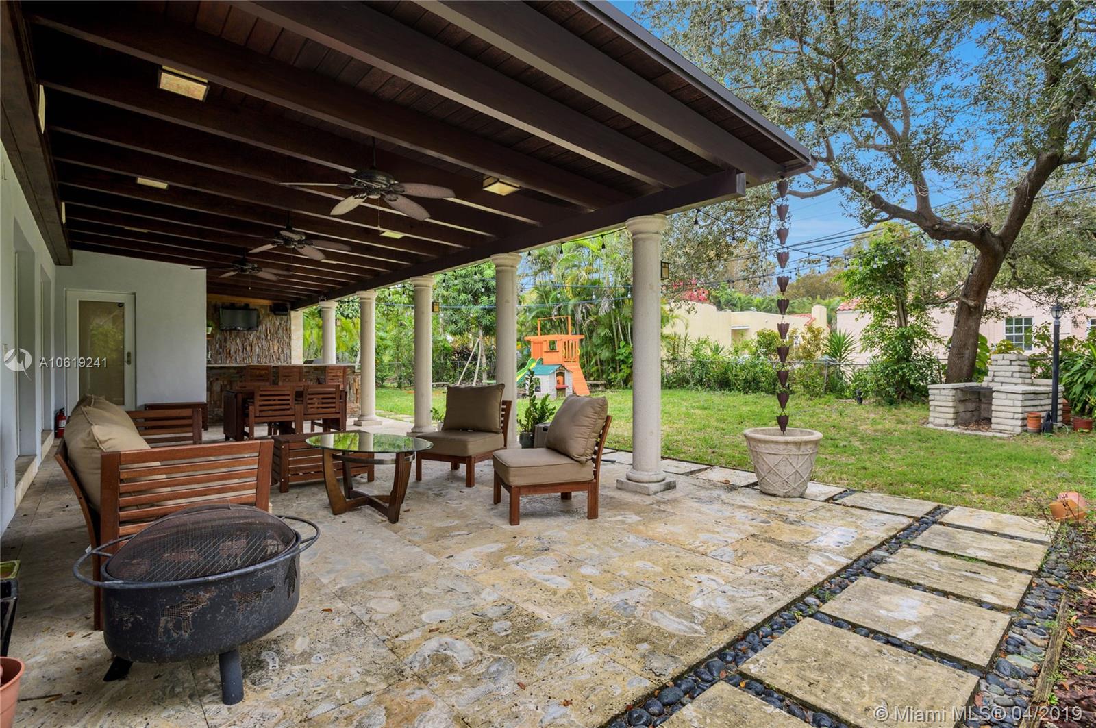 Your private sanctuary 15 min walk from Miracle Mile. Beautiful home filled with natural light on a quiet street. Highly sought-after Coral Gables area with A-rated schools. Perfect for relaxing, ideal for entertaining. Large lot with room to add a pool. Walk through the entrance and feel the inviting vibe from the expansive living area. This home has great updates (impact windows, KitchenAid/Weber stainless steel appliances, outdoor playset, etc). Other nice features: working fireplace, plenty of closets, smart lighting, security camera. Beautiful backyard with covered patio and BBQ island. Well-fed sprinkler system is great for gardening. Fenced-in yard gives you privacy. Friendly neighborhood where you can take a walk under the lust tree canopies. This home has it all! Easy to show!