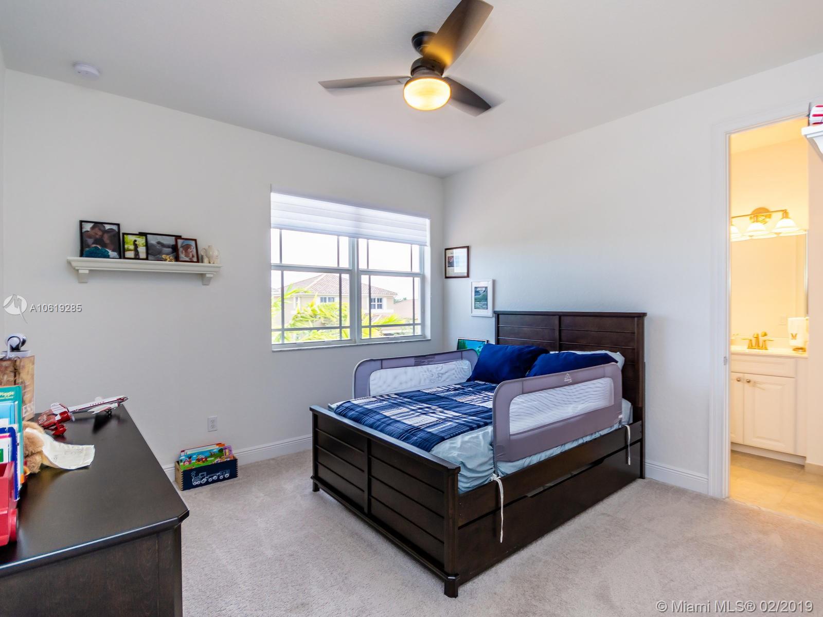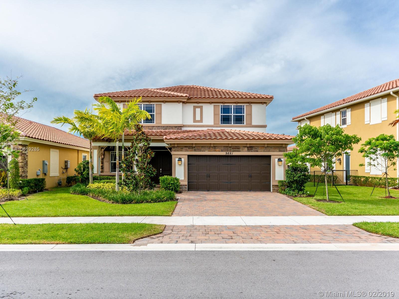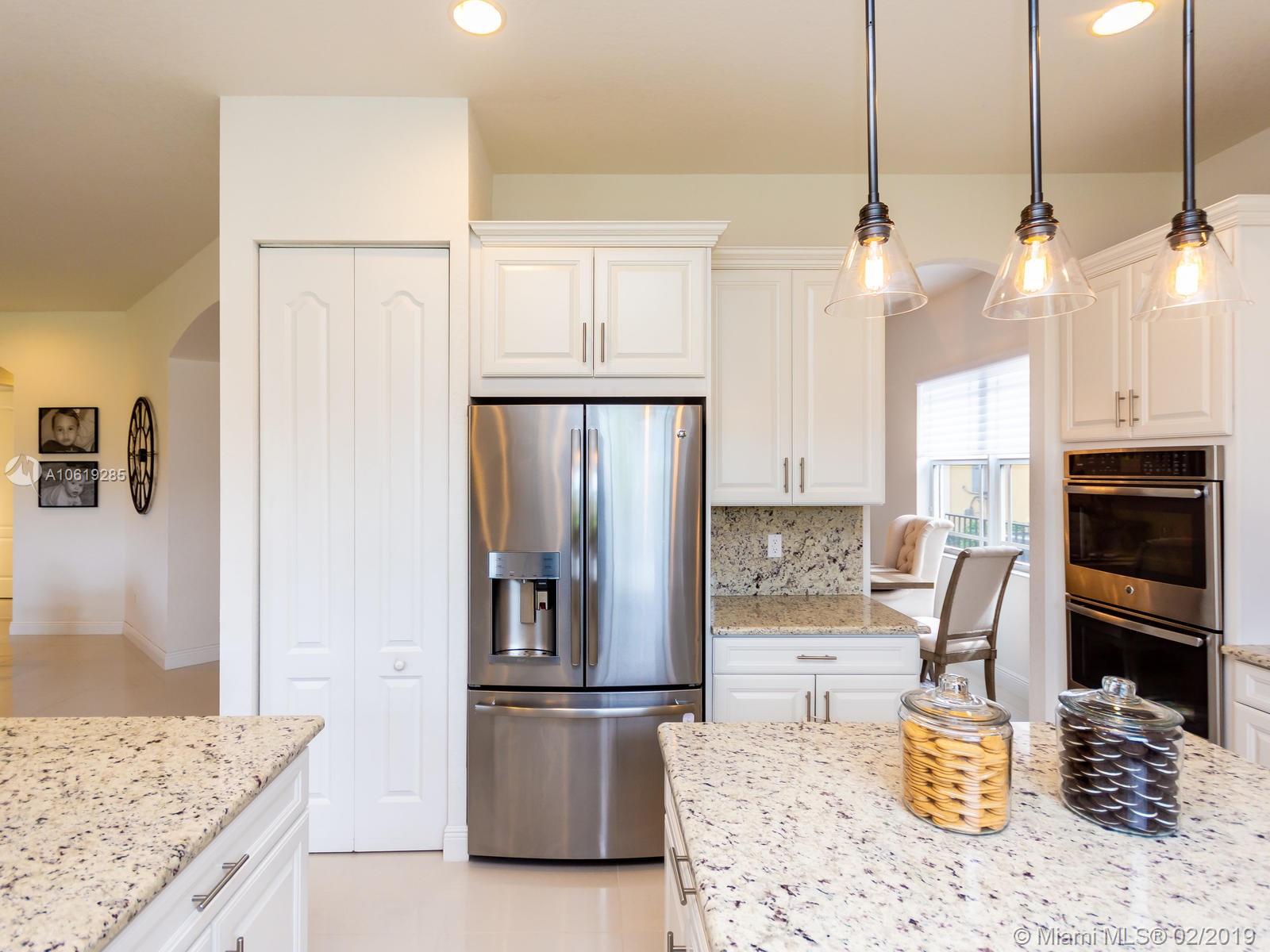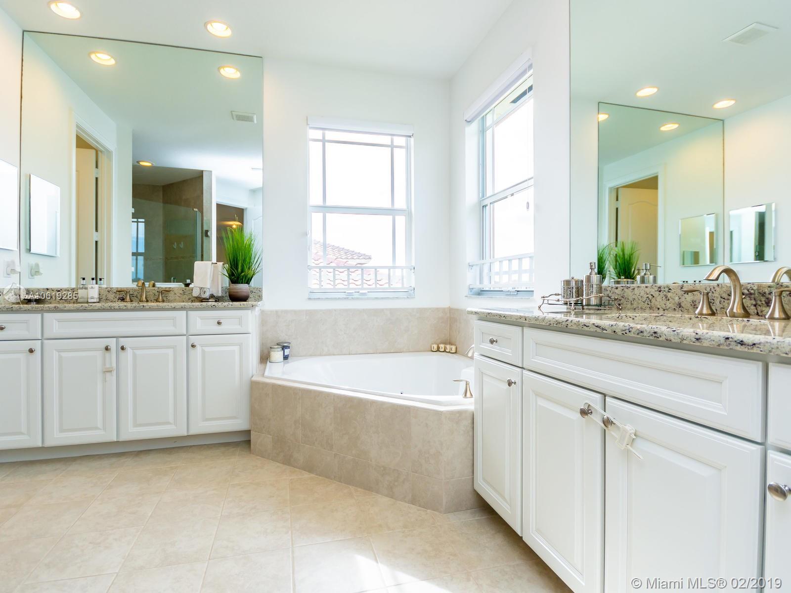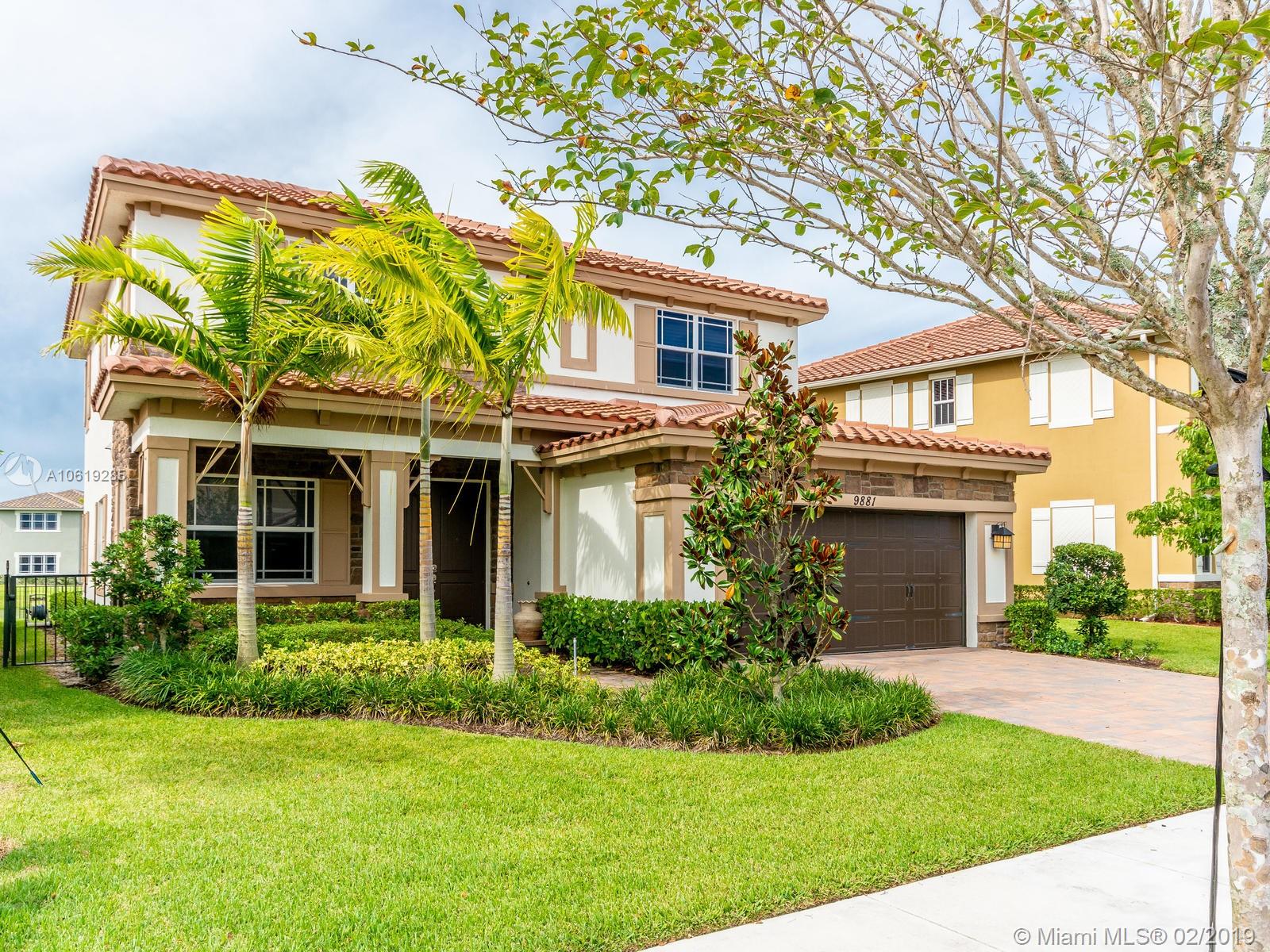 Look no further! The best of Miralago, this waterfront executive model comes with over $55K in upgrades, immaculately kept. High ceilings, polished 24" porcelain tile and wood floors make for a dramatic entrance into this stunning home. A beautiful white kitchen showcases this stunning home with granite countertops, a double oven & energy efficient gas range, overlooking a large fenced in backyard. 4 beds| 4 full baths plus a small guest bedroom/office on the 1st floor gives you plenty of options, includes a lovely cabana bath. Impact windows throughout. Plenty of room for your own pool. Resort style prestigious community with a state-of-the-art pool, fitness & aerobics center, grand ballroom, spa w/sauna and steam room & basketball/tennis courts. HOA includes lawn care. A+ rated schools.