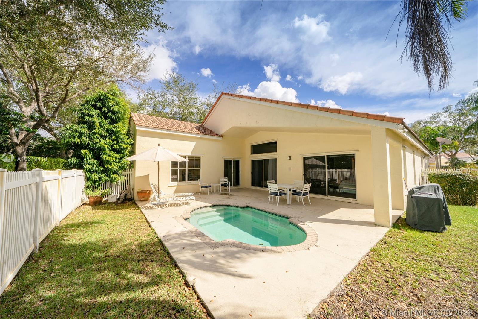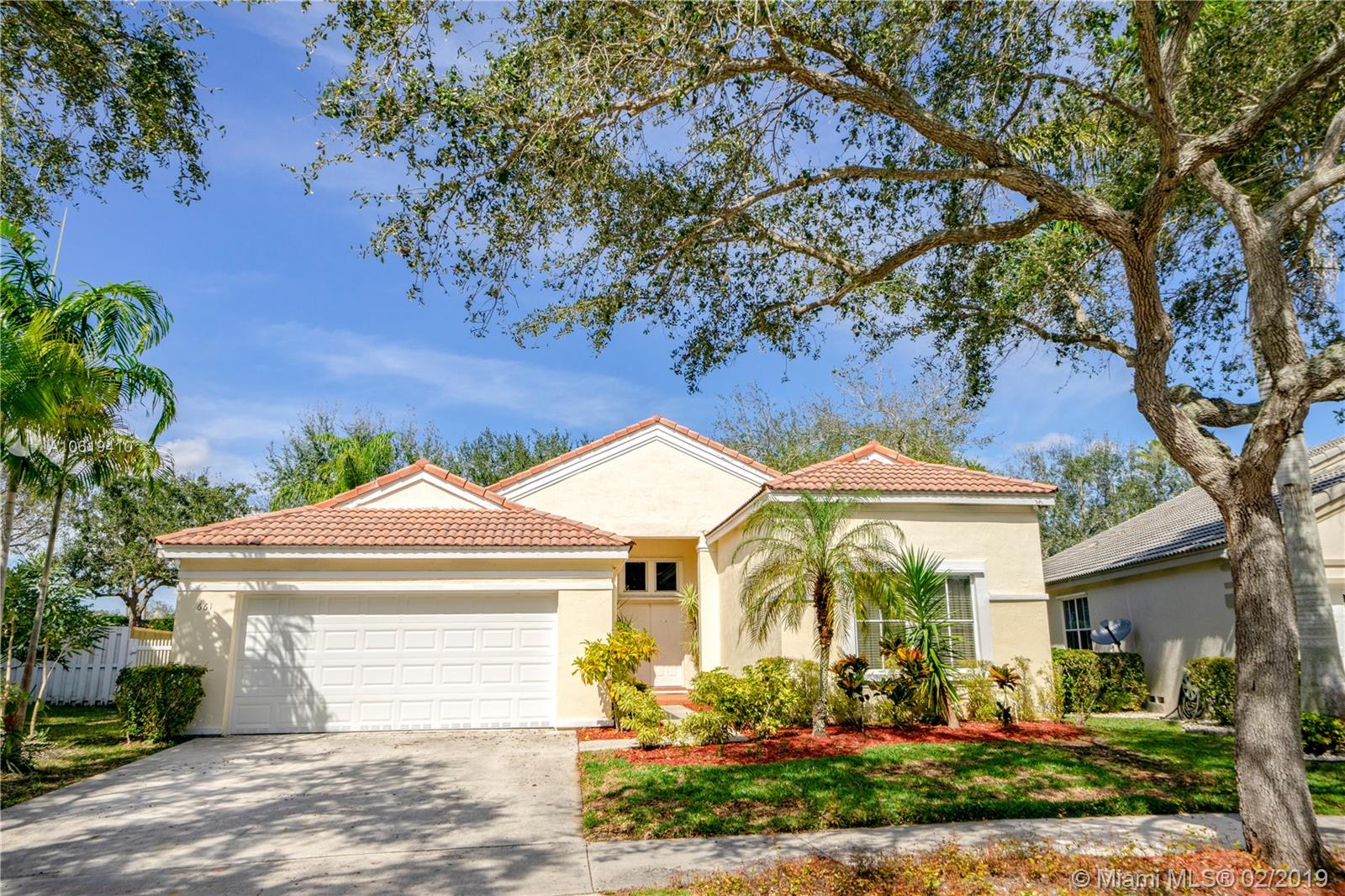 Enjoy all the best the great city of Weston has to offer! Located in highly desirable gated community of North Lakes. Beautiful single family home featuring 4 bedrooms, 2 1/2 baths, two car garage & pool! Laminate wood in all living areas, custom California Closets in all bedrooms. Exceptional layout boasting high volume ceilings with lots of natural light. Spacious eat-in kitchen. Great pool area for entertaining (**OVERSIZED 6,713 SF PIE-SHAPED LOT**). A+ school system; walking distance to Eagle Point Elementary School (rated #9 in the tri-county area). Attends Tequesta Trace Middle School and Cypress Bay High School. Fabulous community! Amenities include community pool, picnic area, kids playground, community park, and much more... Guard gated entry with 24 hrs. security. Easy to show!
