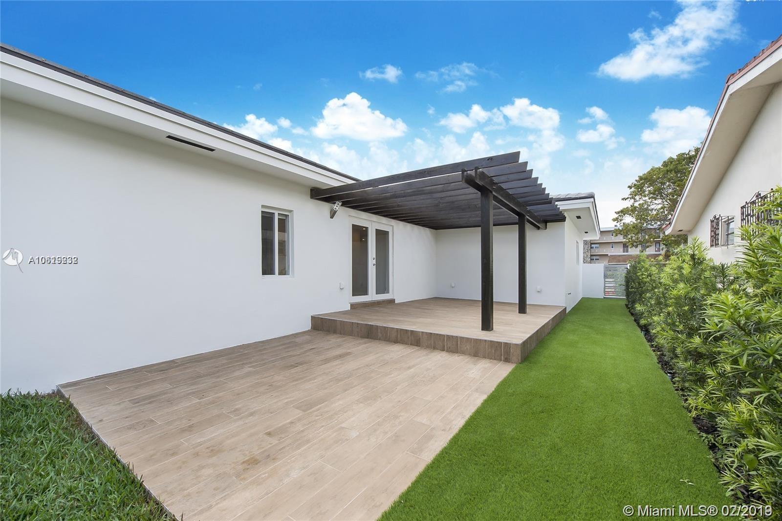 Modern home in prestigious Coral Gables! This gorgeous one story house is completely remodeled with attention to details. This home features 3 bedrooms, and 2 bathrooms. Veneta Cucine Italian Kitchen with Quartz Counter Tops and Custom-made Cabinets. Modern bathrooms with State of the Art Showers. Master with custom built-in closet. Spanish Tile floors. New Roof. High impact windows with shades. Spacious patio with wooden deck and outdoor lighting, great for entertainment. One Car Garage. New Air Conditioning. Ring Always Home technology and much more! Neighbors with the beautiful residences of Country Club Prado. Centrally located with easy access to Miracle Mile, Downtown Miami, Brickell and the Beaches. See this incredible value and make it your home!