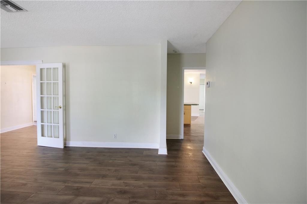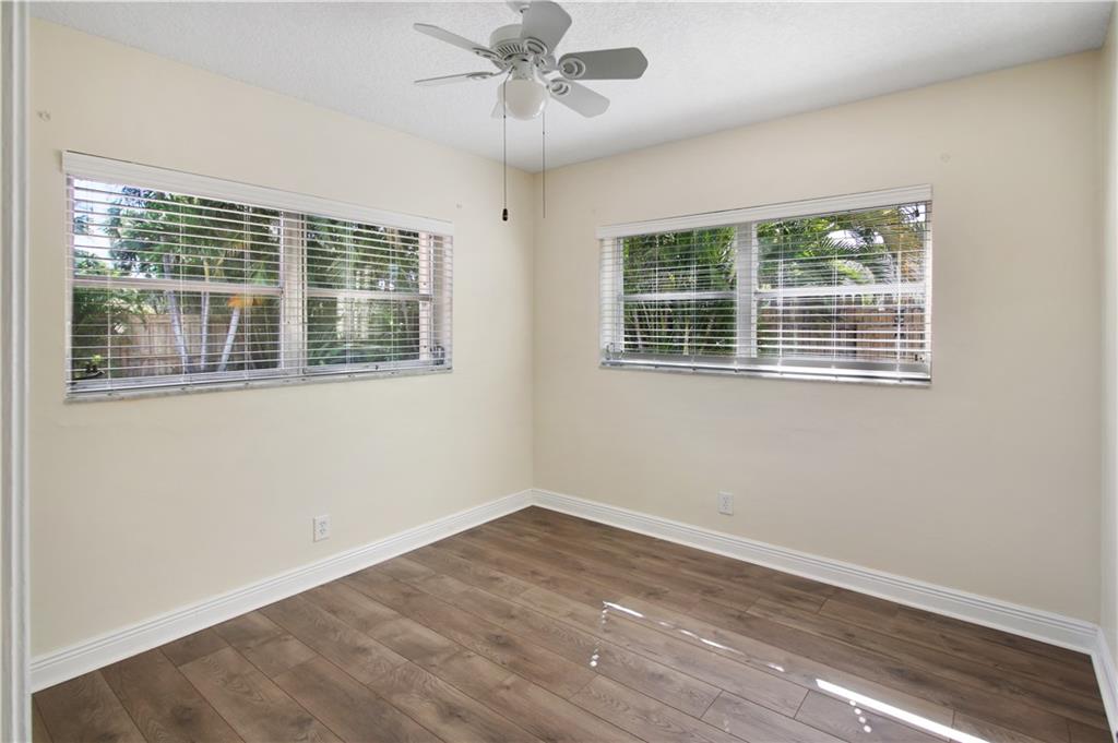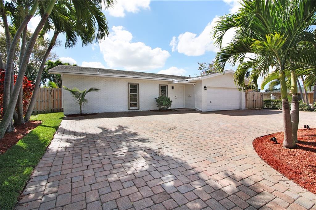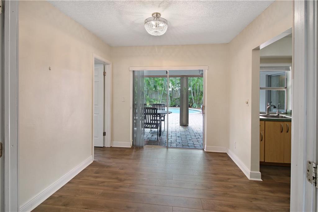 3 bedroom 2 bath with pool and 2 car garage! The previous owner has opened up the 4th bedroom to make a larger living area which makes this a great home for entertaining but can easily be converted back if desired. The fenced in back yard feels like an oasis with the freeform pool surrounded by beautiful landscaping and the pool gets sun all day with its southern exposure! Brand new flooring throughout, stainless steel appliances, updated bathrooms and hurricane shutters on every opening makes this home move in ready. The pool was also just resurfaced and comes with a 10 year warranty. A whole home warranty is also available at no cost to the buyer that covers everything from the roof to the appliances.