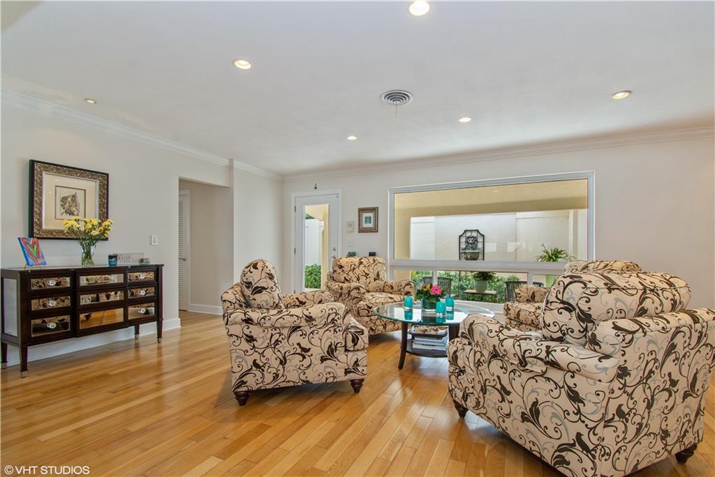 Gorgeous and tastefully updated home located in the heart of sought-after Imperial Point neighborhood. Private gated courtyard entry leads you into this wonderful and spacious open floor plan offering both formal living and family rooms with beautiful wood flooring throughout. Amazing eat-in chefs kitchen complete with center island, rich granite counters, high-end stainless appliances including built-in wine cooler. Spacious master bedroom suite w/ sumptuous bathroom, double marble vanity, glass enclosed shower & floor-to ceiling glass tile. Impact glass windows and doors, oversized 2-car garage, inside laundry room, wonderful & private outside areas with lush foliage perfect for entertaining.