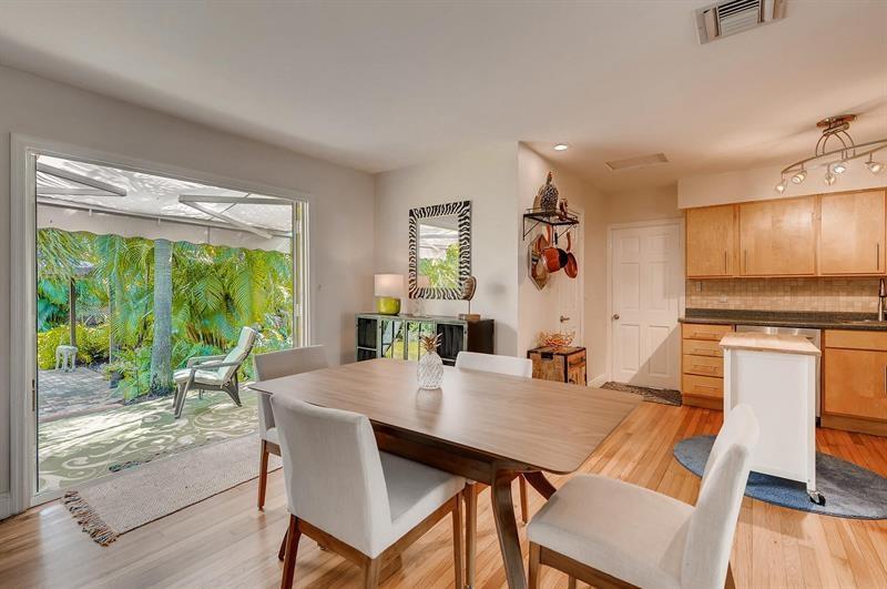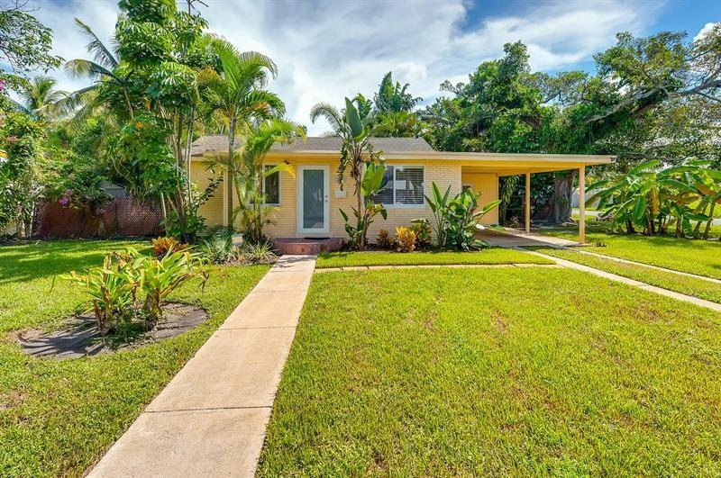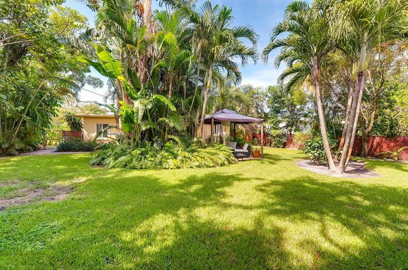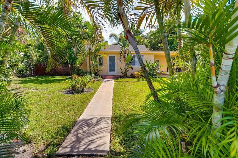 The tropical lush landscaping make this home a hidden gem!Charming home with open, airy concept; (property was a 2 bdrm; but divider wall was removed and converted to a 1/1. Wall can easily be installed to make it a 2/1 again). The home has original hardwood floors, recent impact windows and doors, stainless steel appliances, newer A/C, updated plumbing and electrical and hot water heater. Separate , spacious laundry room with newer washer/dryer. French doors over looking the garden area. with an over-sized deck . The backyard features a gazebo, paver patio,walkways and a water feature. Oversized lot has room for a pool. Large storage shed in back.Easy access to beach and pier,major highways, shopping and restaurants. Property zoned residential/multi-family, can build two units on lot.
