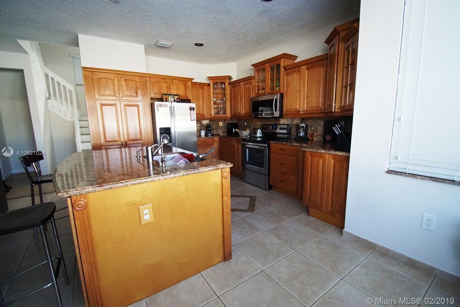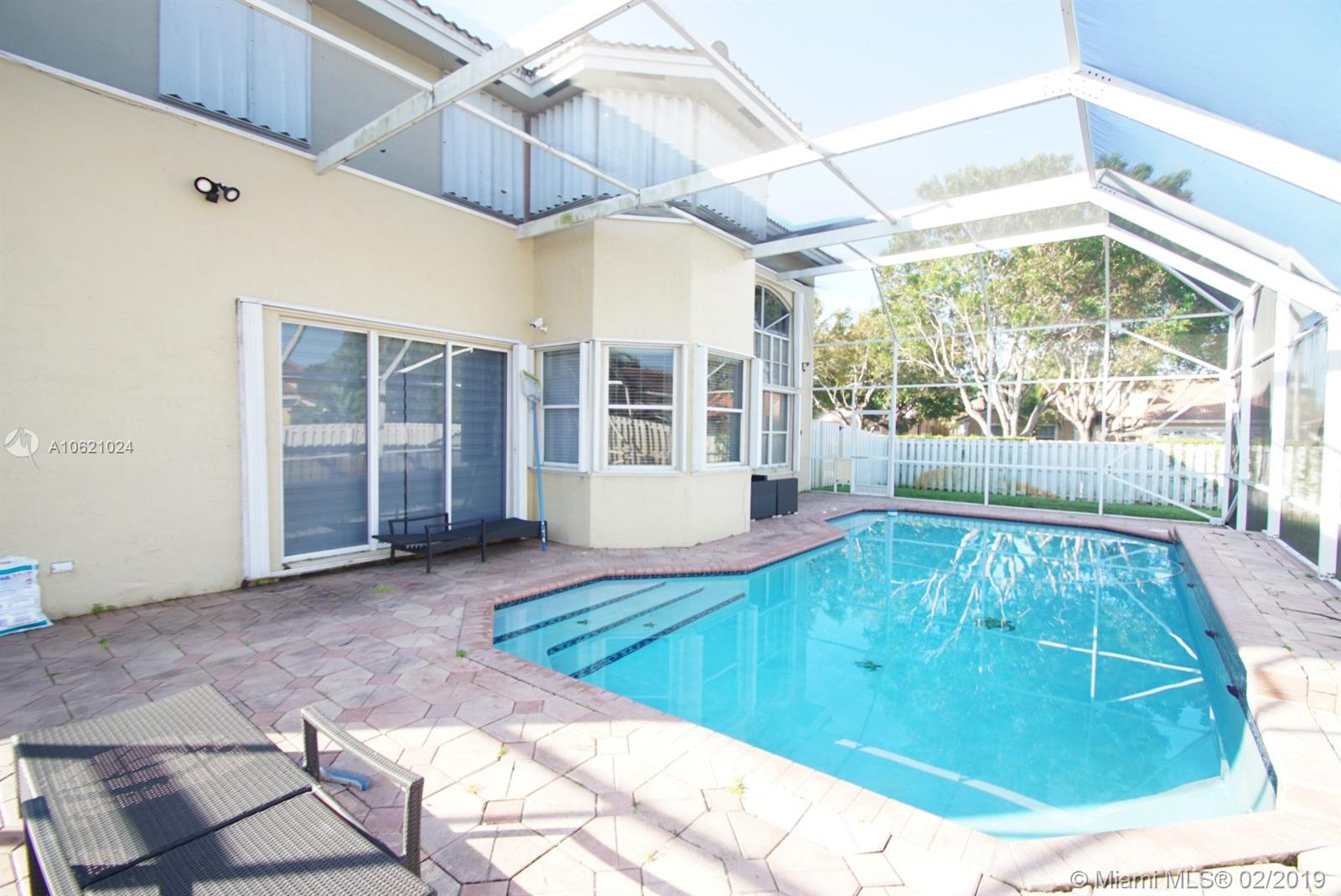 4 Bedroom 3 Full Baths one two-story home w/ 2 car garage. On a cul-de-sac, corner Lot. Professionally decorated with porcelain tiles & laminate floors. Gourmet kitchen w/ granite counter tops and stainless steel appliances. High ceilings, Large/Open Layout. In a quiet neighborhood w/ 24 HR security. 1 bedroom downstairs. Spacious private backyard w/ screened Pool.