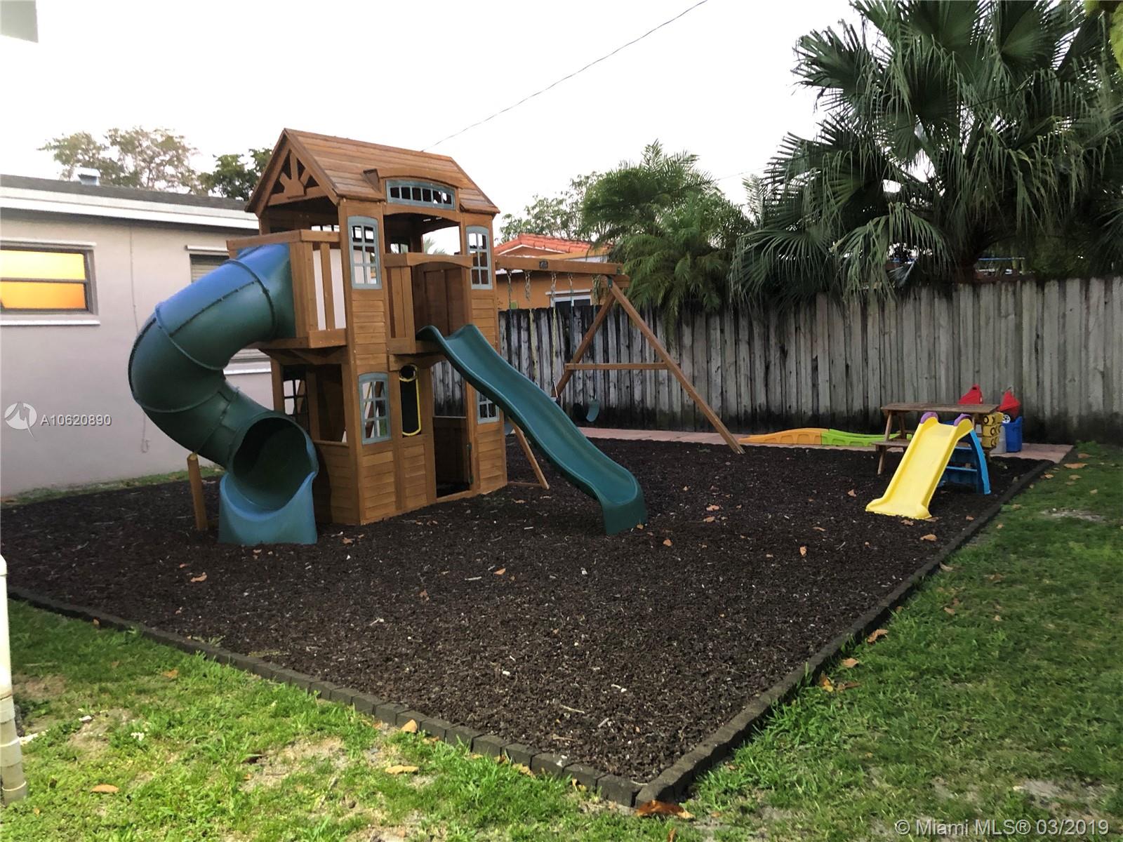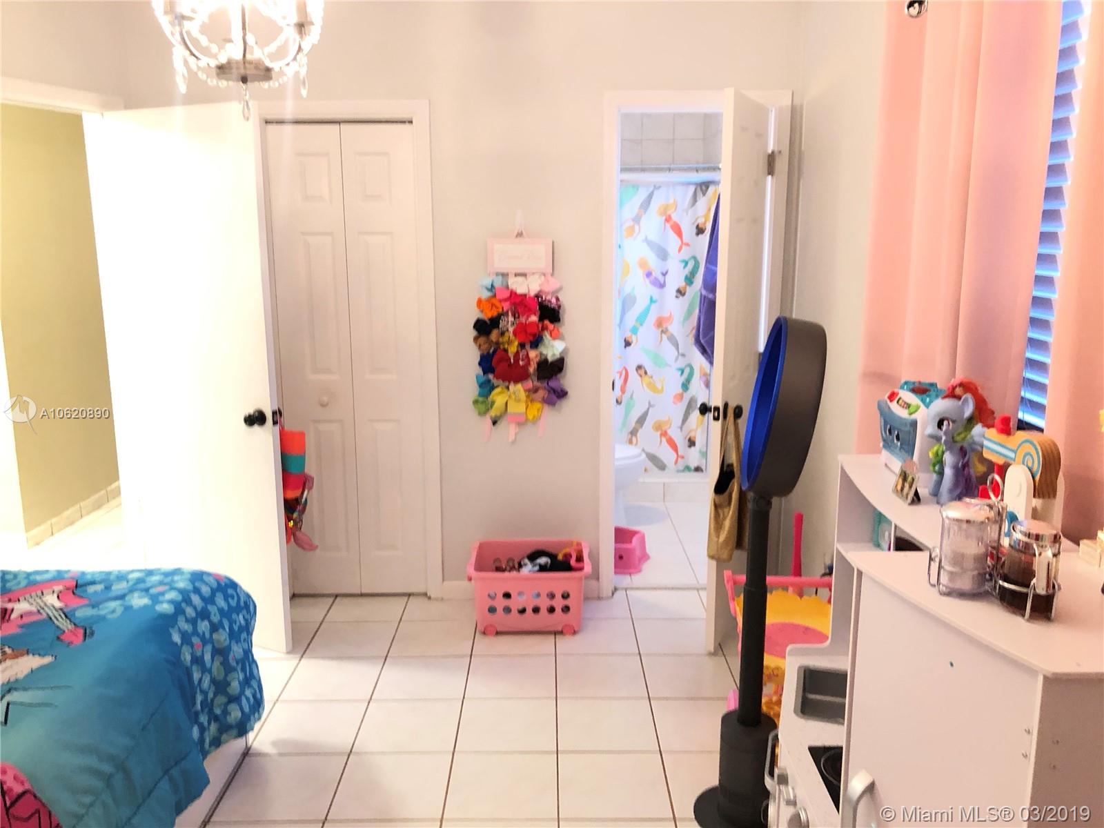 Beautiful large home in desirable area of Hialeah. This home has a circular driveway with plenty of parking space, large kitchen with pantry closet and stainless steel modern appliances, 4 bedrooms which 2 of them are master bedrooms, a total of 4 full bath, living room, formal dining room, family room, laundry room, plenty of closet space and a 15x15.5 study with its own full bath with separete entry/exit door to patio. A beautiful large back yard with covered patio area, fruit trees, shed and large kids playground included. Home has hurricane shutters. New roof, less than 3 years old with newer a/c & water heater. Home is in a beautiful neighborhood with nearby restaurants and shops. A must see!