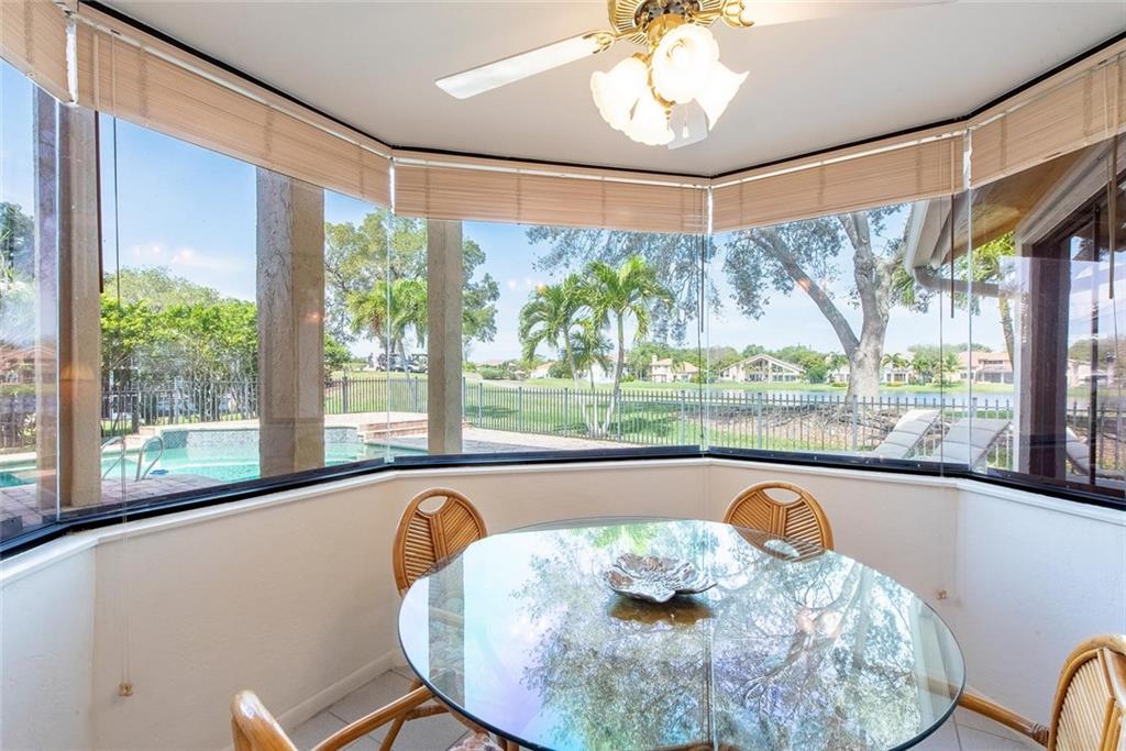 Million-dollar view of golf course & lake, by 4th green, 5th tee near 3rd hole. No fees or obligation for golf membership. Newer roof, accordion hurricane shutters & impact windows. Living areas & master sweeping panoramas of rolling greens. Tennis & playground in HOA. Fully fenced over-sized patio & BBQ built-in. Kitchen & master bath have been updated. 2 car garage & large circular driveway. Big family & breakfast rooms. Needs cosmetic TLC so priced commensurate. The value is here, the potential is excellent.