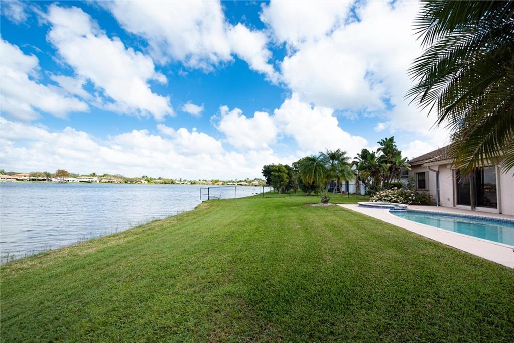 4/2 Lakefront Home- pool & spa 15000 sq.ft lot with plenty of green space for family activities perfect for enjoying that family Bar-B-Q while relaxing with the tranquil lake view. Roof approx. 2 years old. Electric & Accordion shutters. 2 zone AC system. Remodeled Kitchen with granite and stainless appliances. split bedroom layout. master with 2 large walk-in closets. Great family neighborhood with excellent schools. Conveniently located and easy access to all major highways.