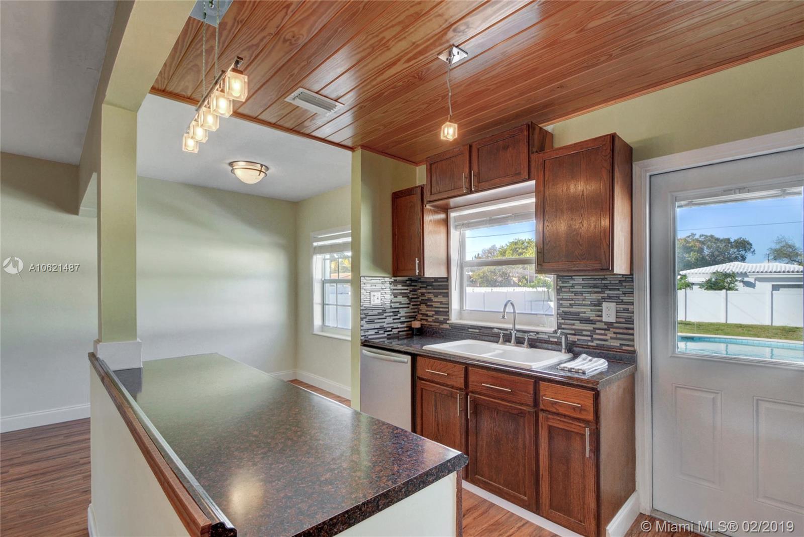 Beautifully renovated and updated 2/1 pool home in the heart of East Hollwood. New kitchen, stainless appliances, ceiling fans, huge backyard with free form pool and entirely fenced with new PVC fencing. Outdoor shower, spacious carport, and nice size bedrooms. Separate laundry area. Tankless water heater. Great home for entertaining. Light and bright, open floor plan and quiet, charming neighborhood.