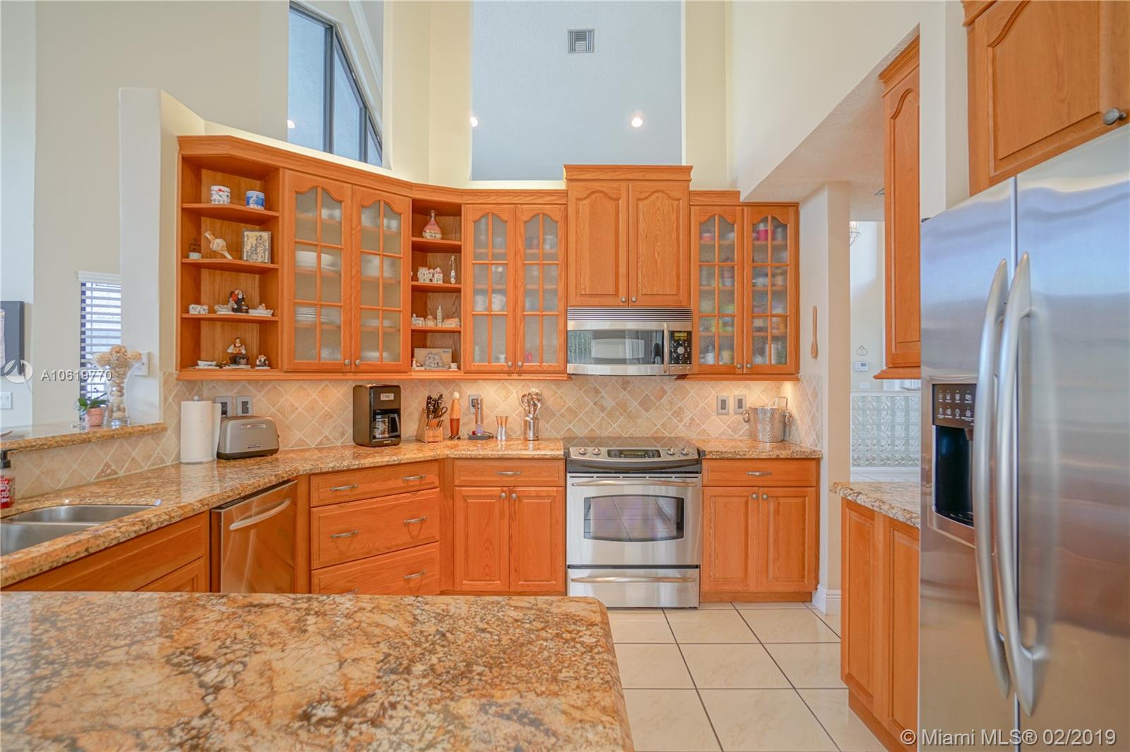 Fabulous West Coral Springs home, From the moment you open the front door and see the super high ceilings and wide open floor plan you will fall in love with this home. Upgraded kitchen and bathrooms, large screened patio leading to an open pool area, accordion shutters, post Wilma roof, huge fenced back yard and a large pool. All bedrooms on 1st floor with an additional loft area for office/play area for the kids etc.