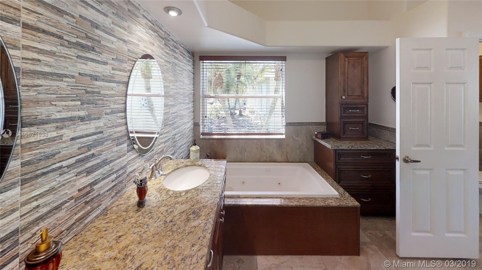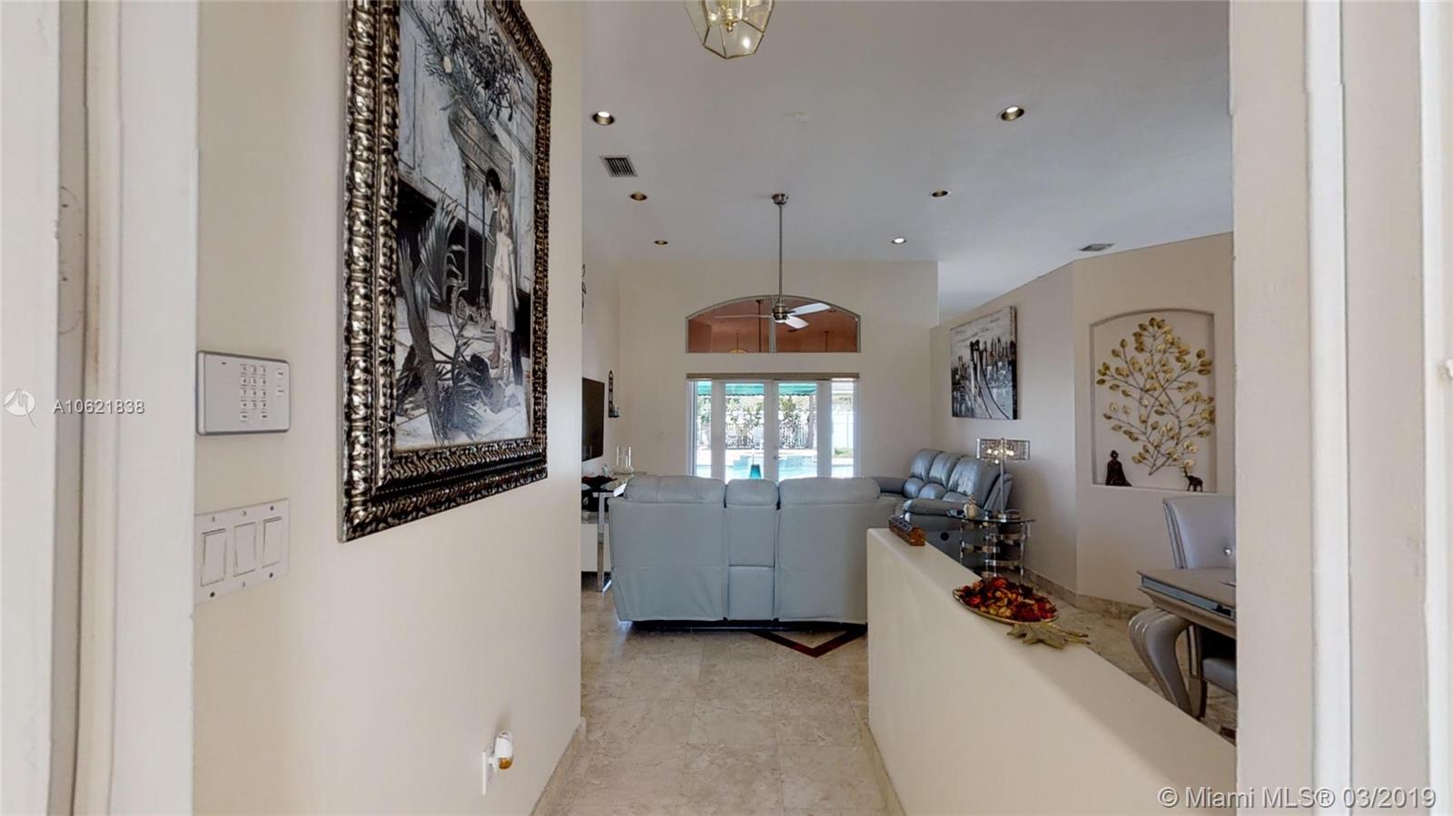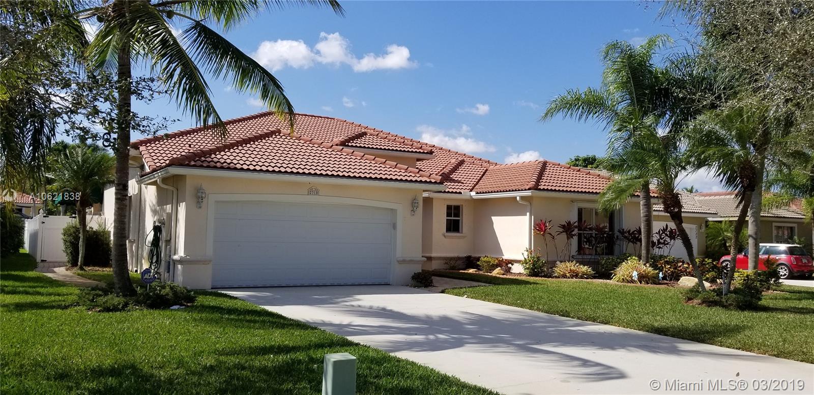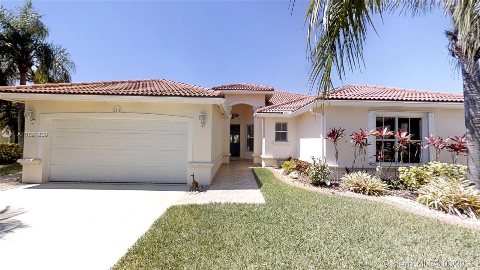 Beautiful one story estate series pool home, with beautiful updates, 3 bedrooms, 2.5 baths, large garage for 2 cars, Huge lot 9,836 sq.ft. Stunning kitchen and bathrooms, large master suite w/ walk-in closet, Jacuzzi tub/glass rain shower, Hugh family room and formal dinging area. Lots of natural light, high ceilings, new swimming pool tile & lights, summer kitchen, New A/C unit, heated Pool, new landscaping with lighting system, Gazebo deck with new canvas, pool vacuum, automatic sprinkler system, new fence, both rear doors ( changed to impact) , new appliances, new walk way tiles in front and on side. This house is ready to go nothing left to do its impeccable! Private guard gated community with low maintenance fees. Click on the virtual Tour link icon to see the walk through tour.