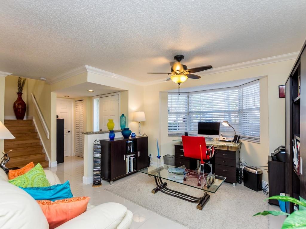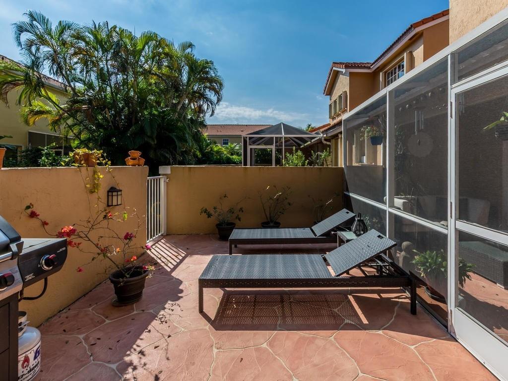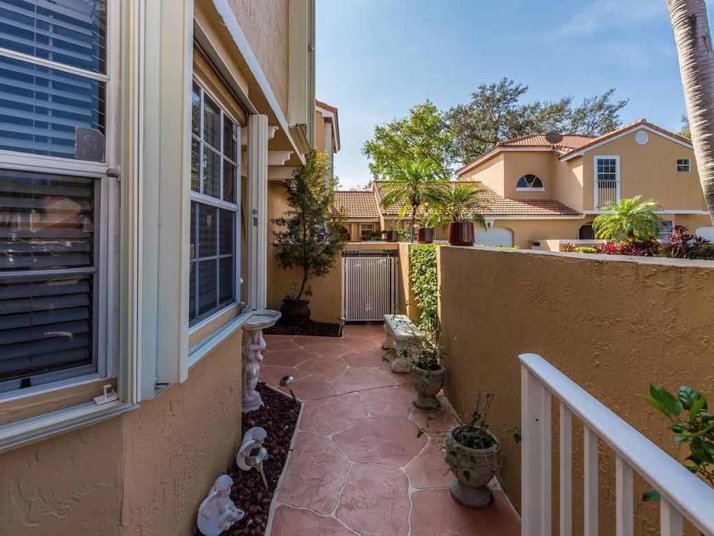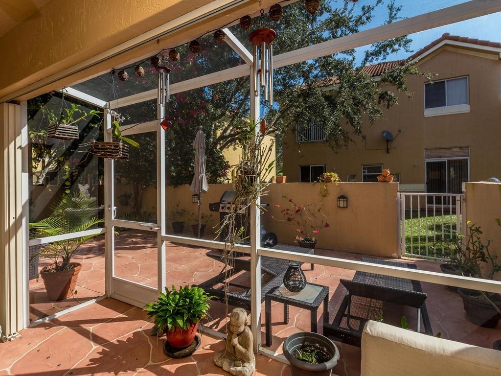 This beautiful townhouse located in well sought Portofino features a great open floorplan layout. The entrance steps into a formal living room with volume ceilings. Separate dining leads to a spacious open kitchen including stainless steel appliances, granite countertops, wood cabinetry & an island overlooking the family room & breakfast area. Updated powder room on this floor. Plenty of windows & french doors that allow natural light. 3 bedrooms upstairs with master featuring walk in closet, gorgeous bathroom & vaulted ceiling. European porcelain tile downstairs. Laminate floors upstairs. Back patio partially screened. Perfect for entertaining. 1 car garage w/guest parking. This is the most impeccable & upgraded townhouse in the subdivision. "A" schools & excellent location.