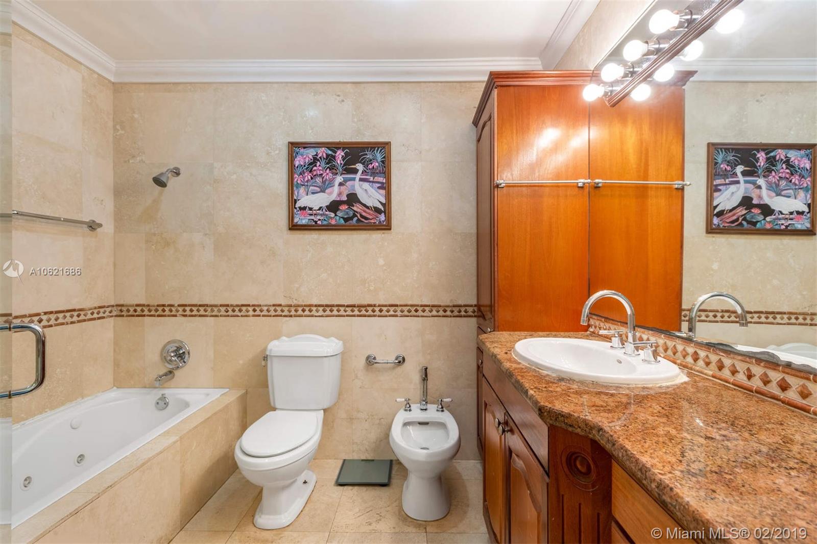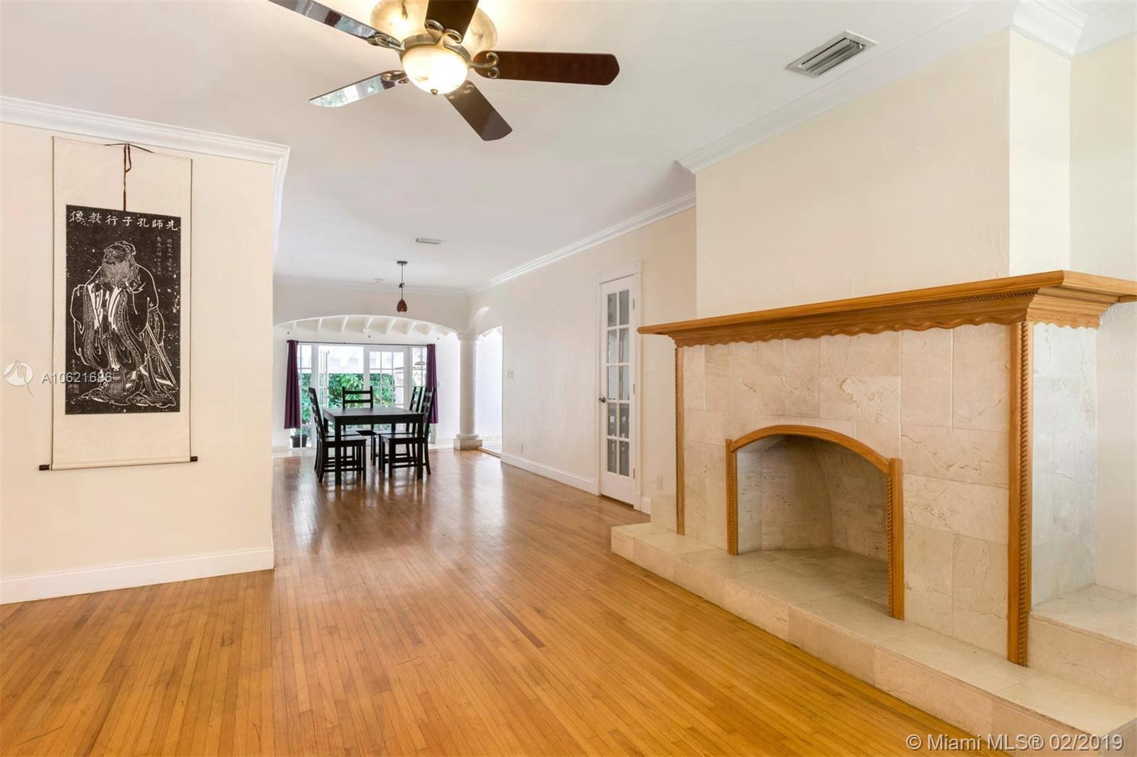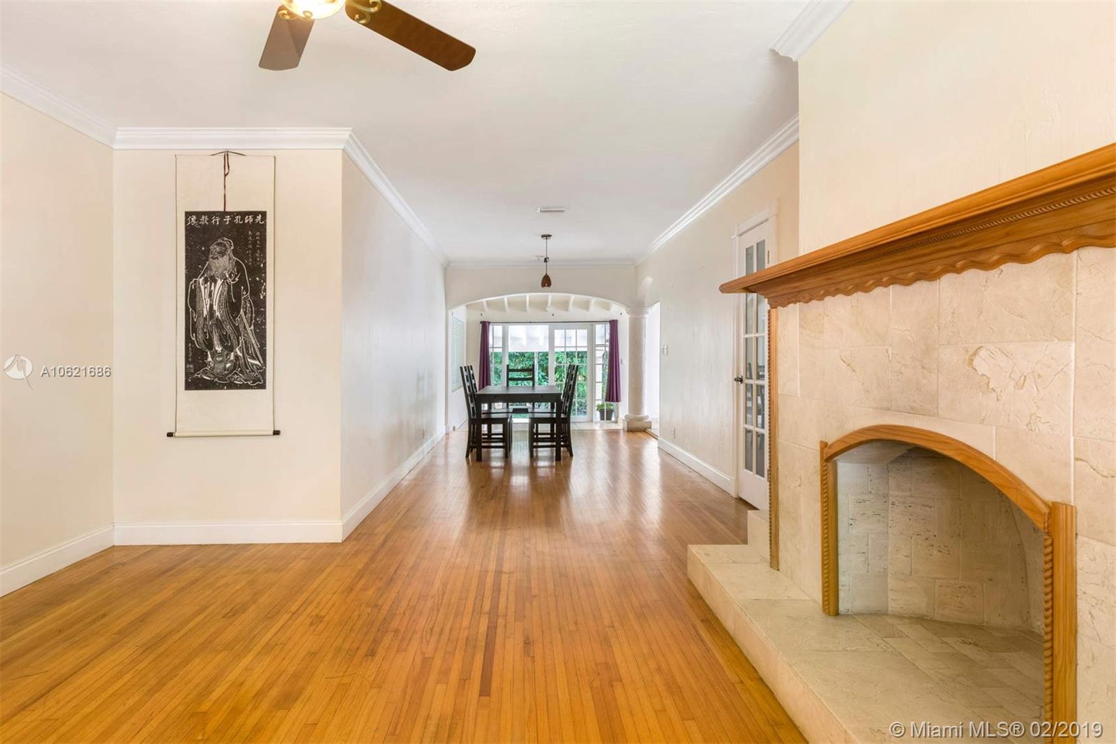 Location...location...location! Charming 2/2.5 in fabulous location on Riviera Drive at Blue Road just north of US 1. Both master and second bedrooms have en-suite baths and walk-in closets. Master bath with separate shower and jacuzzi tub. Open kitchen with granite countertops and plenty of storage. Original hardwood floors are in great shape throughout, lots of architectural details, crown molding, French doors, working fireplace. Covered patio. 1 car attached garage. 7500' lot with room for expansion or space for pool in rear. Large yard with fruit trees. Panel shutters. Near University of Miami, downtown Coral Gables, South Miami, and Coconut Grove.