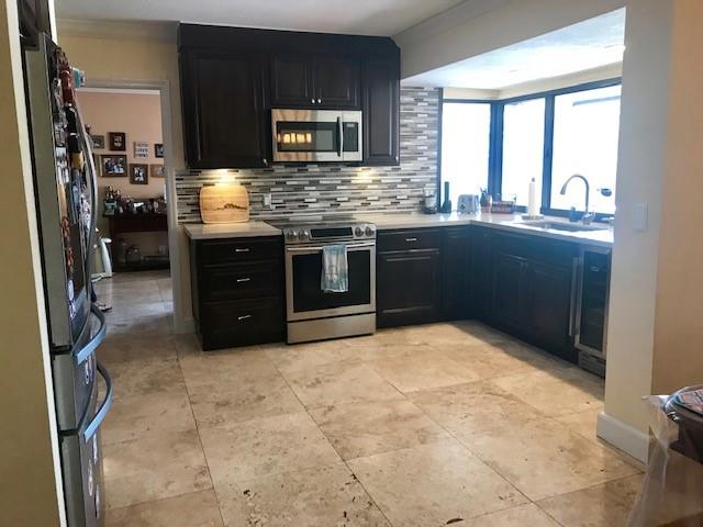 $10,000 price reduction!!! Huge fenced corner lot on a Cul-de-sac. Updated 5 Bedroom/2Bath home. Extensive use of pavers for circular driveway, walkways and pool deck. House features Travertine Marble flooring throughout. Remodeled kitchen with wood cabinets, quartz counters and glass tile backsplash. Master bath has been remodeled; guest bath is updated. Additional upgrades include crown molding, barn doors, hurricane shutters, impact glass kitchen window and a tankless water heater. Screened porch with wood tile flooring and new flat roof.