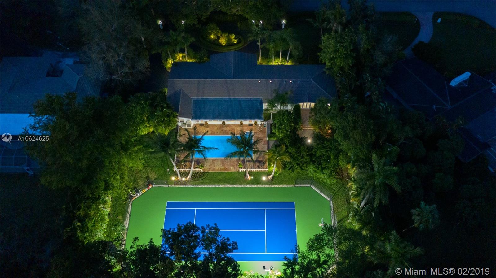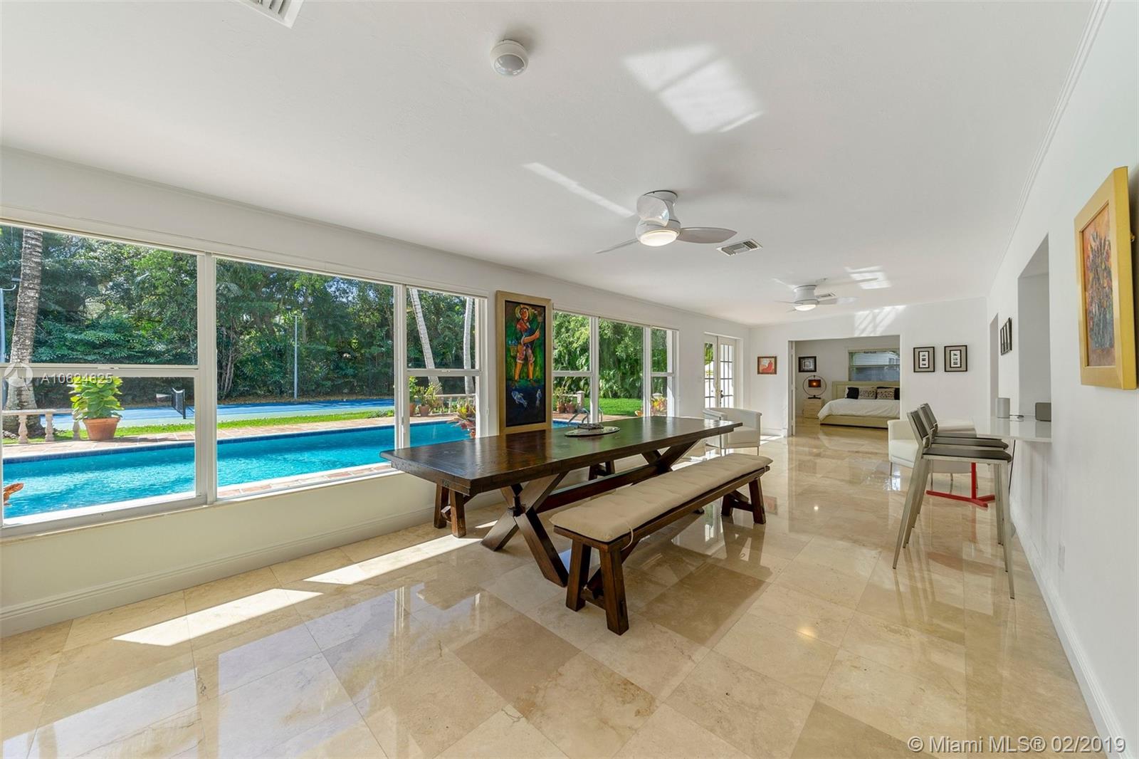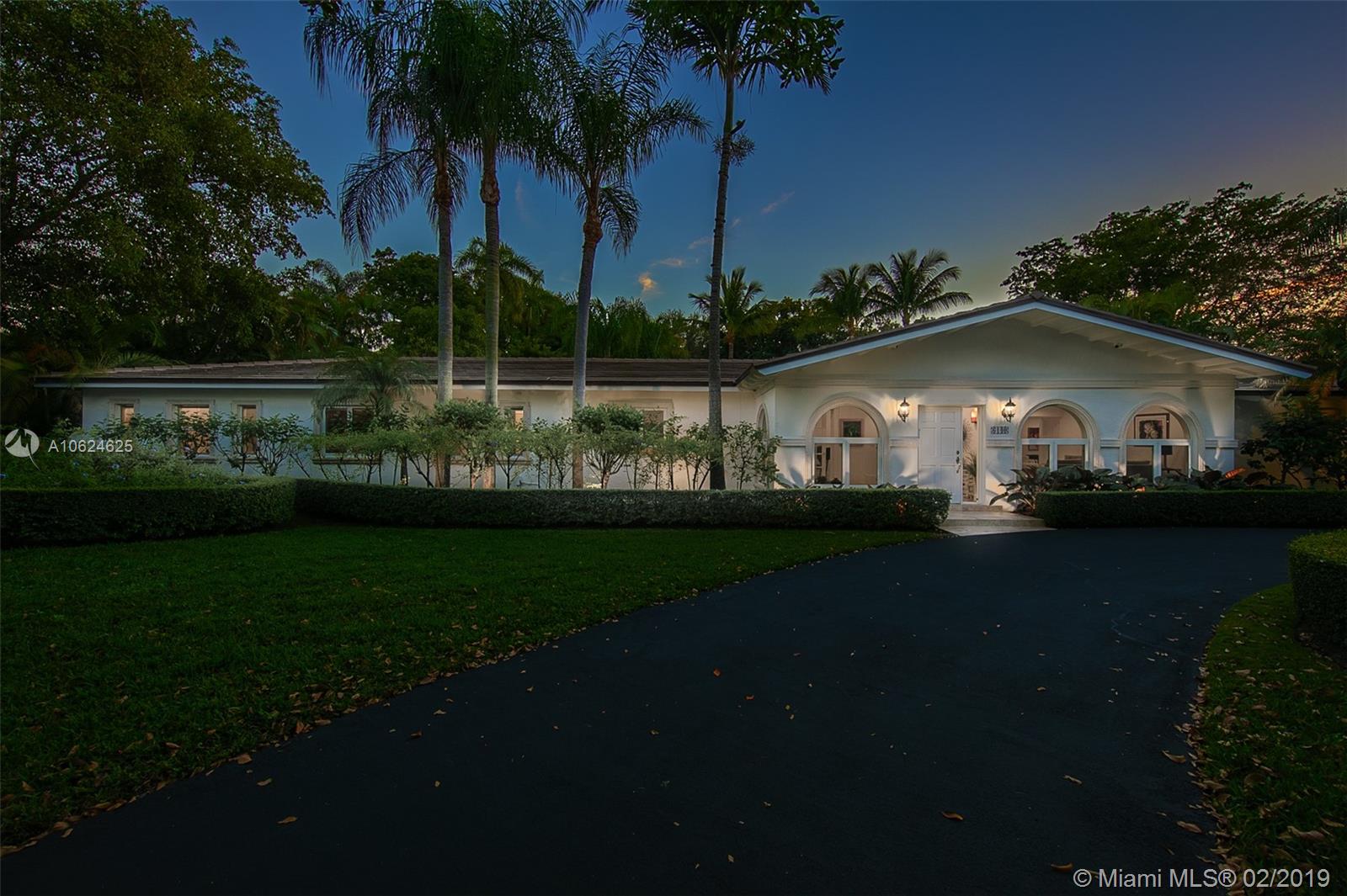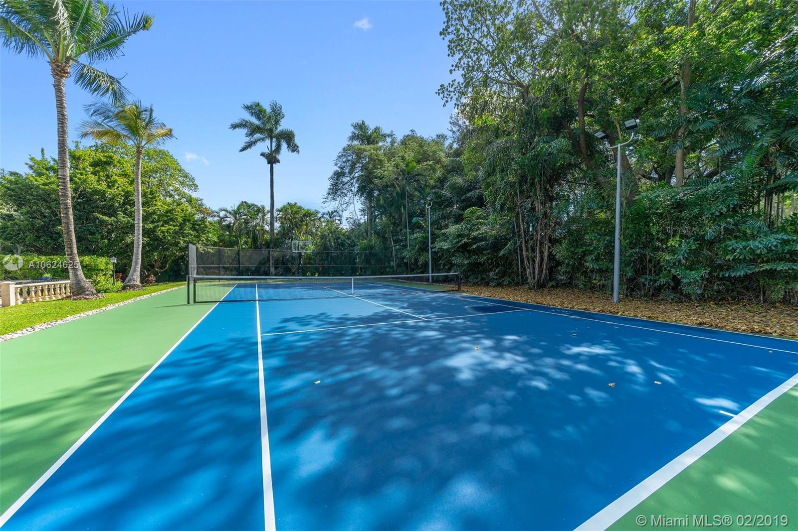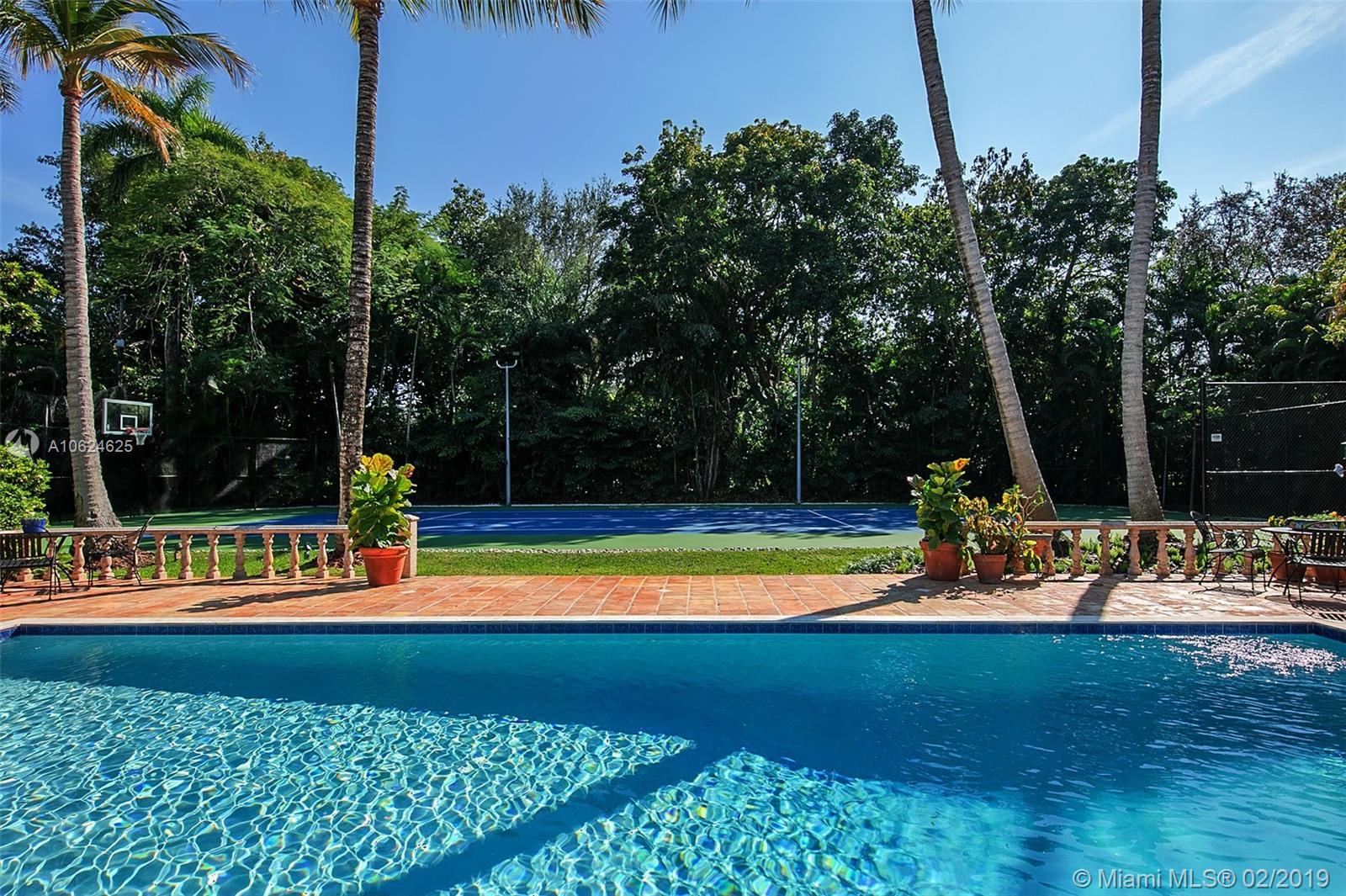 Ideal gated acre family home beautifully updated with style and comfortable everyday living in prime N. Pinecrest. Lovely tree-lined and cul-de-sac street, with tropical gardens, convenience and luxury of local parks, prime schools, superb shopping and dining. 6 BD, 5BA, bright open rooms, marble floors, quartz & SS kitchen w/passthrough pool views. Formal living & dining rooms, separate media room, relaxing family room opening to salt water pool, lighted tennis court and built in BBQ for your outdoor entertaining. Master bedroom wing w/private terrace, marble bath, & walk-in closets. 4 additional bedrooms, 3 baths, plus split 1/1 guest rm. Impact windows, shutters for bedroom wing, 2014 roof, 2013 AC, full-house generator.