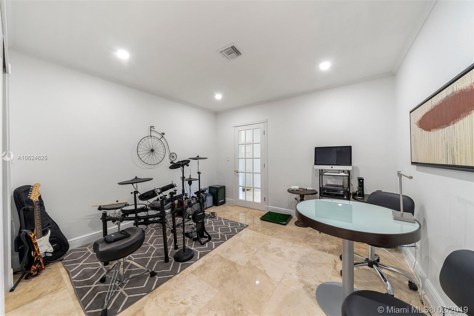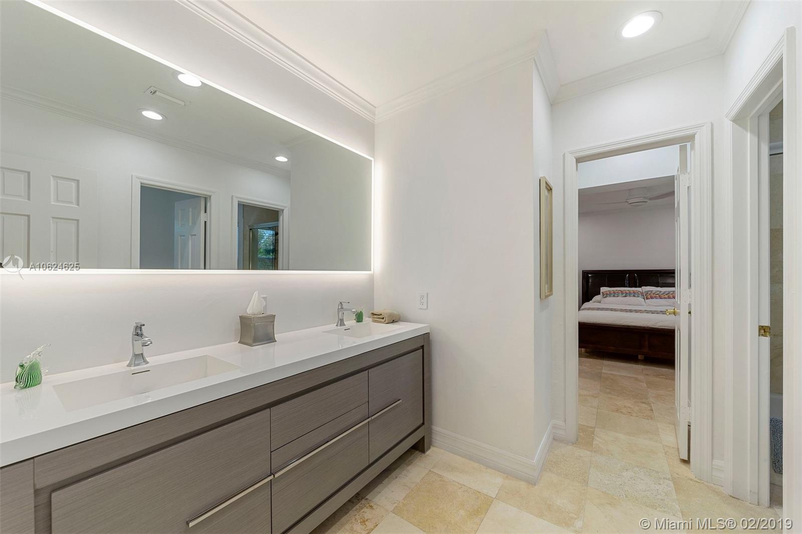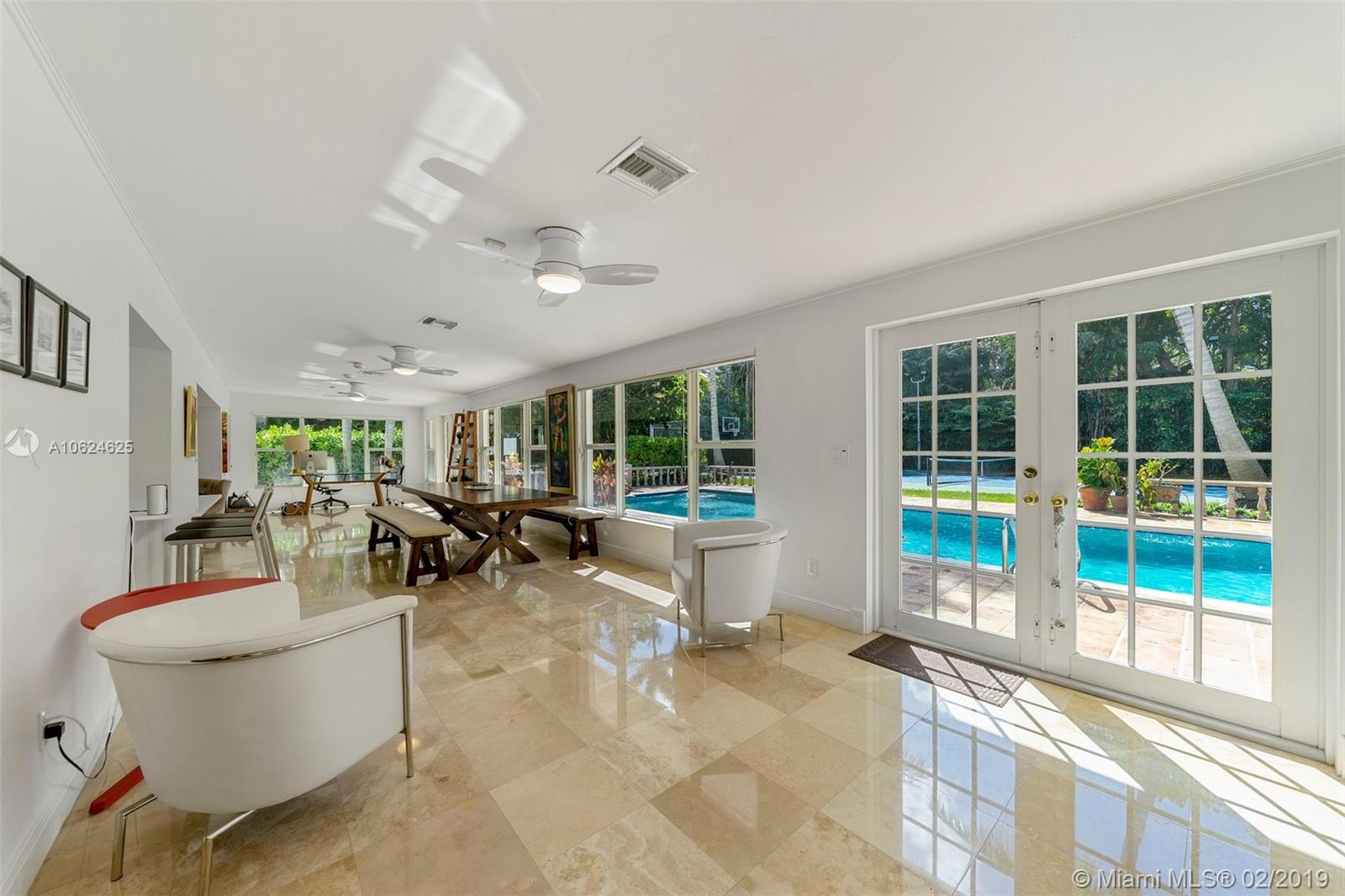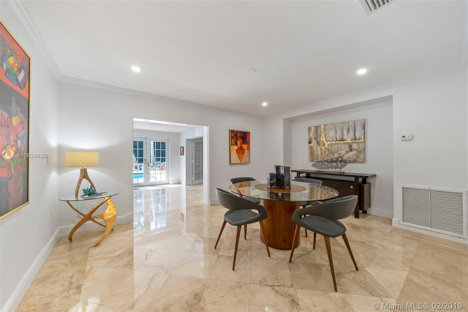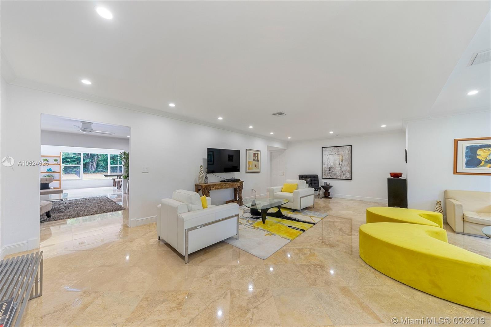 Ideal gated acre family home beautifully updated with style and comfortable everyday living in prime N. Pinecrest. Lovely tree-lined and cul-de-sac street, with tropical gardens, convenience and luxury of local parks, prime schools, superb shopping and dining. 6 BD, 5BA, bright open rooms, marble floors, quartz & SS kitchen w/passthrough pool views. Formal living & dining rooms, separate media room, relaxing family room opening to salt water pool, lighted tennis court and built in BBQ for your outdoor entertaining. Master bedroom wing w/private terrace, marble bath, & walk-in closets. 4 additional bedrooms, 3 baths, plus split 1/1 guest rm. Impact windows, shutters for bedroom wing, 2014 roof, 2013 AC, full-house generator.