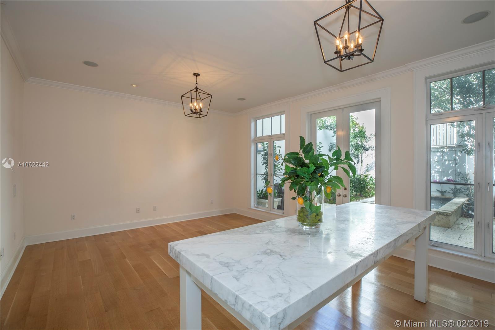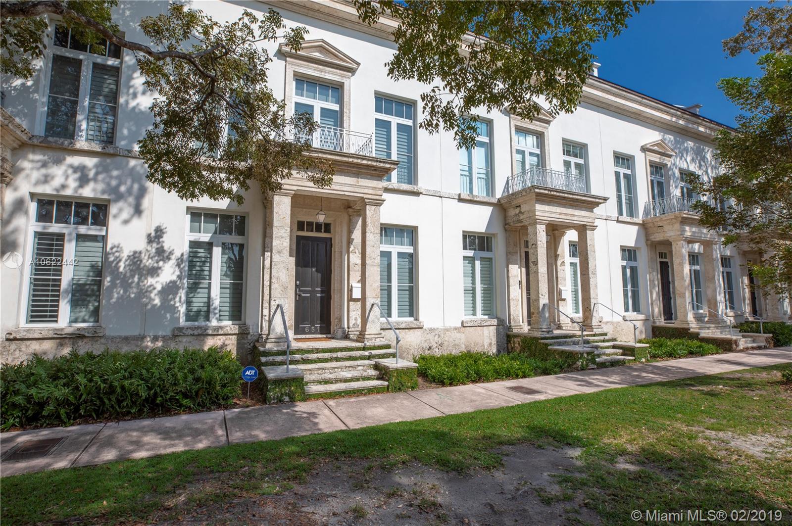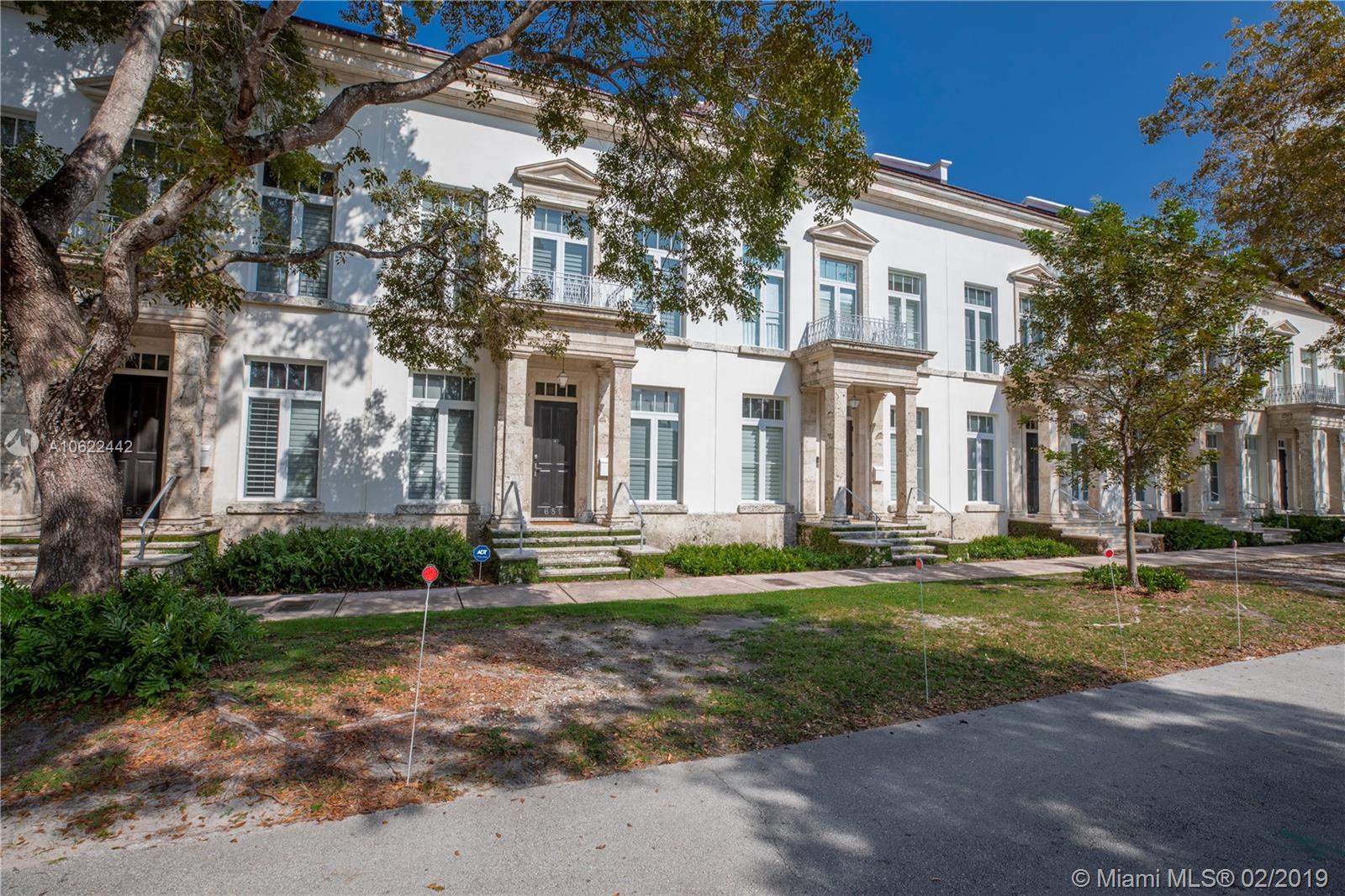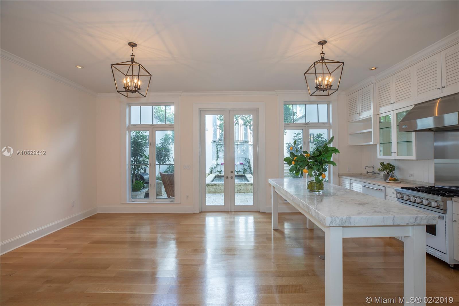 Sophisticated elegance abounds in this luxurious townhome in the award-winning Almeria Row. Volume ceilings, high end finishes, gleaming oak wood floors, and impact windows and doors are just some of the highlights of the timeless design. The open concept kitchen features Calcutta marble countertops and island, white louvered cabinets, top-of-the-line appliances and an expansive butler’s pantry. 4 bedrooms including 2 master suites in main house and 2 en-suite guestrooms above the 2-car garage. Separating the main house from the guest house is a private coral-stone courtyard centered by a serene pool/fountain. Enjoy refined living in a relevant location nestled among the trees on the beautiful Almeria Avenue and within walking distance to all that Coral Gables has to offer. SqFt per Tax.