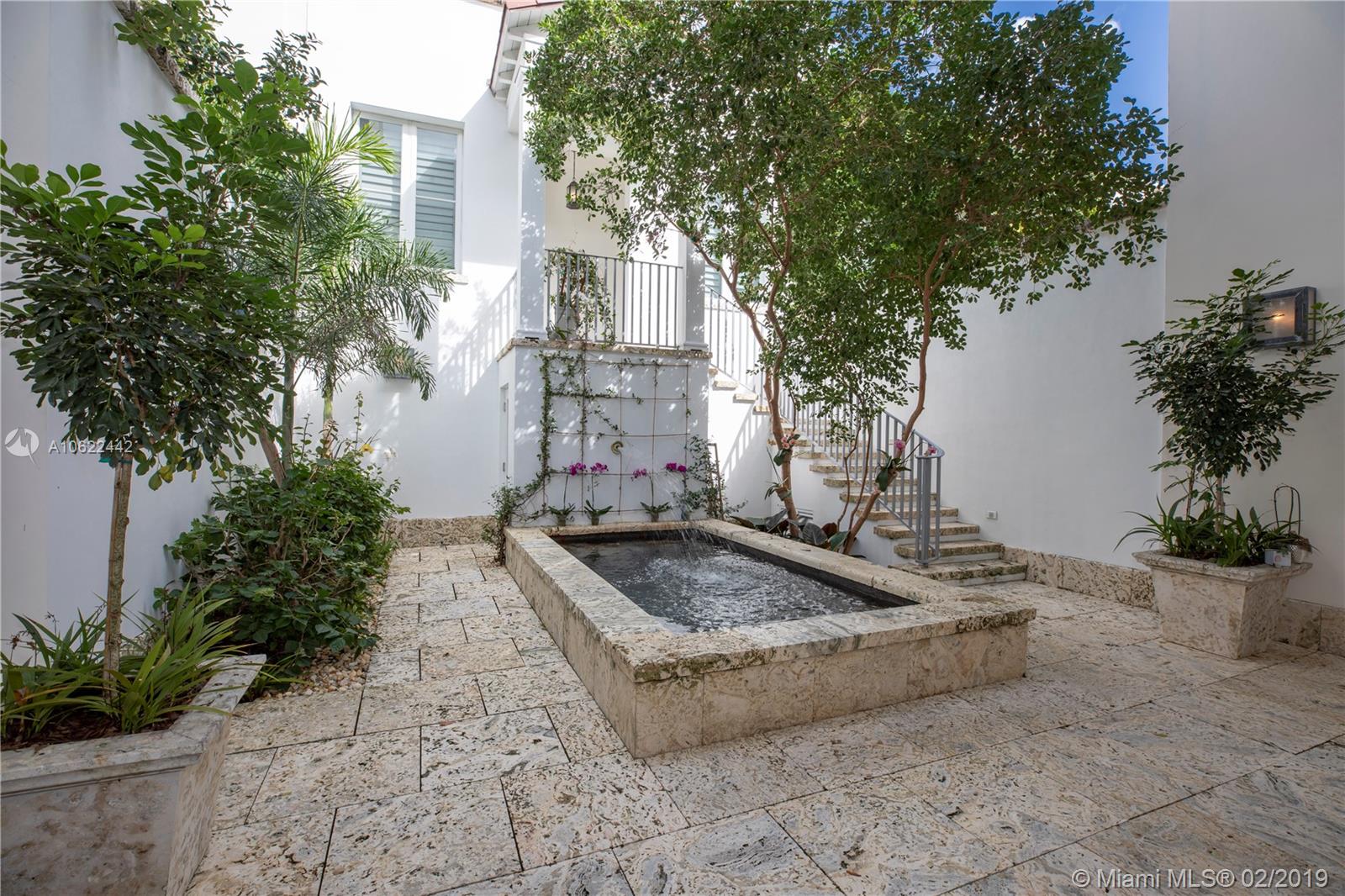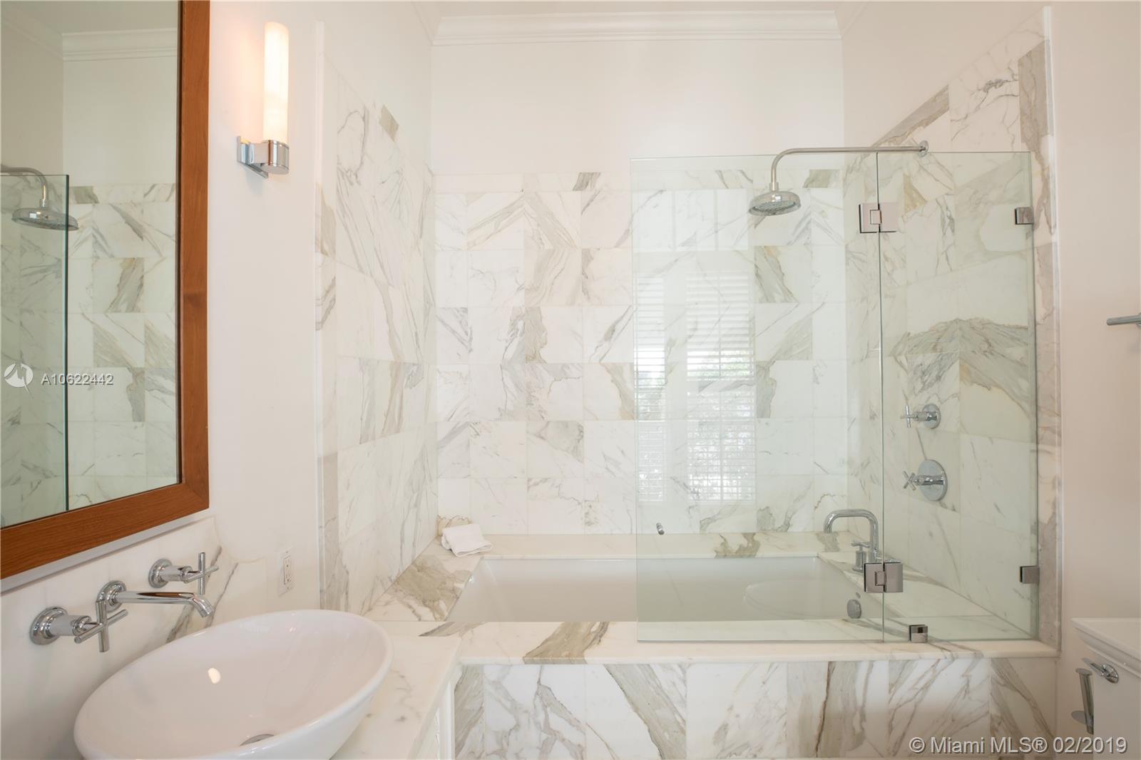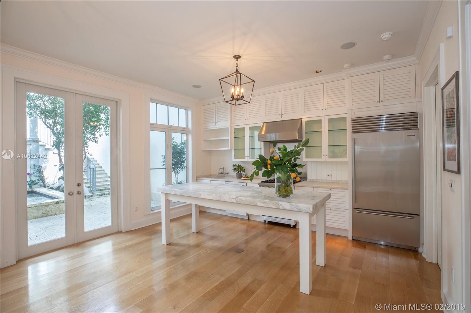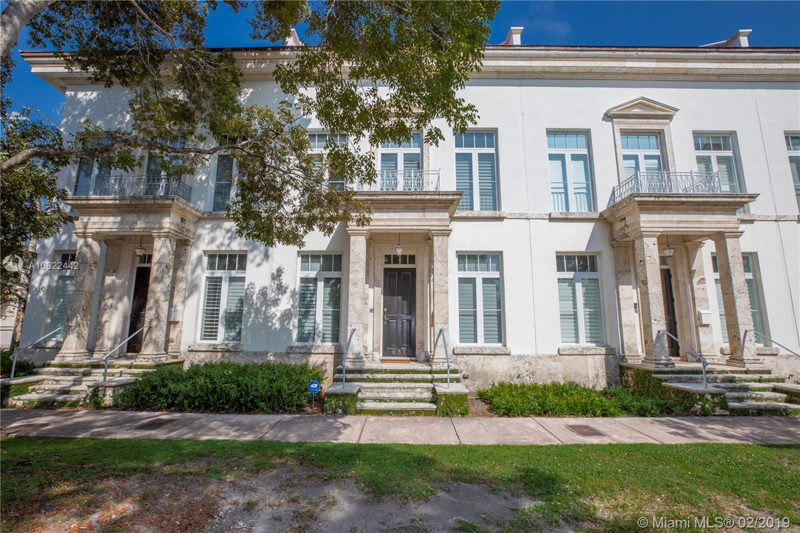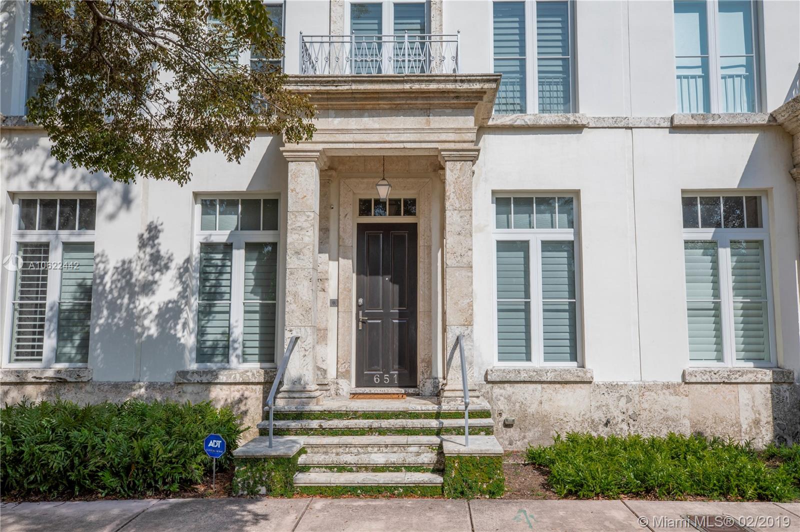 Sophisticated elegance abounds in this luxurious townhome in the award-winning Almeria Row. Volume ceilings, high end finishes, gleaming oak wood floors, and impact windows and doors are just some of the highlights of the timeless design. The open concept kitchen features Calcutta marble countertops and island, white louvered cabinets, top-of-the-line appliances and an expansive butler’s pantry. 4 bedrooms including 2 master suites in main house and 2 en-suite guestrooms above the 2-car garage. Separating the main house from the guest house is a private coral-stone courtyard centered by a serene pool/fountain. Enjoy refined living in a relevant location nestled among the trees on the beautiful Almeria Avenue and within walking distance to all that Coral Gables has to offer. SqFt per Tax.