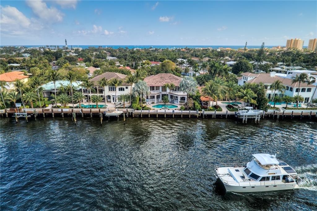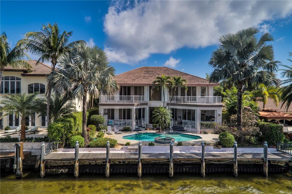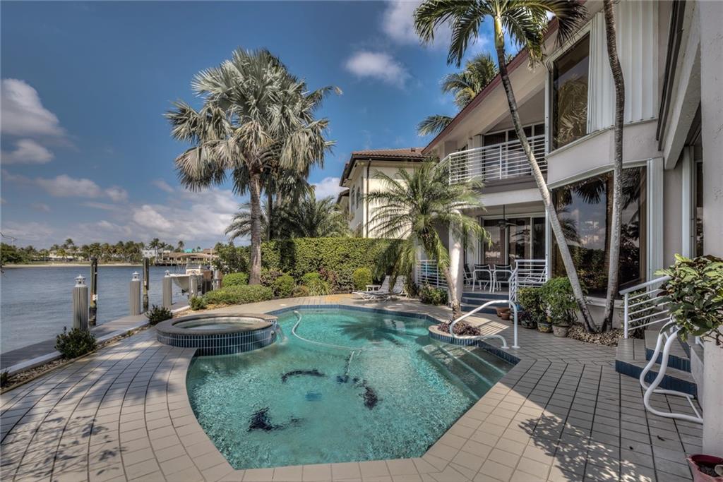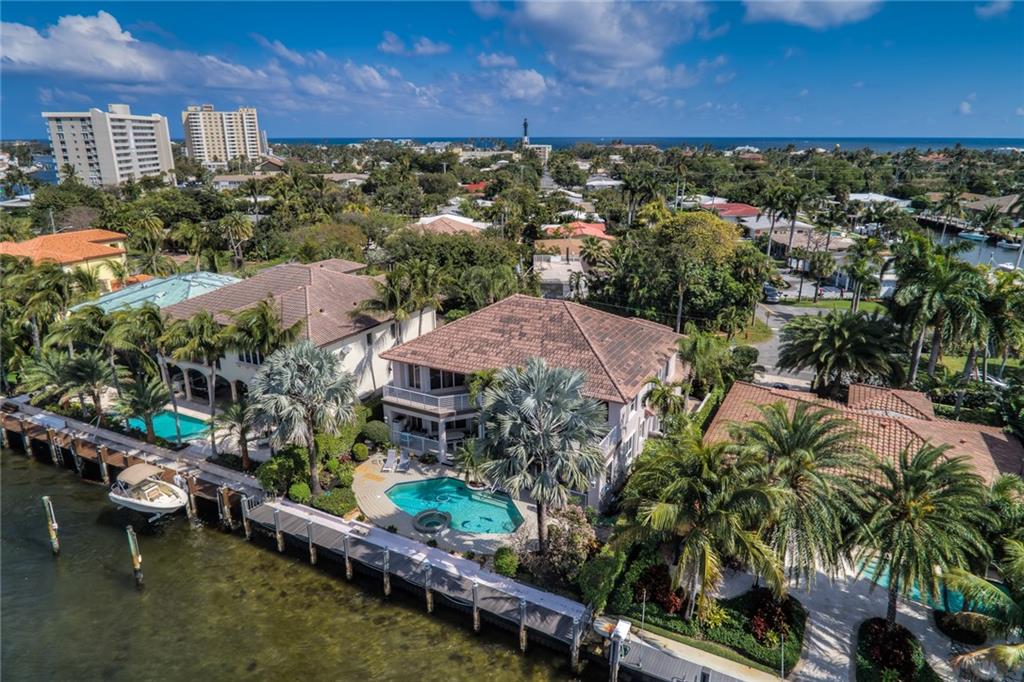 Desirable location on the east side of the Intercoastal in exclusive Hillsboro Shores. North of the 14th Street Causeway with easy access to the Hillsboro Inlet. 80 feet of water frontage, new dock, multiple balconies over looking the Intercoastal waterway! All bedrooms offer en suite bathrooms, two additional 1/2 baths on the 1st floor. Outdoor shower, heated pool, jacuzzi, summer kitchen, electric on the dock, freshly painted inside and out, deeded beach access. 1st floor master with upstairs sitting area/office/gym with water views! Vaulted ceilings and picture windows make this house light and bright. No lease restrictions, optional HOA. Motivated sellers!