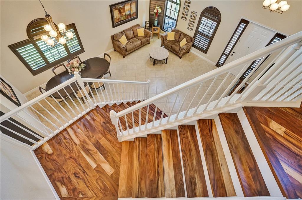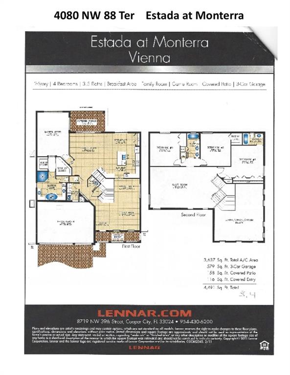 Sought after ESTADA neighborhood! 4 bedroom, 3.5 bath with huge loft & 3 car garage home has 4491 total & 3637 living area. Impact windows & doors throughout. Grand 2 story ceiling entrance with custom Plantation shutters! Large & bright kitchen with upgraded cabinets, granite...Master suite with 2 large walk in closets & bathroom with jacuzzi tub 1st floor...Wood & tile floors throughout home...Double sided unique staircase that leads upstairs...Junior Suite with full bath...2 large guest bedrooms upstairs share a bathroom...HUGE loft that needs to be seen to be believed!...Custom pool built includes convenient remote control: cool blue tile, sundeck/childs shallow splash area with built-in umbrella, deck jets, fountain, travertine patio...Privacy landscaped & fully fenced yard space.