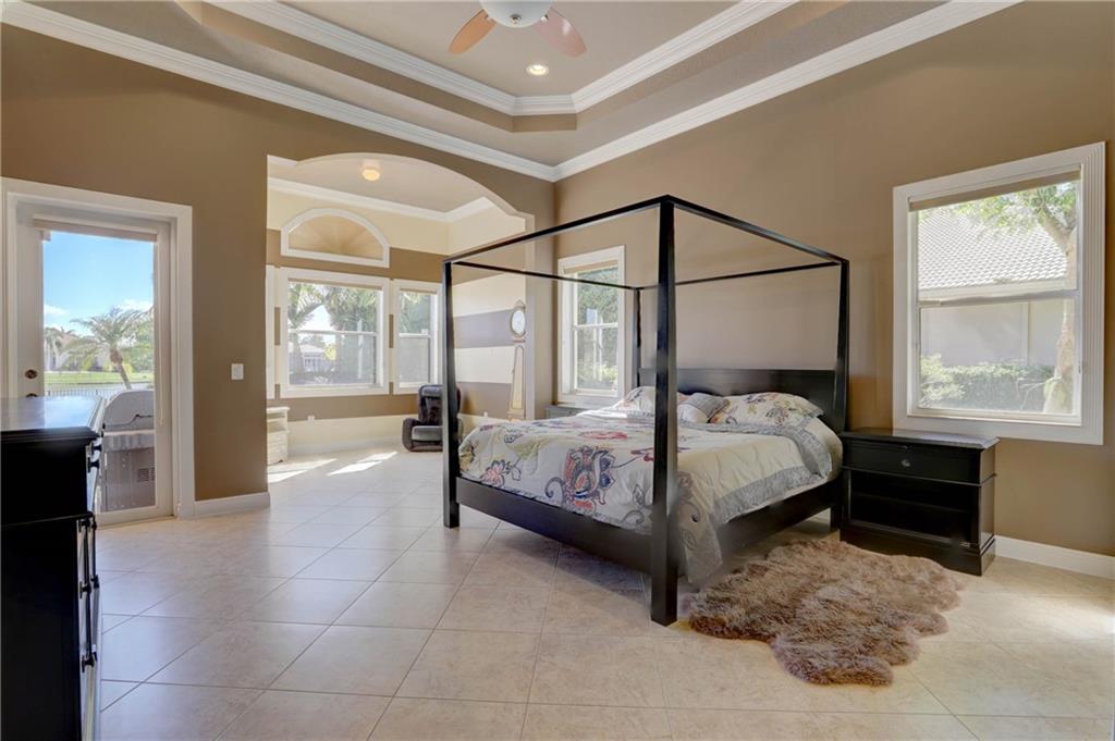 Tall Ceilings & Water view as soon as you open the door. Big bright floor plan w/lots of windows. This home has it all. Split plan, Huge Master Suite w/sitting area & upgraded closets. Cabana bath, 3rd car garage floor raised & converted to huge bonus/play/media room w/AC. Oversize open Granite Kitchen w/SS Appliances is the center of the house. Triple Split plan. Huge 2nd & 3rd bedrooms on 1 wing, additional true 4th & 5th bedrooms on 2nd wing. Office(could be 6th Bed). Upgraded Granite Laundry Room. Extra extended Patio outside Formal Dining room & huge covered terrace overlooking pool, great for entertaining. Amenities: 24 HR Manned Security, Party Pavilion, Tot Lot, Open Play Field, Jogging Paths, Tennis & Basketball Courts. Convenient to Shopping, Dining, Entertainment, Travel & more.