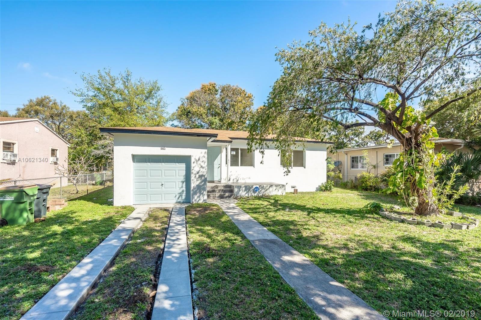 Fully remodeled 3/2 on beautiful street in N Miami. Property has open floor plan, tons on natural light. Designer kitchen and baths. Private attached garage with tons of extra space. House has new roof and impact windows. All work was done with permits. Nothing like it in the area! FHA is okay!