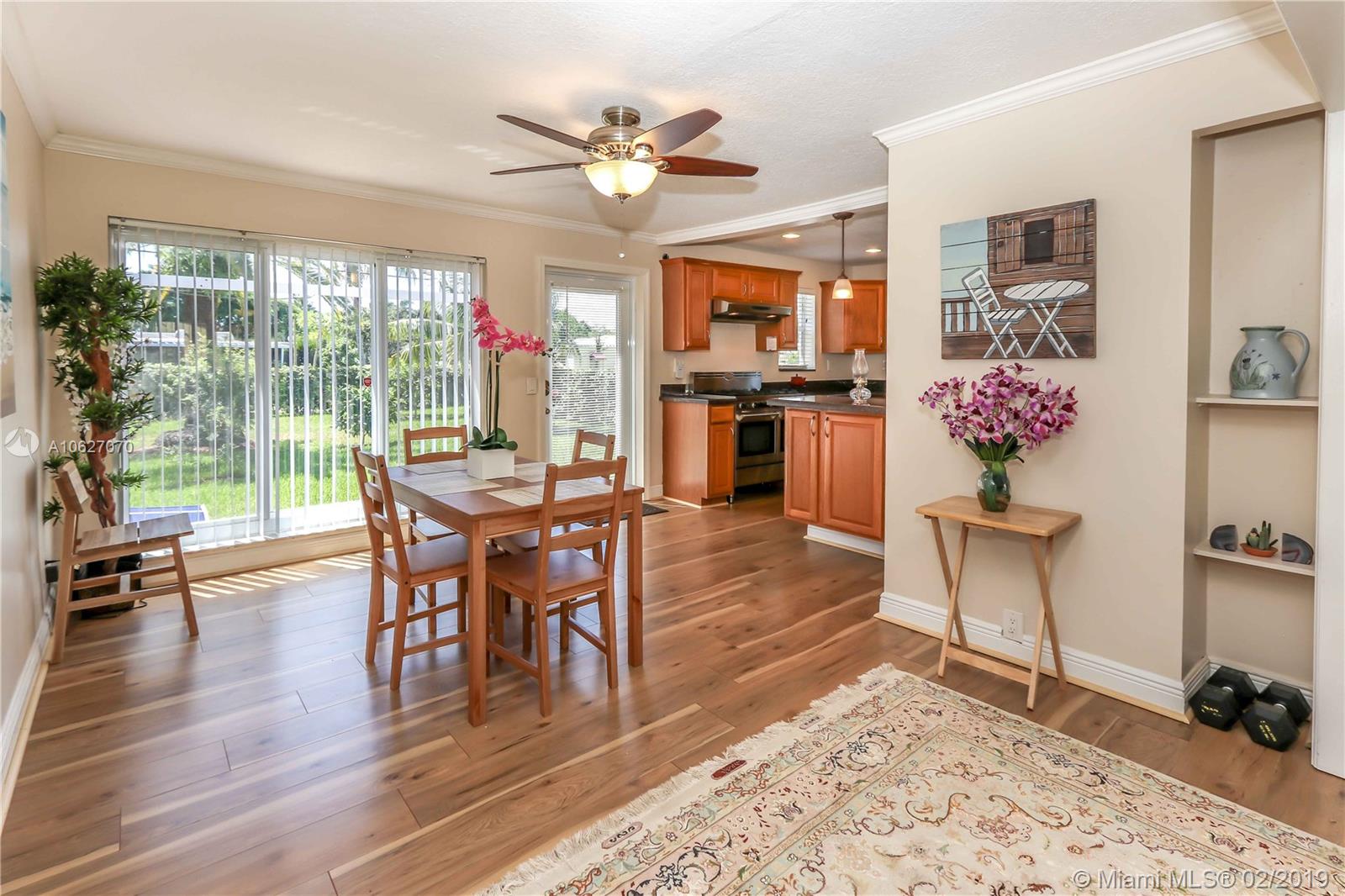 Fabulous Home on Corner Lot and East of US 1~This Home Features 2 Bedrooms / 1 Bath with a 1 Car Garage~Over sized Corner Lot Property~This Home has High Impact Windows and Impact Garage Door~New Engineered Wood Laminate Flooring Throughout~Fantastic Kitchen with SS Appliances including a Professional Gas Stove with Hood~Double Oven~Granite Countertops and Wood Cabinets~Bright House with Big Windows~Crown Molding Throughout~Larger Bedrooms each with Lots of Light~Large Bath Updated with Porcelain Tile/Double Sink/Jacuzzi Tub~Knockdown on Ceilings with Fresh Neutral Paint Color~Open Patio in back~Fenced Yard~Room for a Pool~Fruit Trees~Gas Grill Connection Outside~Tankless Water Heater~Nest Cameras Front & Back~Short Distance to Downtown Hollywood, Restaurants, Hollywood Broadwalk & Beach