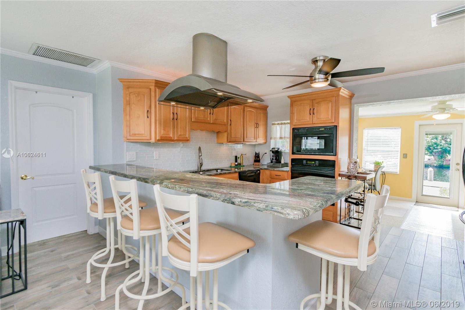 Opportunity- A Fine Waterfront Home in Perfect Condition. Breathtaking view from your back patio. Open the back windows and doors for fresh daily breeze. 60' water frontage with private boat dock, fixed bridges w/ easy OCEAN ACCESS, This 2 bedrooms/2 bathrooms home is neat as a pin. Featuring an upgraded kitchen with abundance of counter-top/cabinetry space, an expansive master bedroom suite, updated bathrooms, new Murphy bed, tankless water heater, NEWER roof, impact windows/accordion shutters thru out, detached carport, exterior security cameras, washer/dryer. Near i-95, downtown Hollywood, and Hollywood Beach. LOCATION, LOCATION, LOCATION! This home is a charming work saver. Buy it Today & Move In Tomorrow !