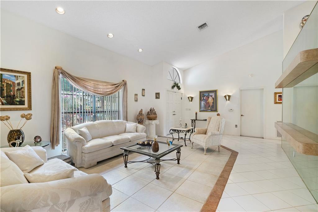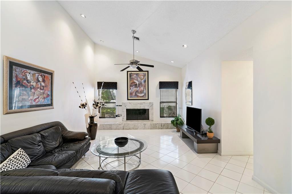 REDUCED!! Located in prestigious Eagle Trace Coral Springs Golf Community! As you enter, the living room invites you into a very social space; lots of room for a more formal feel. A split bedroom plan gives you a very lovely Master bedroom w/ private ensuite bath. There is a dressing area with double sinks & large walk in closet. The bathroom has both a whirlpool tub, shower and personal bidet for milady. There is a lovely dining room adjacent to the gourmet kitchen with an island overlooking the breakfast room and oversized family room. A beautiful stone fireplace adds to the warmth of the space. The secondary bedroom wing has three generous bedrooms & cabana bath leading to a huge pool/patio area with a large under roof area & freeform pool. Great bar b que area for perfect entertaining.