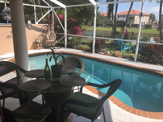 UPDATED HOME WITH OPEN FLOOR PLAN, EXPANSIVE LAKE VIEW, MANY SUNNY WINDOWS, VAULTED CEILINGS, DIAMOND-BRIGHT SALT WATER, HEATED POOL AND SPA, UPDATED KITCHEN WITH QUARTZ COUNTERS AND ADDITIONAL CABINETRY, POPCORN REMOVED FROM CEILINGS, NEUTRAL TILE THROUGHOUT, UV SECURITY FILM ON ALL WINDOWS AND DOORS, HURRICANE SHUTTERS AND SCREEN ENCLOSED PATIO.