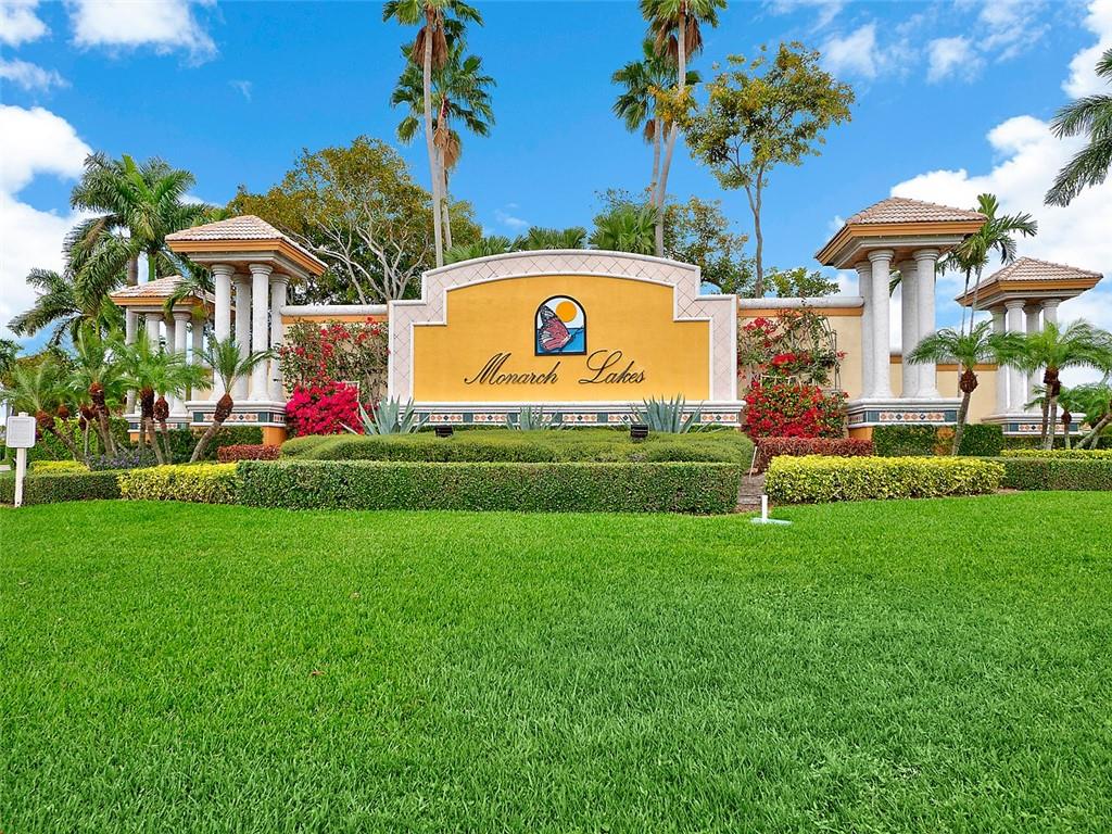 If you enjoy entertaining look no further! This Tropical Oasis is an entertainer’s dream. Located in the sought after gated community of Monarch Lakes just minutes from I-75 and the Turnpike. This spacious 6 bedroom, 4 bath lakefront home features a 1 bedroom, 1 bath separate guest house overlooking a serene pool framed by a gorgeous courtyard. This home has been tastefully upgraded with beautiful counter tops, Stainless Steel Appliances, crown molding, built in closets, accordion shutters and more. Amenities include: community pool, club house, and park.