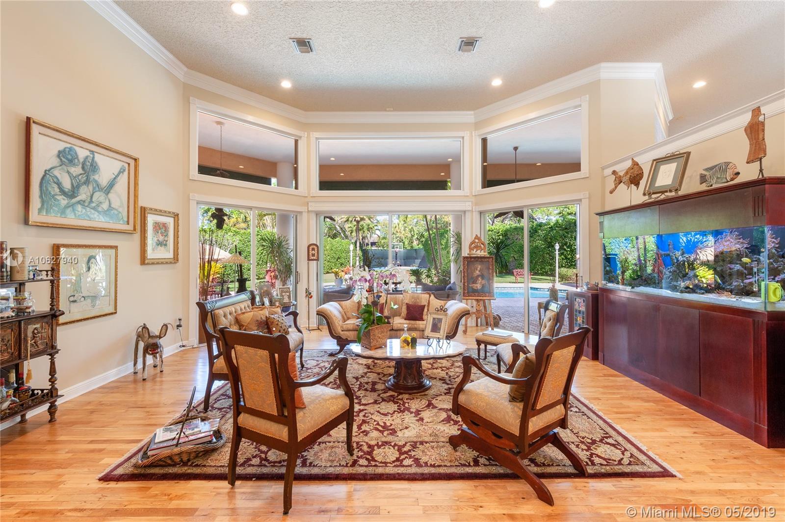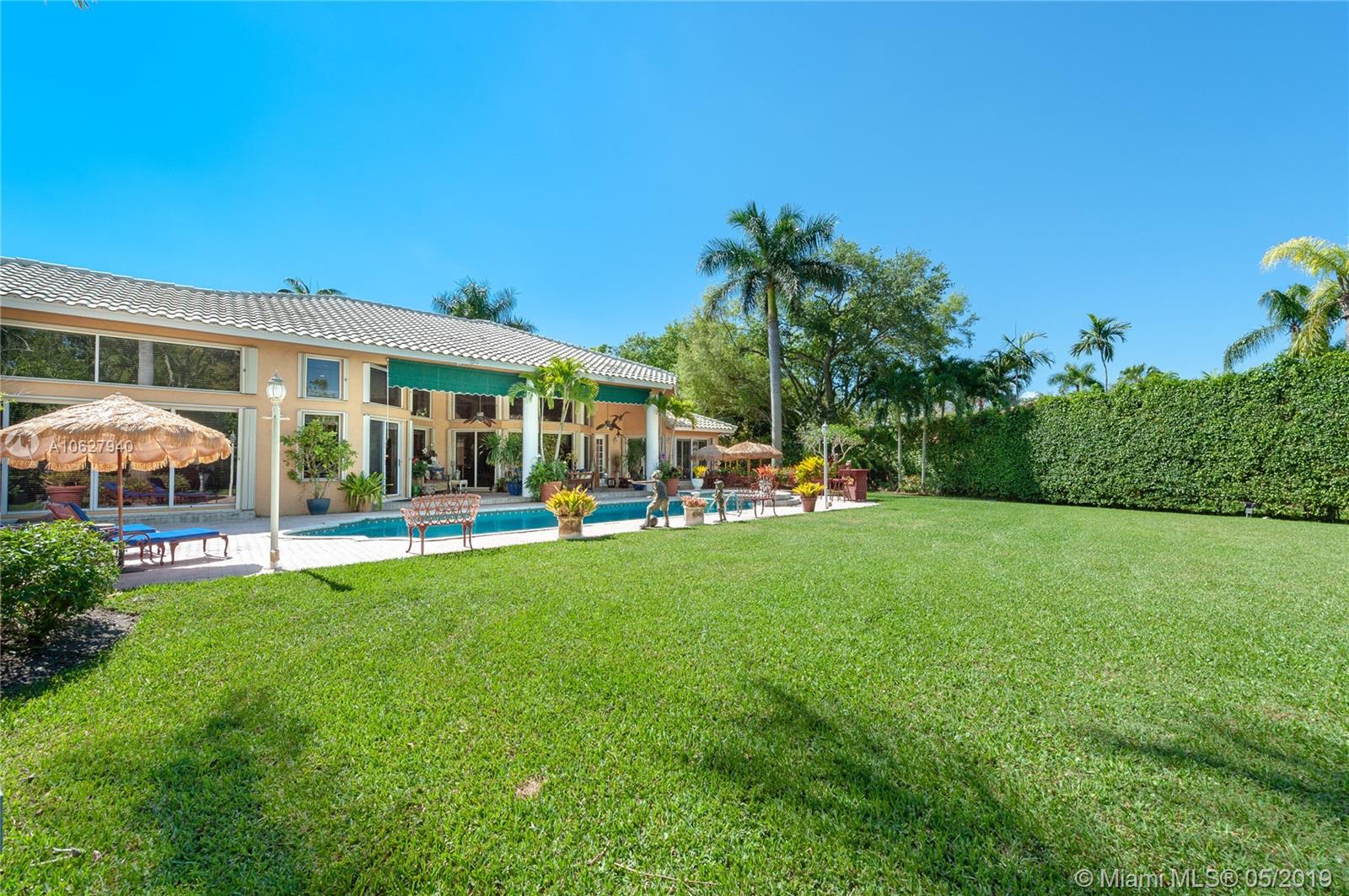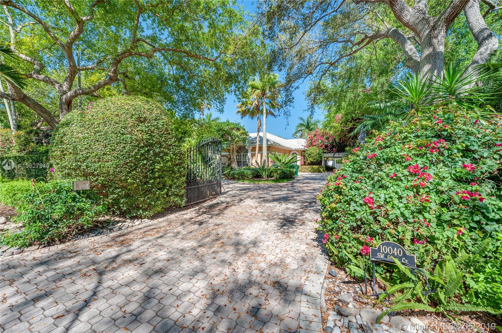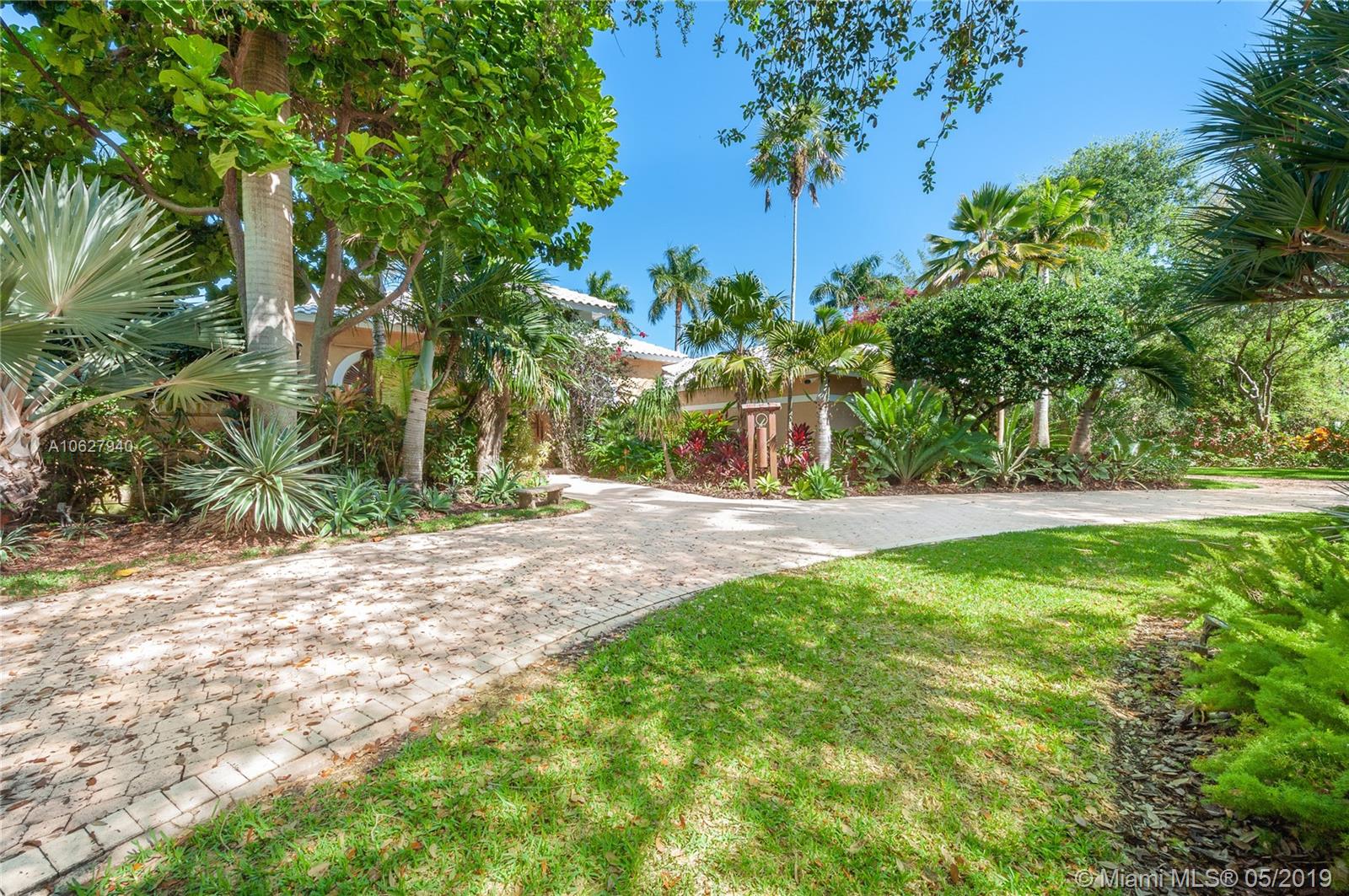 Elegant gated acre estate in prime North Pinecrest. Impressive residence w/5 Bed-4.5 Bath & secluded behind & around lush/manicured landscaping. As you enter inside you can see through to patio, pool & full yard. High ceilings make it light & spacious. Gourmet kitchen opens to large breakfast area and family room that all overlook pool/patio/backyard. Guest half bath. Refined master suite w/ tray ceiling/spa like bath/ two walk in closets. Add'l bedroom/bathroom on master side & 3 bedrooms/2 bathrooms on other side. 2 car garage. Plantation shutters. Security cameras. Full house generator. Generous covered back patio/open pool. Pool/spa & basketball half court. 36,154 SF lot w/extensive variety of mature/maintained plants. Per Tax Roll the Adjusted SF is 4,639 and the Living SF is 4,052.
