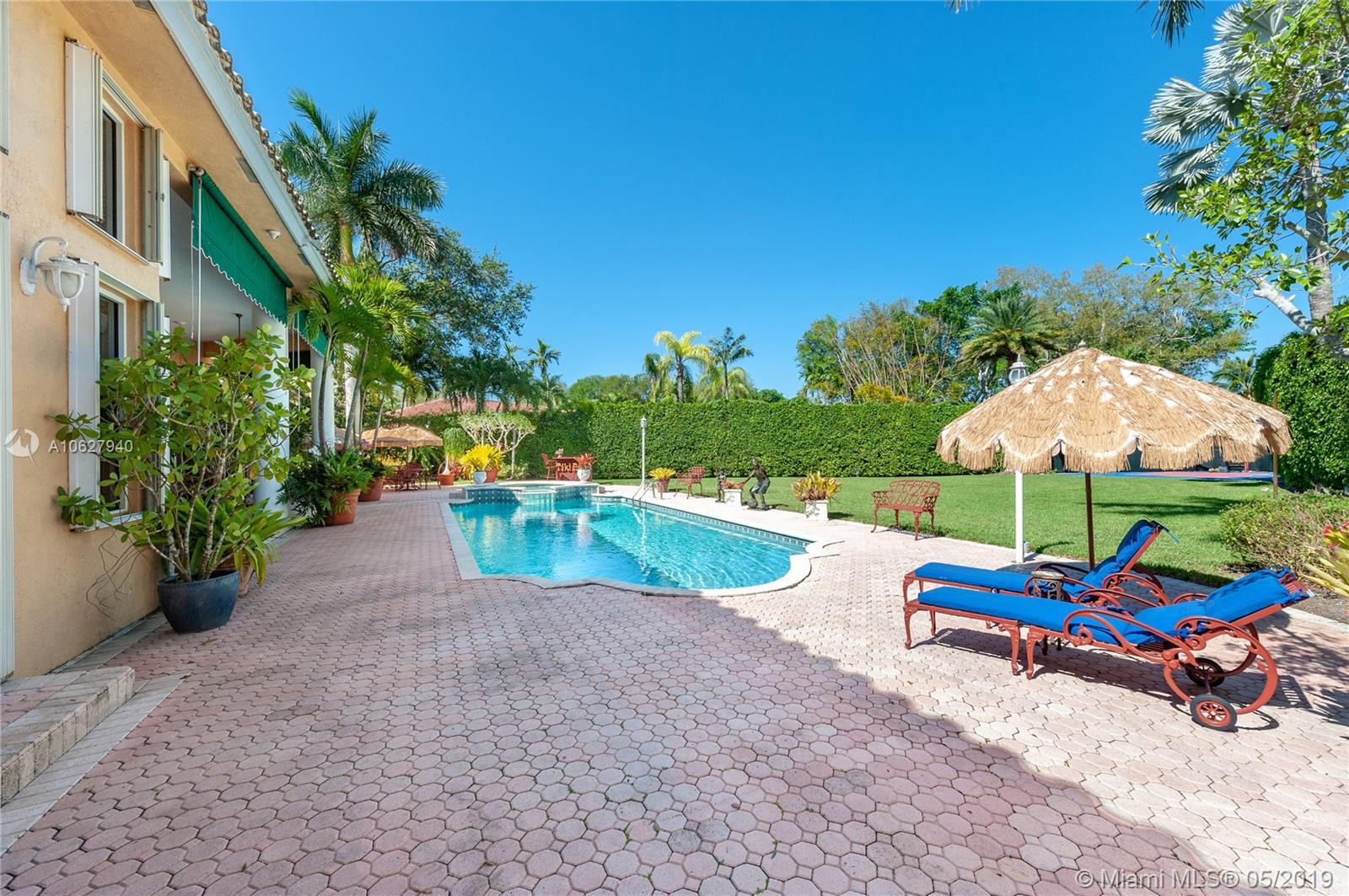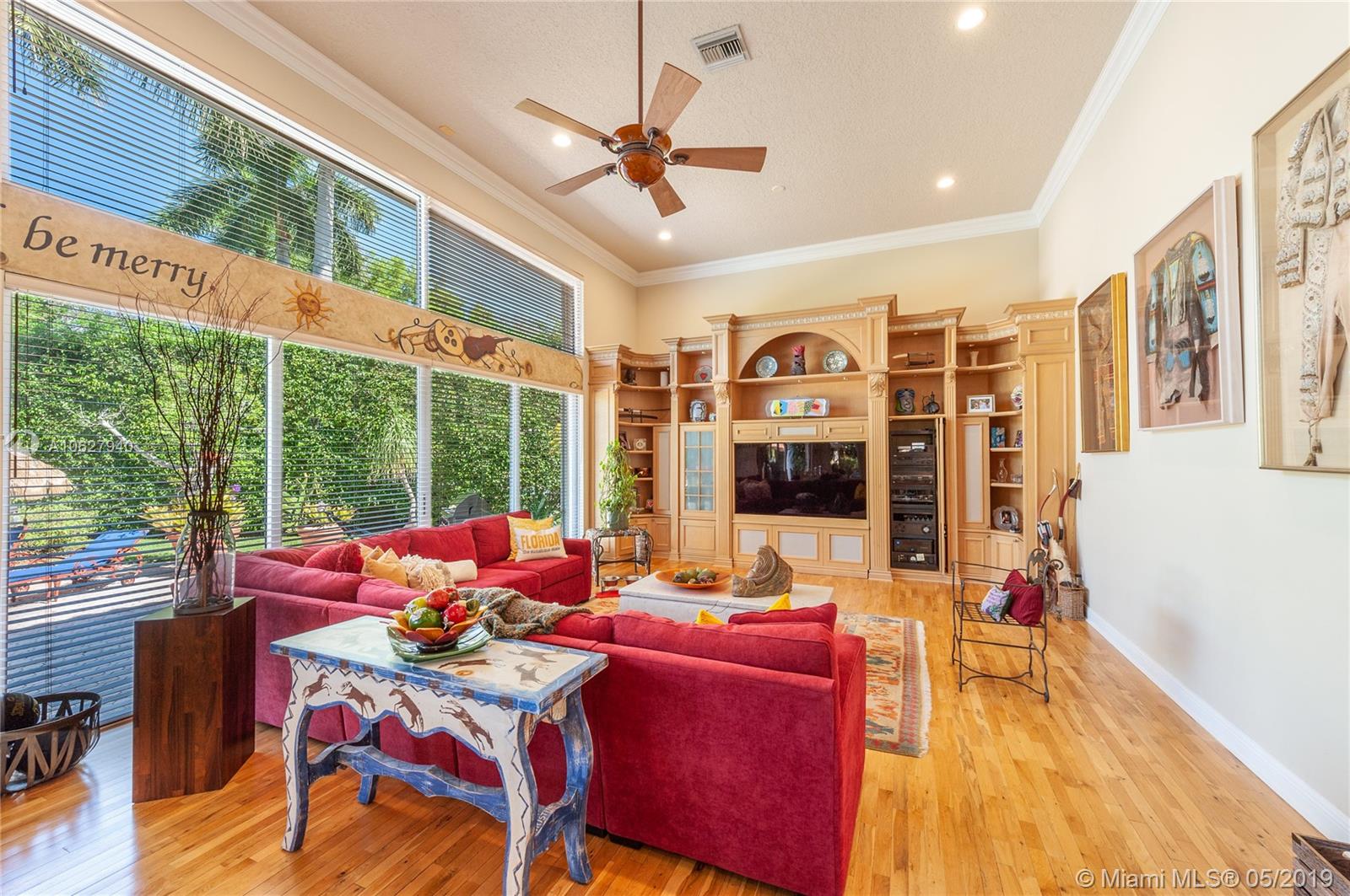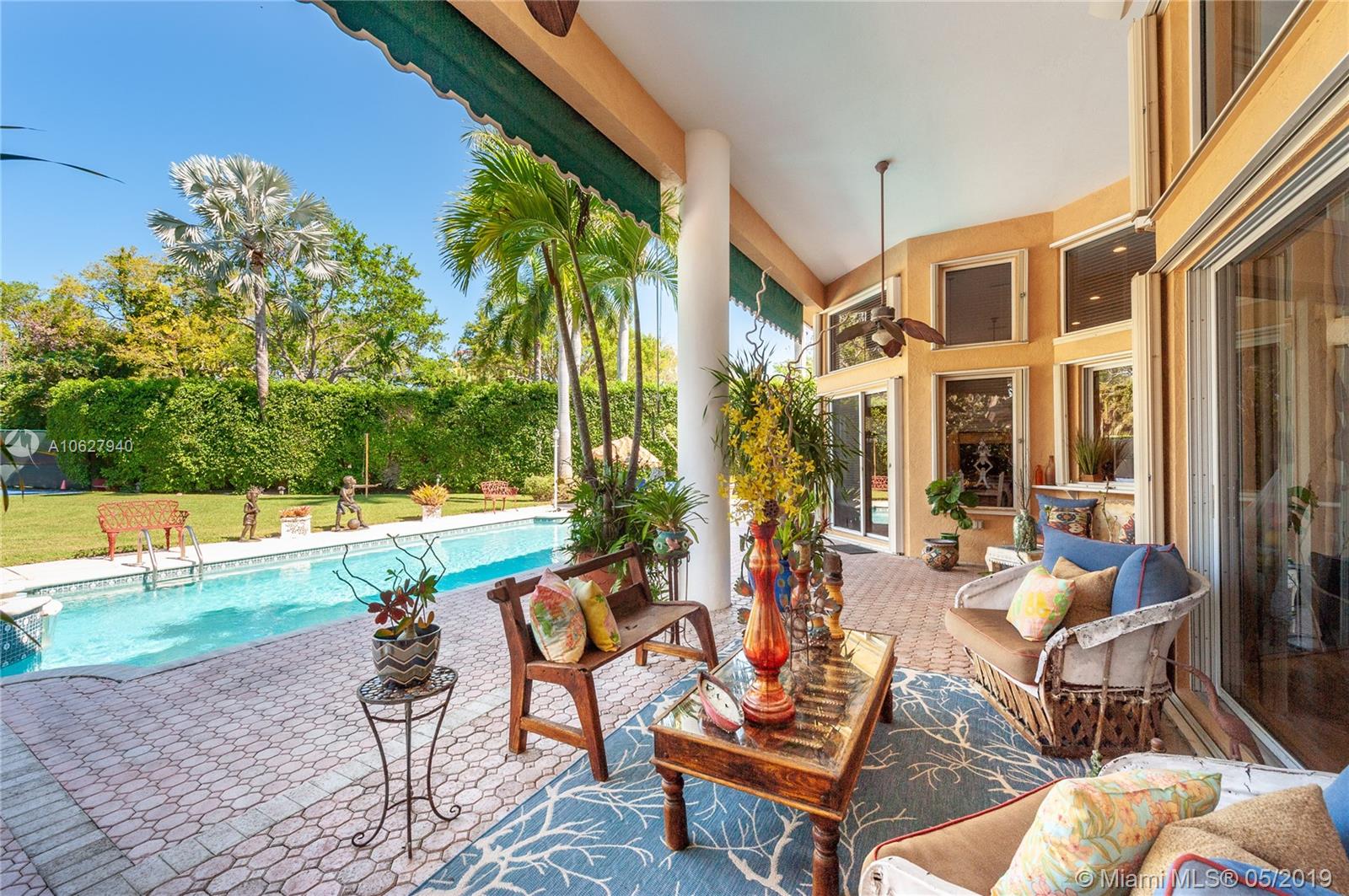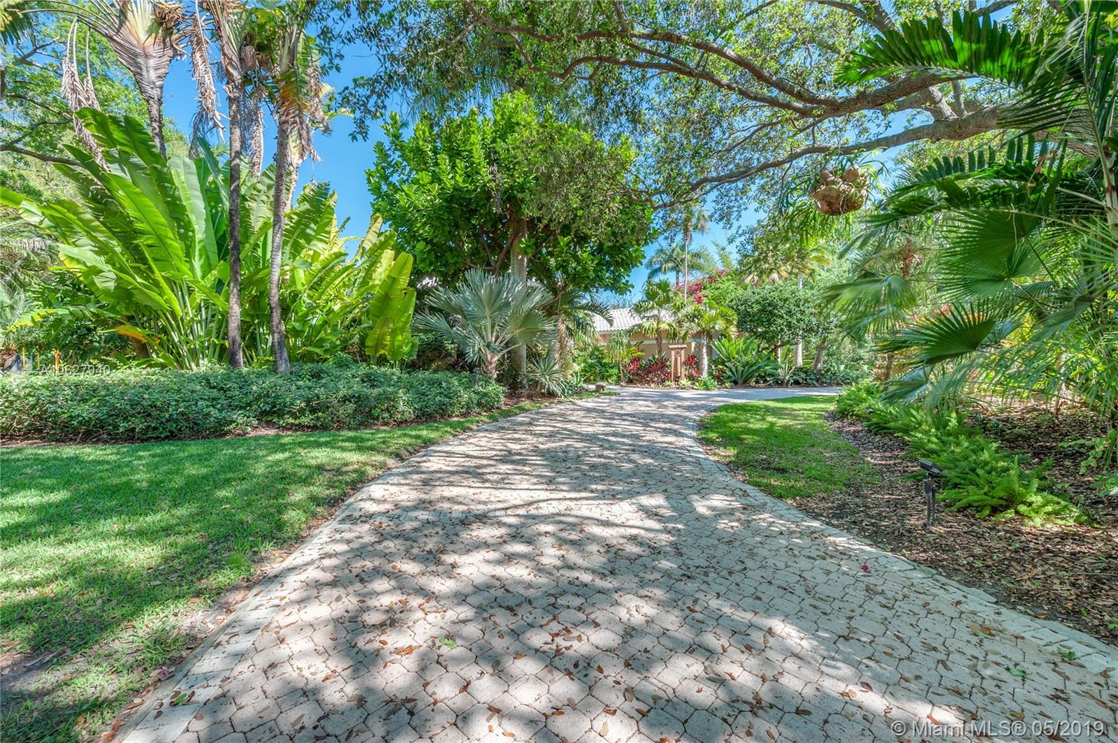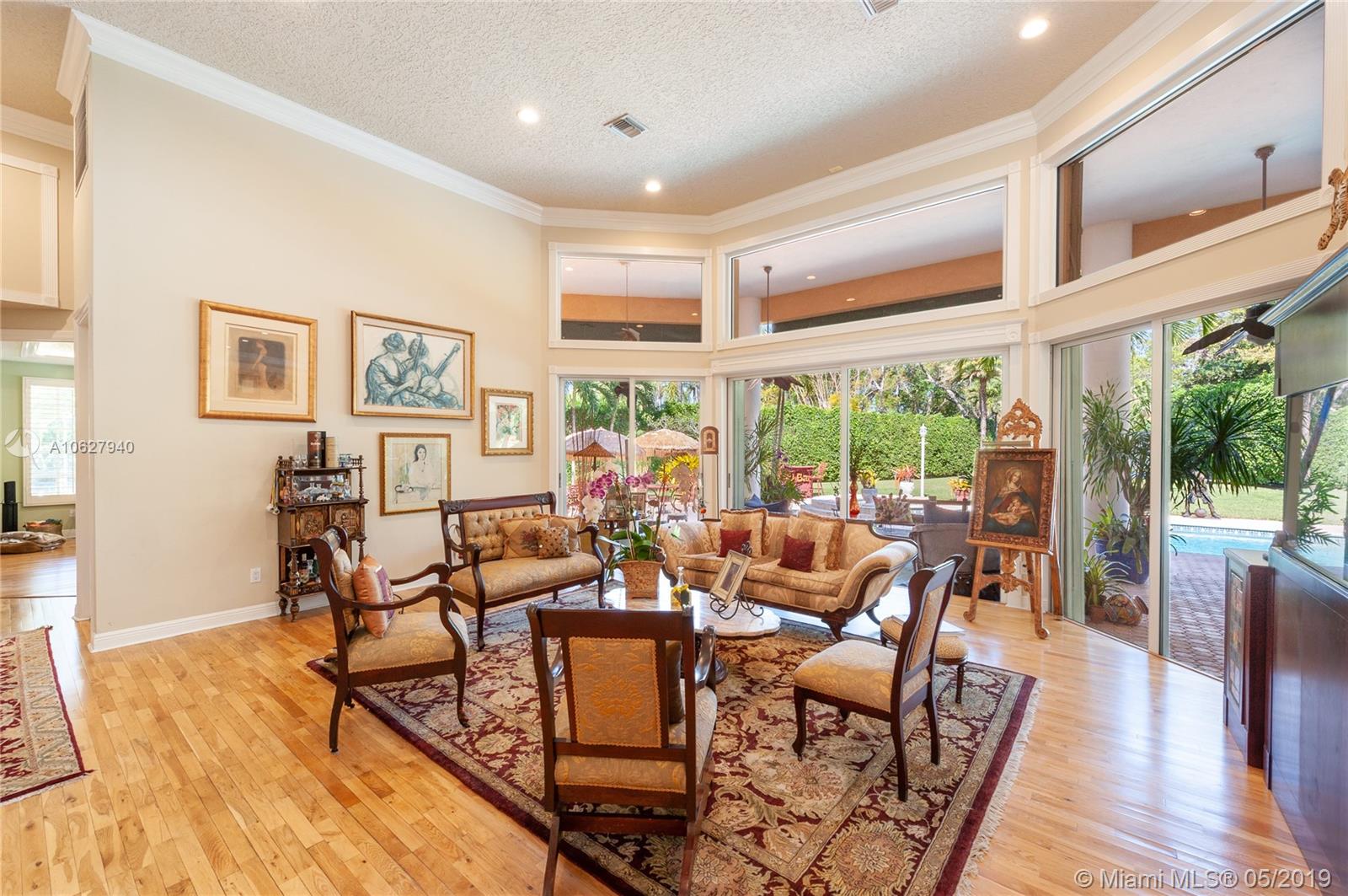 Elegant gated acre estate in prime North Pinecrest. Impressive residence w/5 Bed-4.5 Bath & secluded behind & around lush/manicured landscaping. As you enter inside you can see through to patio, pool & full yard. High ceilings make it light & spacious. Gourmet kitchen opens to large breakfast area and family room that all overlook pool/patio/backyard. Guest half bath. Refined master suite w/ tray ceiling/spa like bath/ two walk in closets. Add'l bedroom/bathroom on master side & 3 bedrooms/2 bathrooms on other side. 2 car garage. Plantation shutters. Security cameras. Full house generator. Generous covered back patio/open pool. Pool/spa & basketball half court. 36,154 SF lot w/extensive variety of mature/maintained plants. Per Tax Roll the Adjusted SF is 4,639 and the Living SF is 4,052.