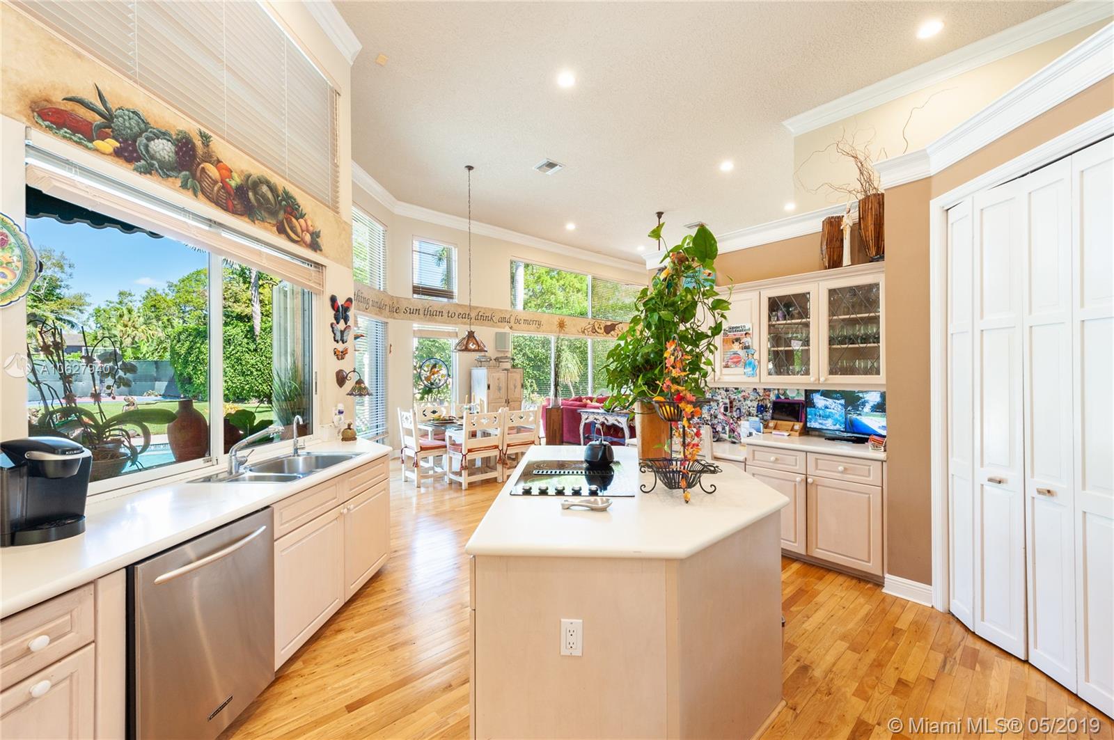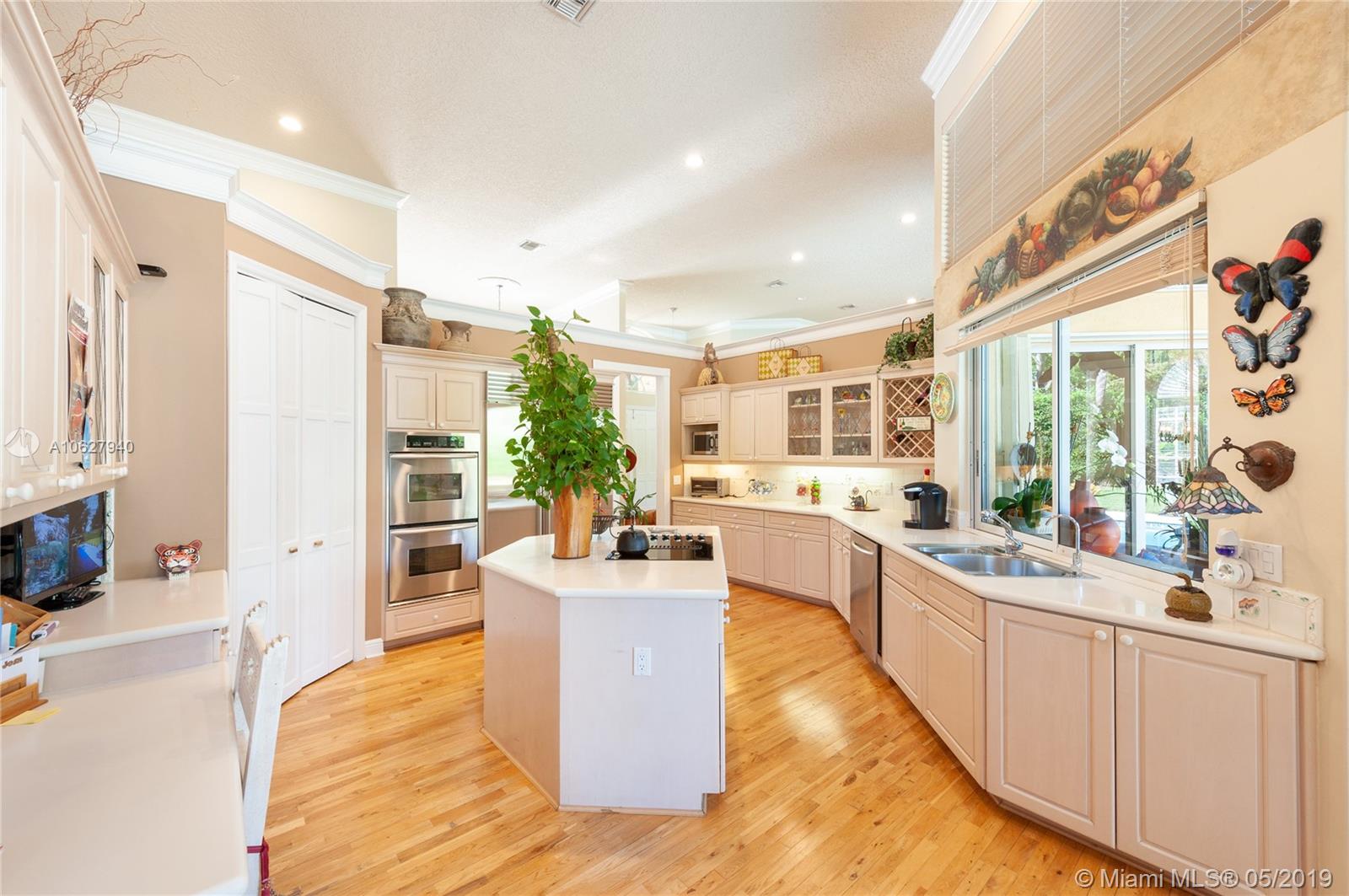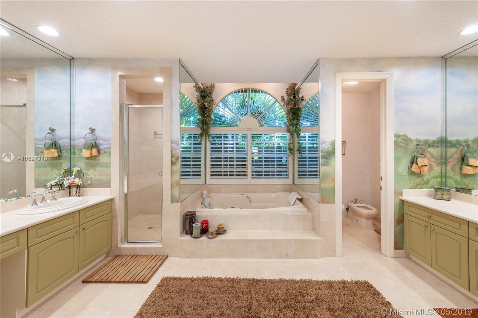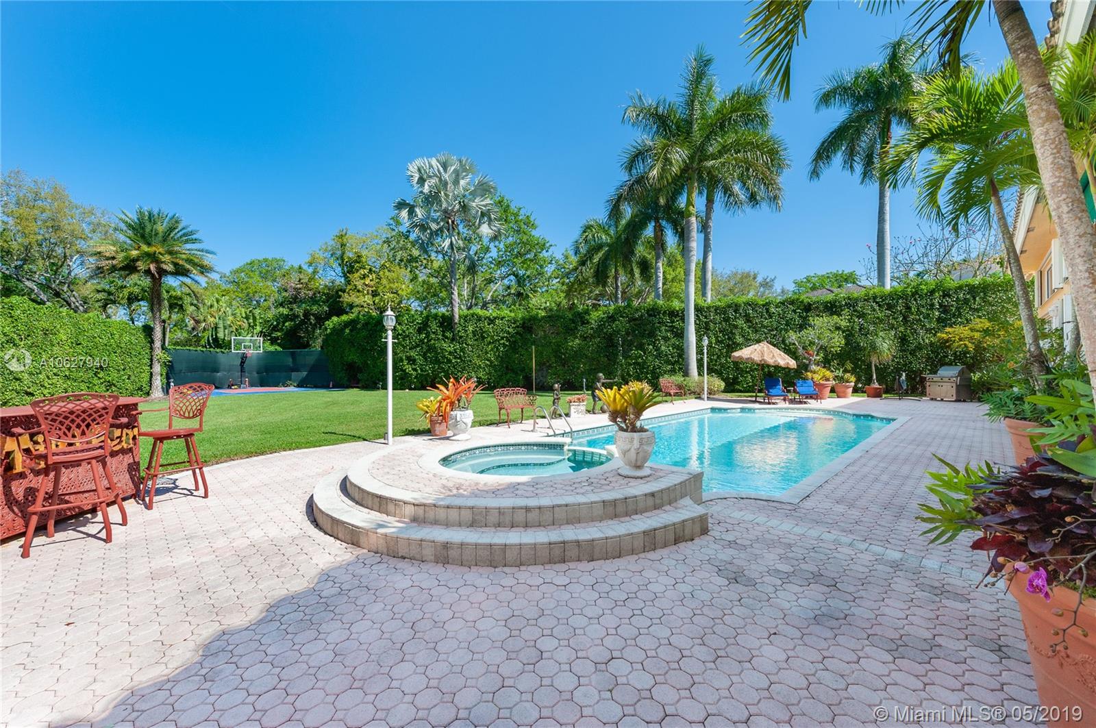 Elegant gated acre estate in prime North Pinecrest. Impressive residence w/5 Bed-4.5 Bath & secluded behind & around lush/manicured landscaping. As you enter inside you can see through to patio, pool & full yard. High ceilings make it light & spacious. Gourmet kitchen opens to large breakfast area and family room that all overlook pool/patio/backyard. Guest half bath. Refined master suite w/ tray ceiling/spa like bath/ two walk in closets. Add'l bedroom/bathroom on master side & 3 bedrooms/2 bathrooms on other side. 2 car garage. Plantation shutters. Security cameras. Full house generator. Generous covered back patio/open pool. Pool/spa & basketball half court. 36,154 SF lot w/extensive variety of mature/maintained plants. Per Tax Roll the Adjusted SF is 4,639 and the Living SF is 4,052.