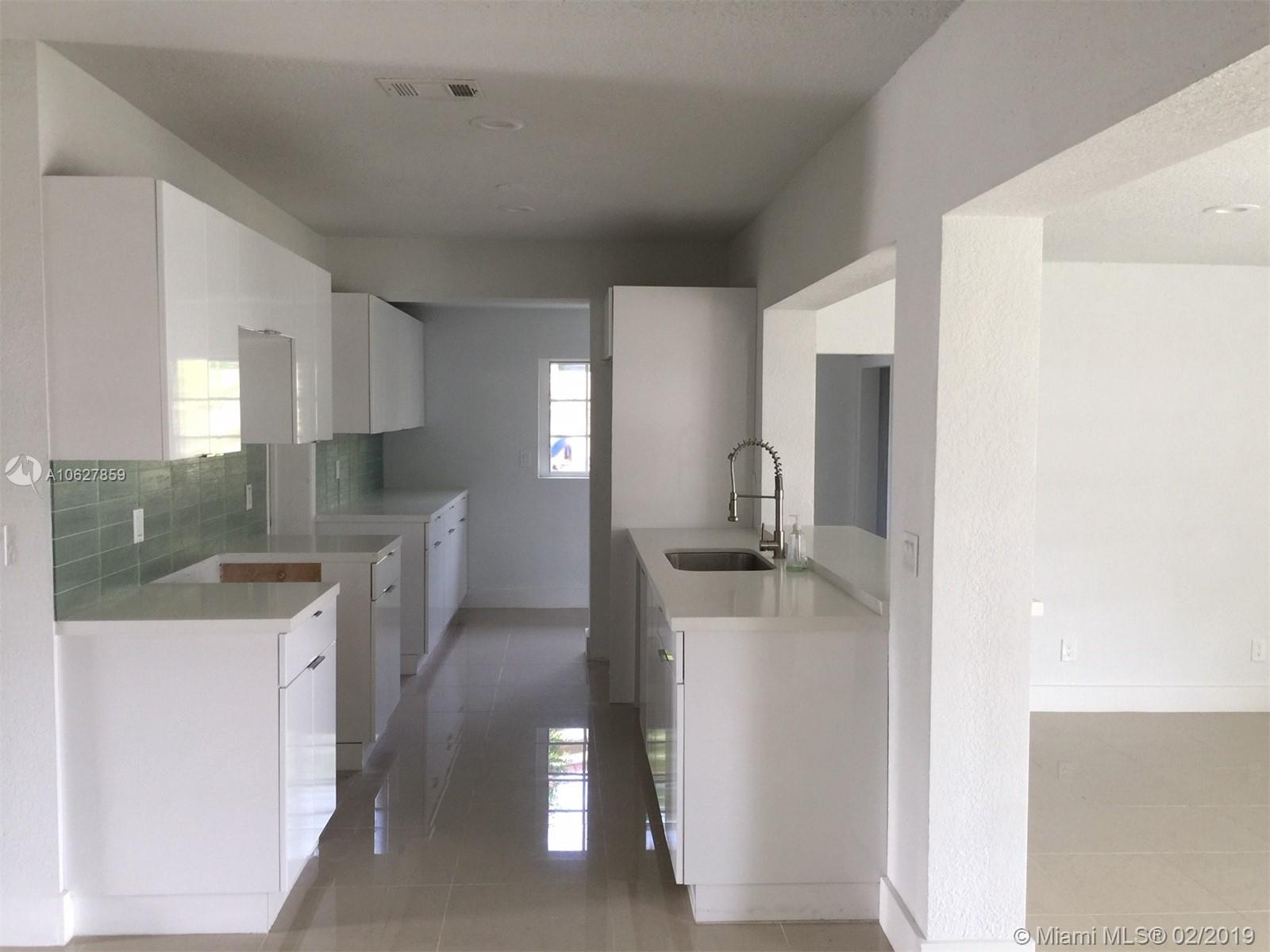This gorgeous single family home located in the desirable Miami Shores is centrally located within walking distance to parks, shops, restaurants and golf course. This turn key home, completely updated, features a bright and airy open floor plan and a huge private yard with enough space for a pool. Kitchen has new quartz counter tops, crisp white cabinetry and breakfast bar. Also, the 2 full baths have been updated with quartz counter tops and custom sinks.