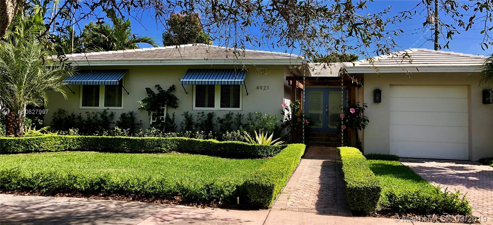 Beautifully remodeled home on centrally located, prestigious Riviera Drive in Coral Gables, Florida. Totally updated inside with new kitchen and ample cabinetry space. 3 bedroom with large closets and 3 full baths. Original refinished hardwood floors, plantation shutters, all new appliances, security system with Z-wave technology, and on demand water heater. Large garage, indoor washer/dryer, Hurricane Impact windows and doors throughout, large lot with mature Avocado and Mango trees. Light, bright colors and sunshine fill this home. 1849 Adjusted SQ FT. Excellent curb appeal, lush landscaping, 5 zone irrigation system and architectural designed pergola entrance. Recently added covered patio area in backyard.