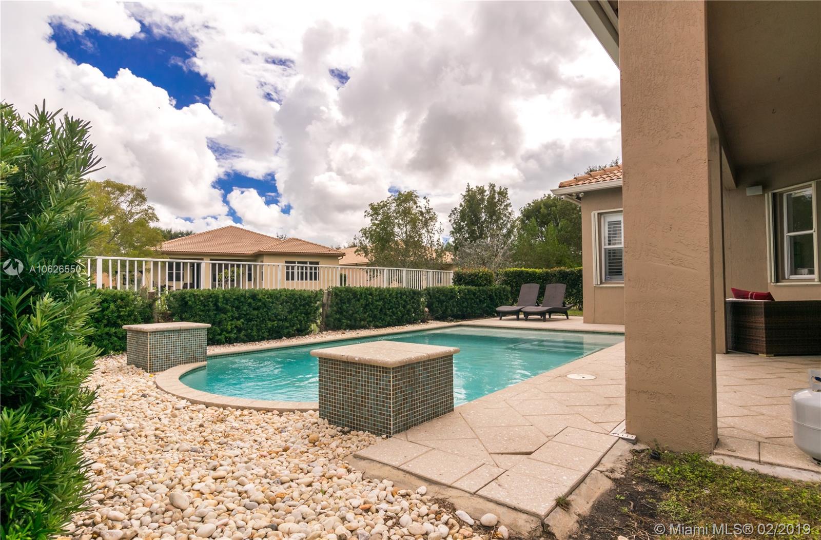 This home offers serenity, elegance and laid-back delights of a tuck away paradise called Isles of Weston. This home is located a few minutes away from the best schools in Weston. It offers 4 bedrooms/3 full baths with a beautiful open living area and a lovely backyard with covered patio, salt water pool and lake. The interior walls were recently painted with neutral colors, floors throughout are new, kitchen has granite counter top with stainless steel appliances, hurricane shutters, security cameras and audio wiring. HOA includes cable, internet, amazing club house with gym, pool, kids play area, basketball. The community has a grand entrance with security guard. This beautiful home awaits your family and offers the best of South Florida Living. Come soon before it is gone!!!