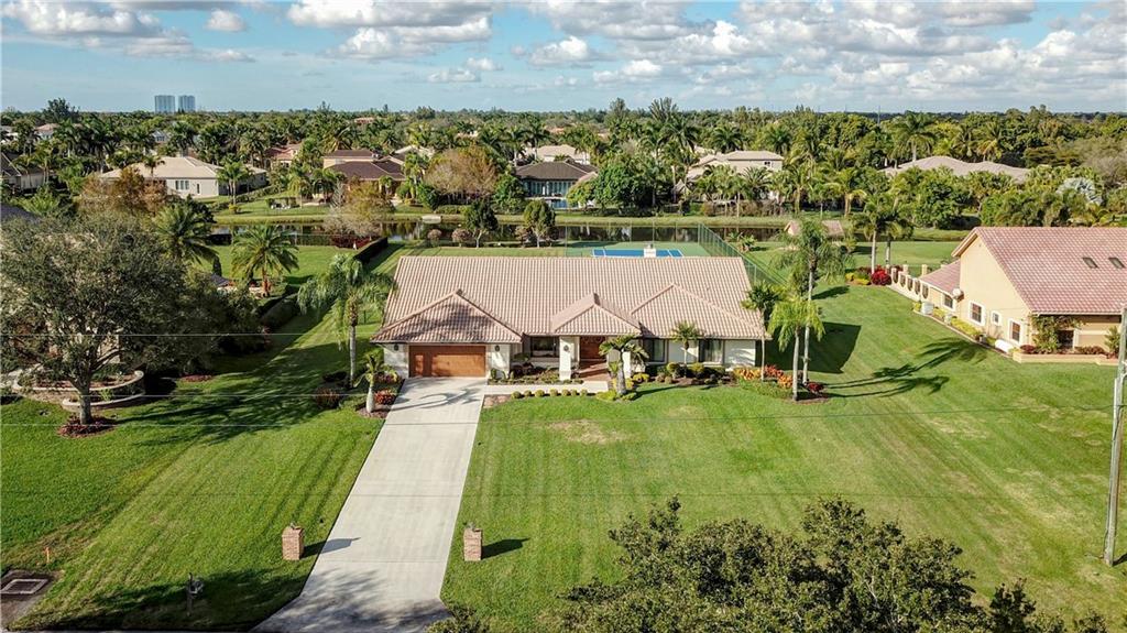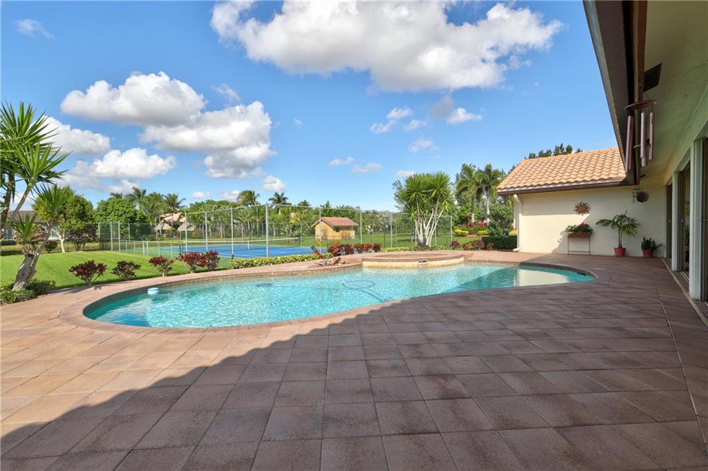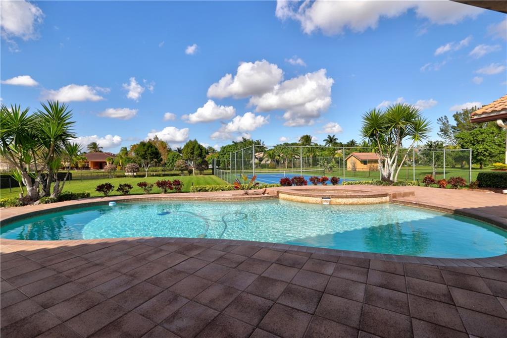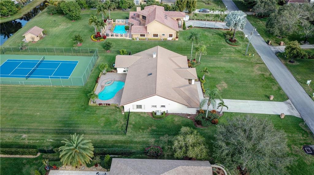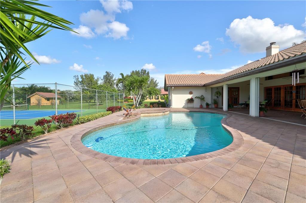 Fantastic 4Bed/2.5Bath home with almost 3100 sq. ft under air in Central Plantation Acres! Home is well positioned on a deep 1-acre lot with a regulation tennis court! Desirable dead end street. Open floor plan w/ stacked bedrooms. Vaulted ceilings with cedar wood & tons of natural light. Large kitchen with tons of cabinetry & Corian countertops. Kitchen open to the family room, large breakfast area & built-in desk. Fantastic dining & living room space with fireplace finished with coral stone. Beautiful paver pool deck replaced in 2014. Large patio overhang great for entertaining. Completely fenced in yard with tons of green space. Roof 2006. Impact accordion shutters and garage door. Property is immaculately cared for and kept!