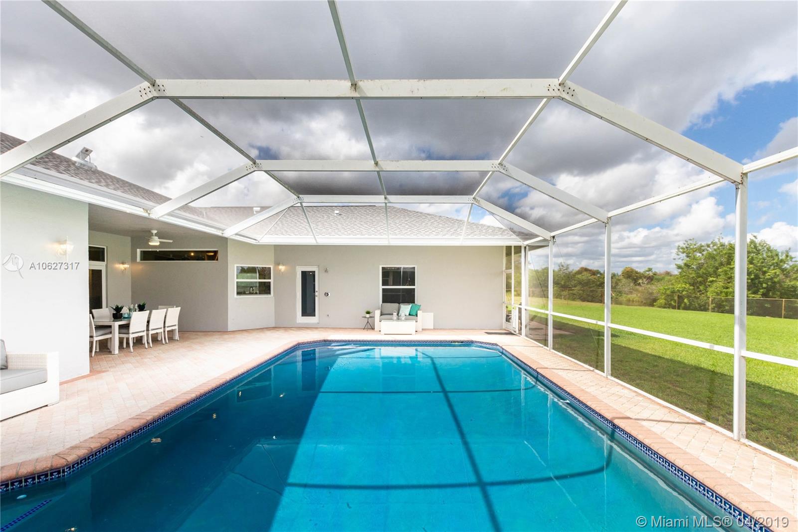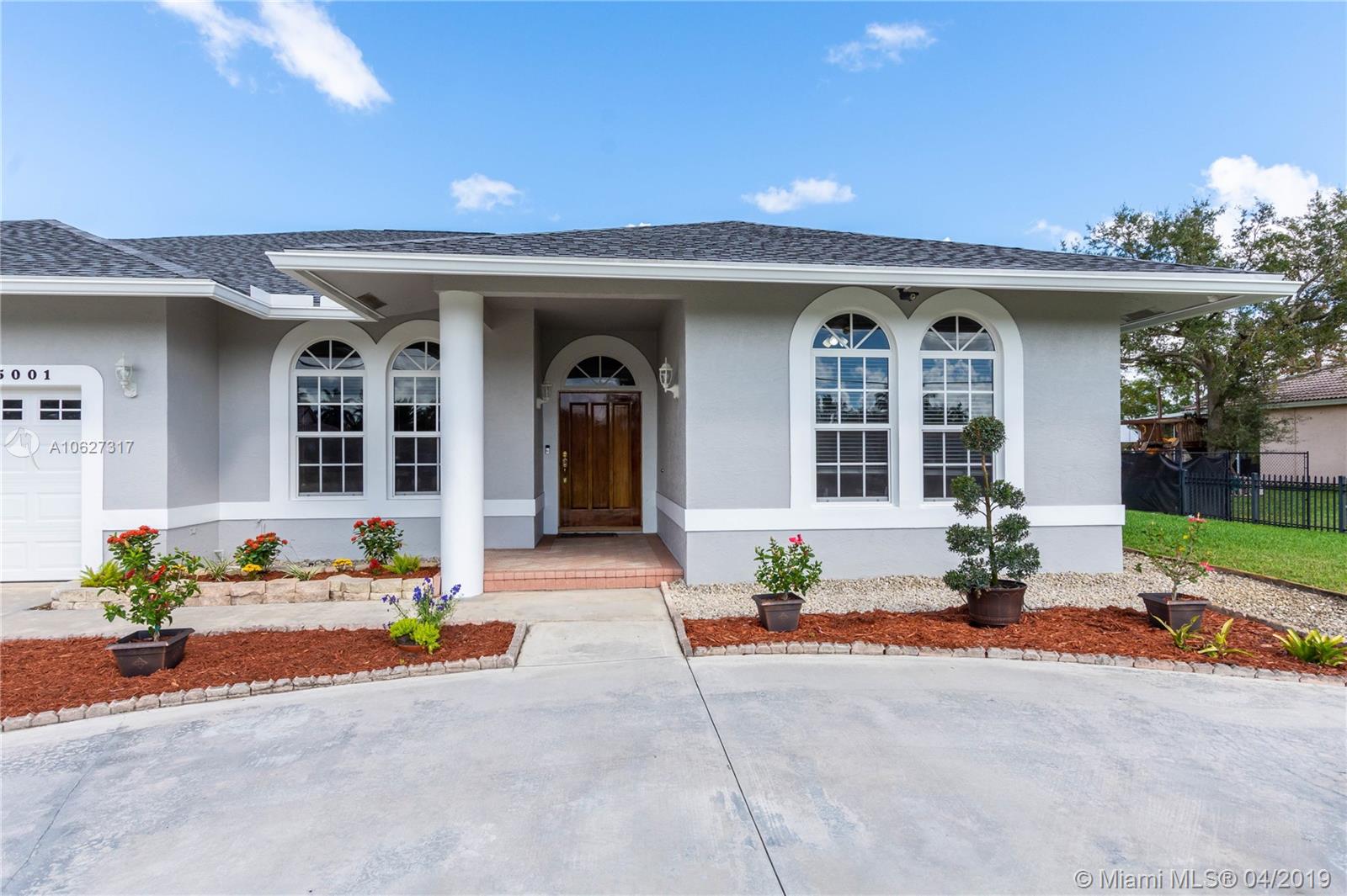 Beautifully renovated custom Home on a fenced builder’s acre in Davie – This meticulously maintained home features 5 bedrooms, 4 ½ bathrooms and study. Large spacious chefs’ kitchen. Brand new Impact windows & doors and 25-year roof with marble and porcelain tile flooring throughout. Entertain in oversized living areas with volume/vaulted ceilings or on the expansive patio featuring a resort style pool. Video security system. Spacious 3 car garage. Bring your 4 horses, boat, or RV. No HOA. Great schools. Country living near highways, shopping & restaurants.