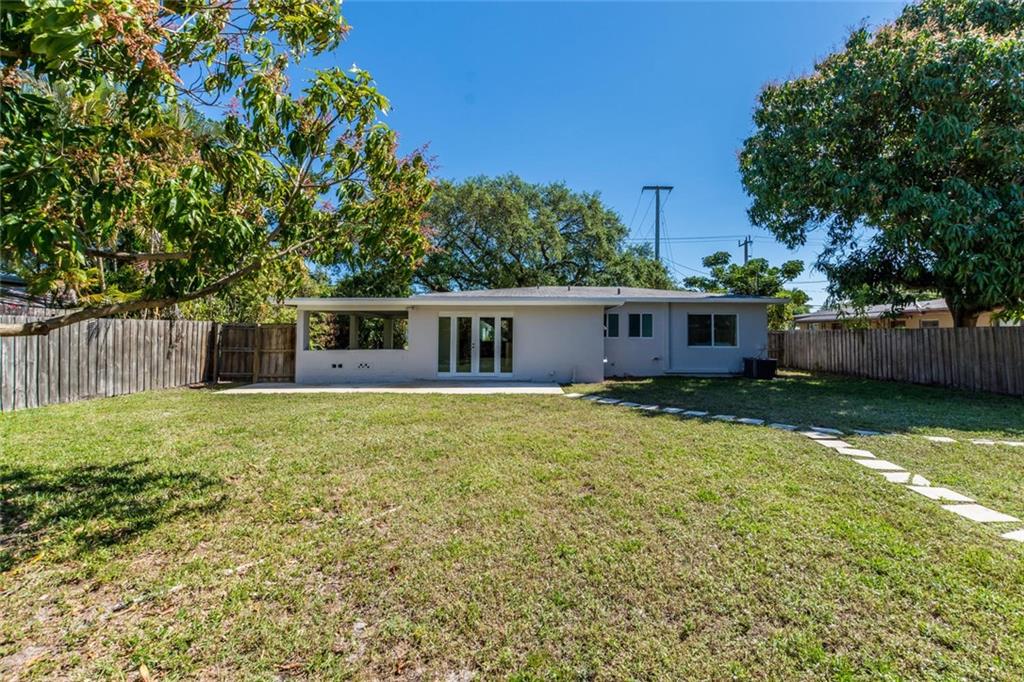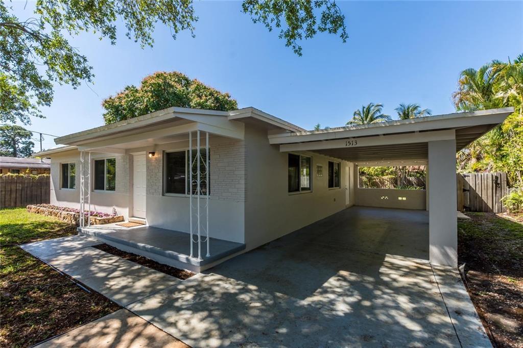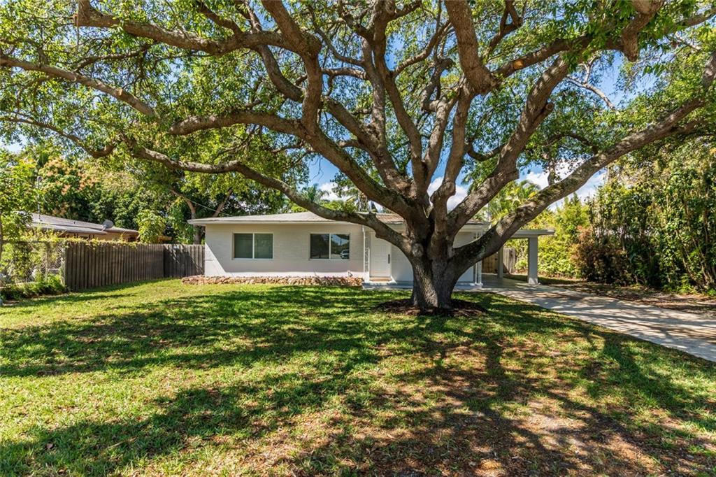 NEW PRICE...BEAUTIFUL MID-CENTURY RANCH ON A TREE LINED STREET...NICELY RENOVATED, 3 BEDROOM AND 2 FULL BATH, HOME BOASTS CERAMIC TILE FLOORS THROUGHOUT, NEWER KITCHEN AND NEW STAINLESS STEEL ELECTRIC RANGE AND MICROWAVE, AND NEWER REFRIGERATOR...42" KITCHEN CABINETS, GRANITE COUNTERS, AND RECESSED LIGHTING...THIS HOME OFFERS LOTS OF NATURAL LIGHT, WITH LARGE HURRICANE IMPACT WINDOWS THROUGHOUT, + IMPACT FRENCH DOORS TO THE BACKYARD...LAUNDRY ROOM WITH FULL SIZED WASHER, DRYER, AND STORAGE SHELVES...HUGE PRIVATE LOT OVER 10,000+ SQ. FT. WITH PLENTY OF ROOM FOR A POOL! FULLY FENCED, WITH WELL IRRIGATION...ATTACHED DOUBLE CARPORT WITH ROOM ENOUGH FOR 2 CARS, THAT CAN ALSO BE USED AS A COVERED ENTERTAINMENT SPACE..THE ENTIRE HOME HAS BEEN PROFESSIONALLY PAINTED INSIDE AND OUT! AN ABSOLUTE GEM