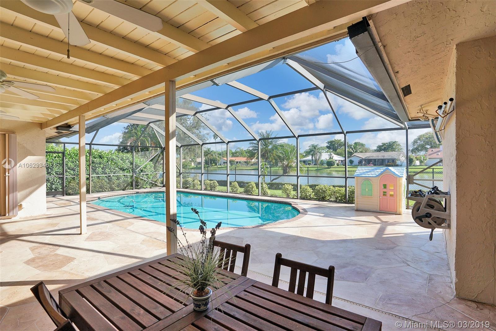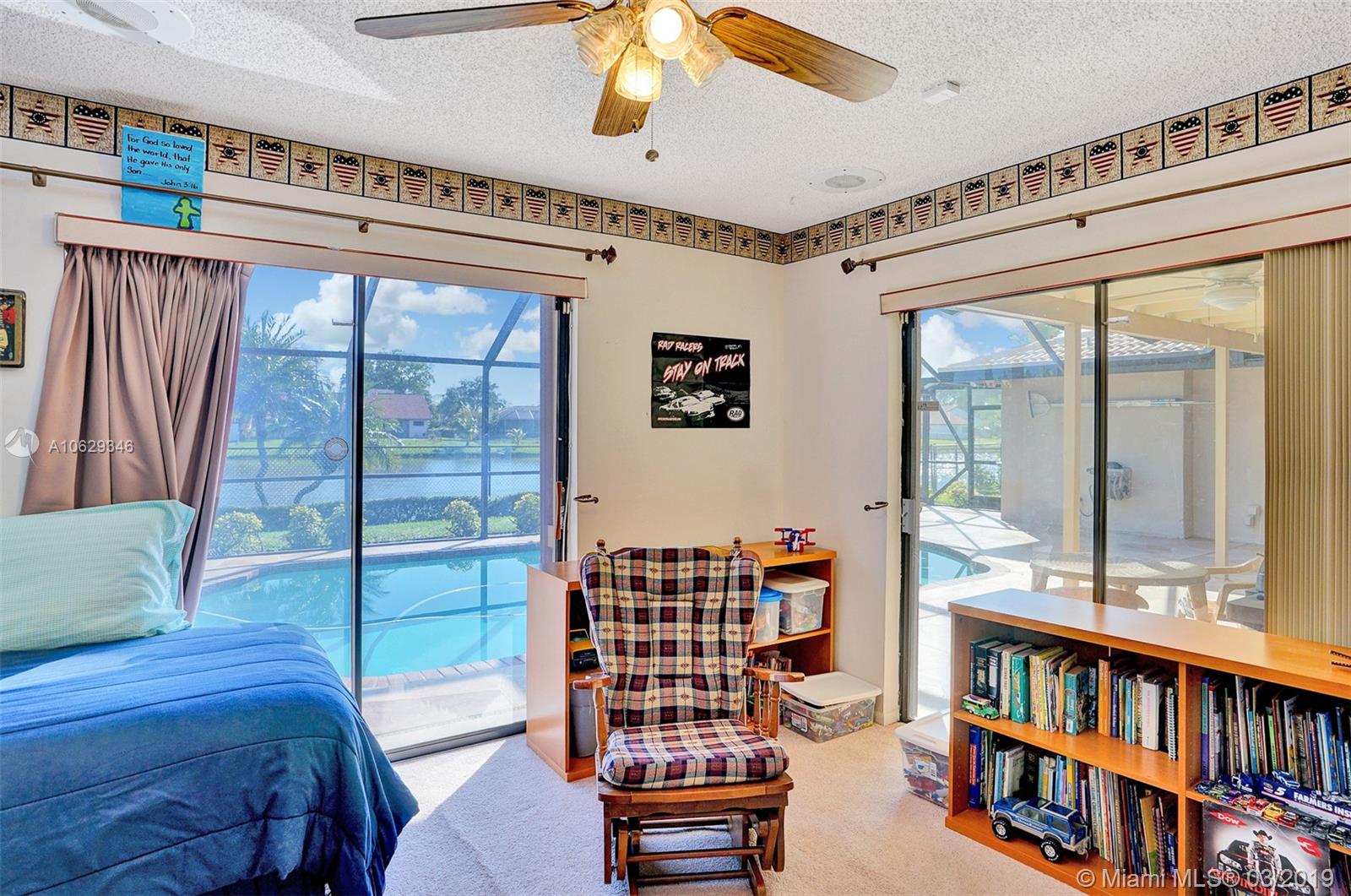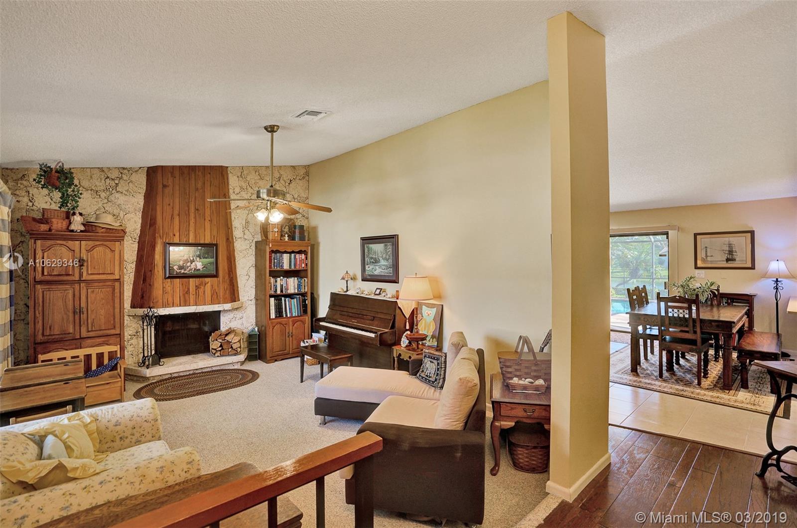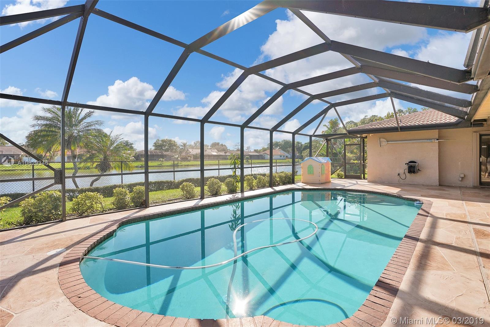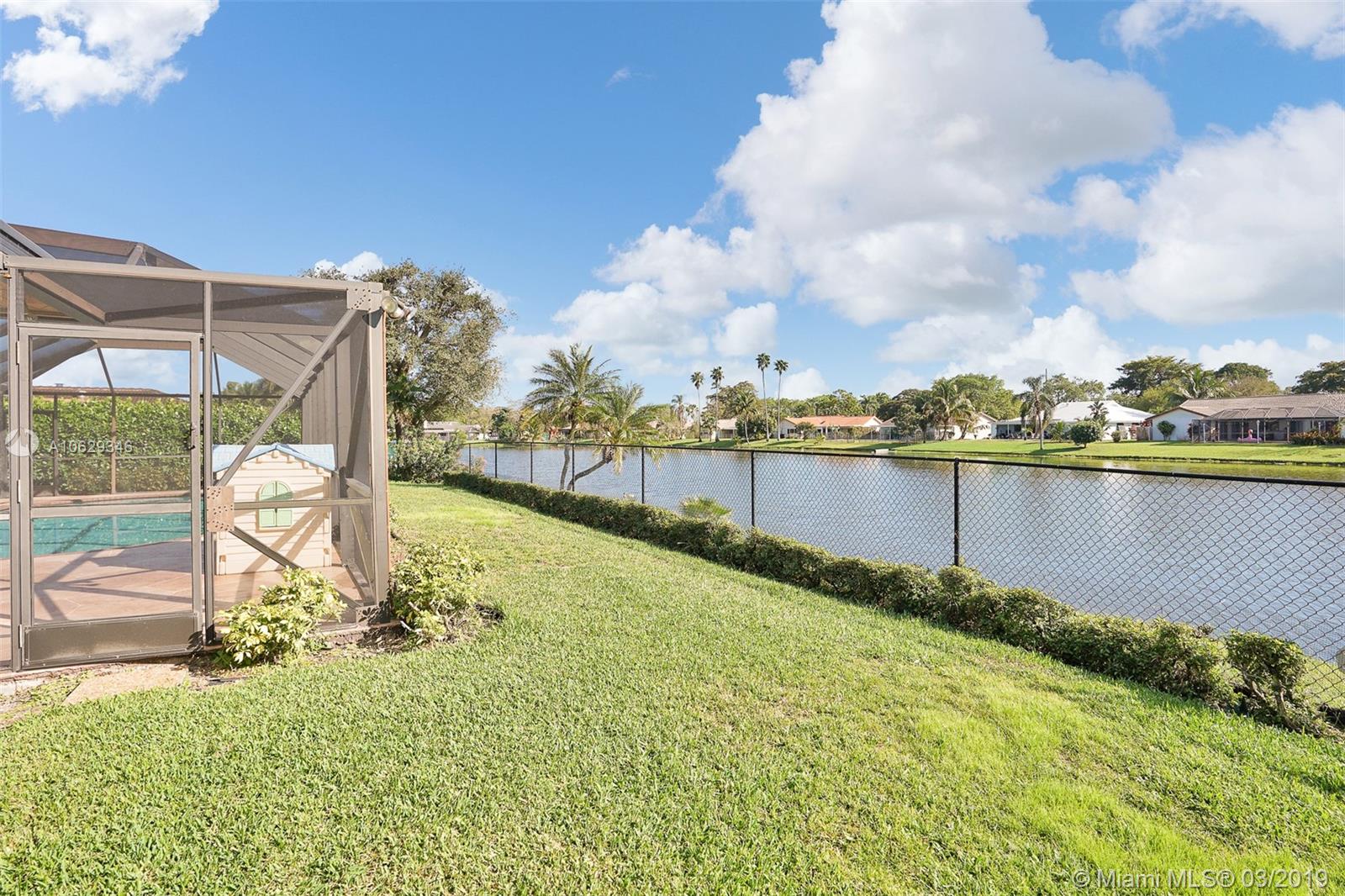 Relax and enjoy this beautiful water view while sitting in your private pool or lanai. Large 4 bedrooms, 3 full baths with a split floor plan. Master suite has sliding doors opening to pool area, updated private bath with large shower, double vanity and hurricane window/cabana door, and walk-in closet. Large updated eat-in open kitchen with a view of water, pool and family room. Formal dining room, large vaulted living room with cypress wood fireplace. Bathrooms updated, shutters or impact throughout, large fenced yard, amazing amount of closet space. Large move in ready home.