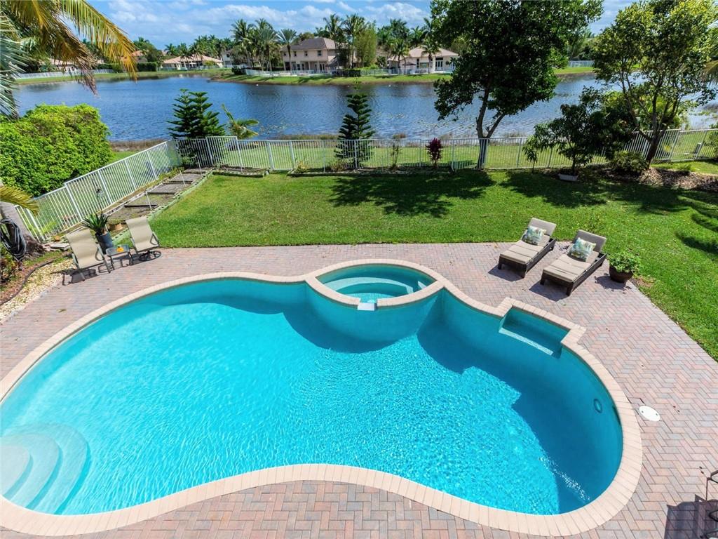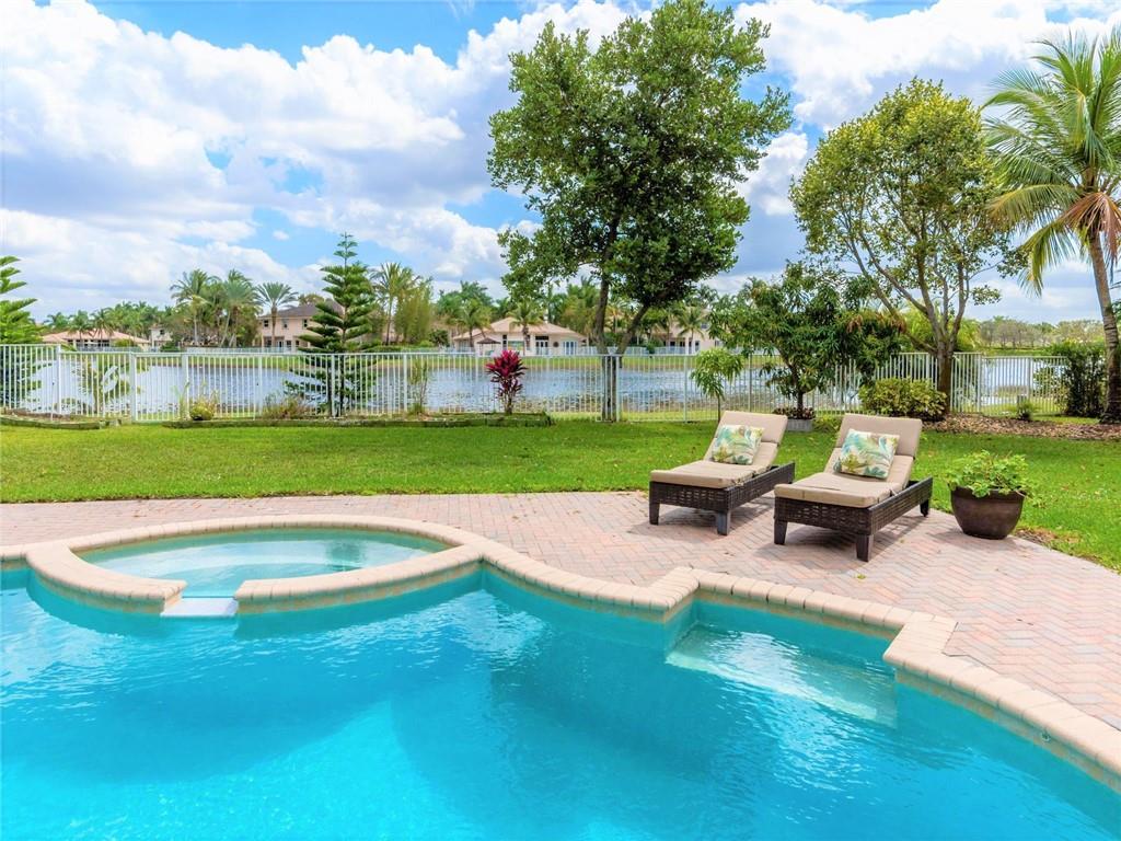 BEAUTIFUL SPACIOUS 6BD,5.5BA, 3CG TWO STORY HOME, APX 5400SF/AC, WITH DEN, PLAYROOM & IN-LAWS QUARTERS! SITUATED ON SPECTACULAR FULLY FENCED LAKEFRONT LOT, ALMOST HALF ACRE, W/HEATED POOL/SPA, BBQ GRILL! GRAND ENTRANCE W/WROUGHT-IRON SPIRAL STAIRCASE. HUGE MASTER SUITE W/GENEROUS SITTING AREA, OPENS TO BALCONY WITH BREATHTAKING LAKE VIEWS! CHEFS GRANITE/STAINLESS KITCHEN W/DOUBLE SINKS, DOUBLE OVENS, SUBZERO REFRIG, CENTER ISLAND, LARGE PANTRY. 2ND STAIRCASE LEADS TO KIDS WING. IN-LAWS QRT W/NEW PAINT & FLRS, 3ZONE AC, LED LIGHTING, UPSTAIRS WOOD LAM FLRS 2018. 3CG USED AS MUSIC RM, CAN CONVERT BACK. LOCATED ON CULDSAC RD IN THE COVE, MOST PRESTIGIOUS IN SAVNNA! RESORT CLUBHOUSE W/3 POOLS, WATERSLIDE, MINI GOLF, BBQ, TOTLOT, BALL PARKS, CAFE & MORE! A+ SCHOOLS! WELCOME TO WESTON!