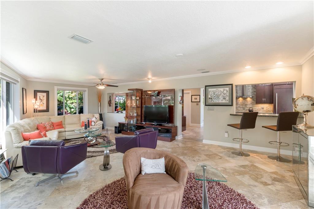 Experience the WOW factor from the lush tropical curb appeal to the exquisitely updated interior inspired by contemporary design. This E. Ft. Lauderdale residence is situated on and oversized lot in the Bayview Elementary school district, within walking distance of shops, restaurants & mins to the beach & parks. The bright spacious floor plan is conducive to today's lifestyle with a gourmet kitchen that overlooks an enormous great rm & formal dining area for intimate gatherings. The spacious master suite & lavish bathrm provide the ultimate retreat. Multiple doorways blend indoor & outdoor living spaces to a covered loggia & summer kitchen which overlook the cascading waterfall & heated salt water pool & spa. Side yard, 2 sheds, home generator, tankless hot water & more. Sq ft. from IMAPP.