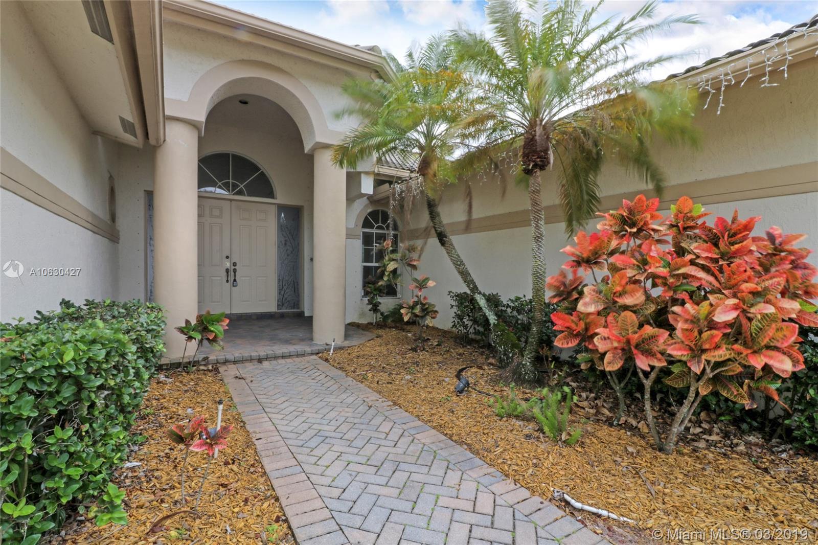 A spacious 4 bedroom, 3 bathroom single family home with a pool, on a lake, located on a cul-de-sac within the community of Weston Hills at Edgewater. The spacious interior design offers a formal dining area, bar, and a combination family room and kitchen area viewing the lake and pool. Large windows throughout the rear of the home allow for ample natural lighting and are equipped with motorized shades. The split-bedroom design includes a master bedroom featuring a sliding glass door to the pool and lake views. The master bathroom has an en-suite bath, with dual sinks, jet tub, shower, and dual walk-in closets with built-in shelves. Weston Hills is a private golf course community offering basketball courts, tot lots, volleyball courts and clubhouse.