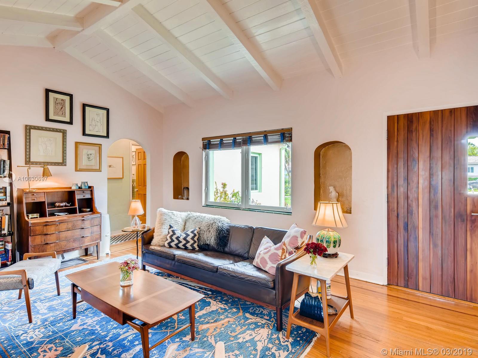 CHARMING 1920'S MIAMI SHORES GEM. LARGE LIVING ROOM FEATURES CATHEDRAL CEILING AND WOOD BURNING FIREPLACE. ORIGINAL OAK HARDWOOD FLOORS. FORMAL DINING ROOM. COZY FAMILY ROOM/DEN OPENS TO PRIVATE FENCED YARD WITH WOOD DECK AND AN ARRAY OF TROPICAL LANDSCAPING. GARAGE WAS CONVERTED BY PRIOR OWNER AND IS CURRENTLY USED AS THIRD BEDROOM. ARCHITECT PLANS AVAILABLE FOR CONVERSION TO FULL MASTER SUITE AND ENLARGED KITCHEN. GREAT LOCATION WITHIN WALKING DISTANCE TO STORES, RESTAURANTS, BANKS, POST OFFICE & LIBRARY. A RARE FIND! NOTE, CURRENT LIVING AREA AS PER RECENT ARCHITECT DRAWINGS.
