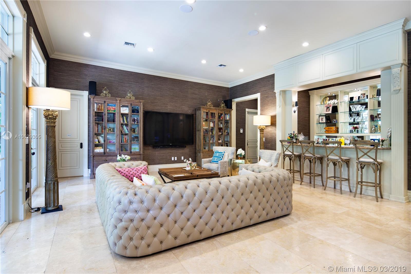 Exquisite North Pinecrest Estate on Private Cul-de-Sac Presents w/ 7 Bedrooms-8.5 baths-8,687 SF on Acre Lot. Marble Flooring-12' Ceilings-Exceptional Living & Dining Rooms-Movie Theater-Mahogany Office-Grand Luxe Gourmet Kitchen w/ Stainless Steel Appliances-Formal Bar & Family Room for Hosting & Entertaining. Fabulous Summer Kitchen & Terrace Overlooking Pool & Gardens. Upstairs Enjoy Glamorous Master Suite w/ Spa Bath & Designer Closet. 4 More En-Suite Bedrooms w/ Game Room. House-Keeping Qtrs-3 Car Garage-All Impact Windows & Doors. Luxury at its Finest. First showing Monday, March 11