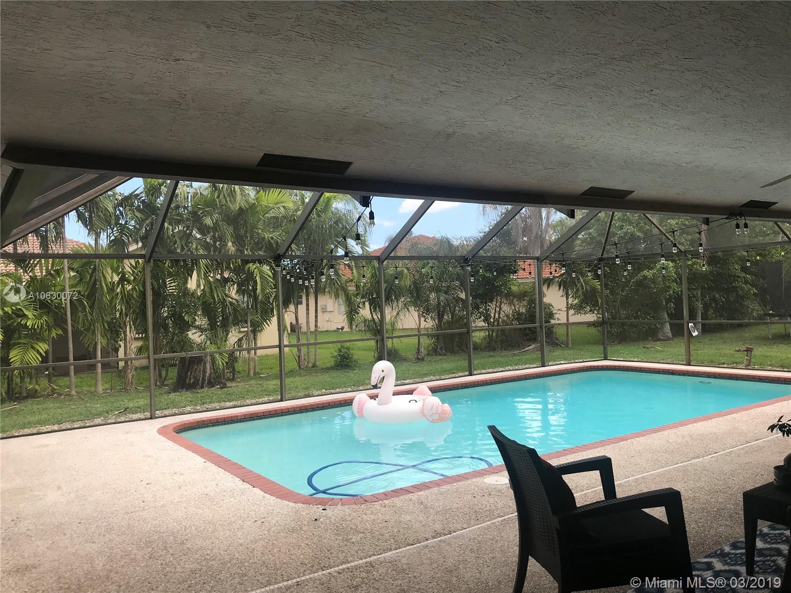 Beautiful Coral Springs pool home with open floorplan, vaulted ceilings, open kitchen great for entertaining, screened non-chlorine pool, tiled floors throughout, impact windows and doors, updated bathroom, wet bar. Laundry room is inside the home not the garage, three closets in the master bedroom are a plus, all other rooms are spacious as well as the second bath. Great schools and location with easy access to highway.