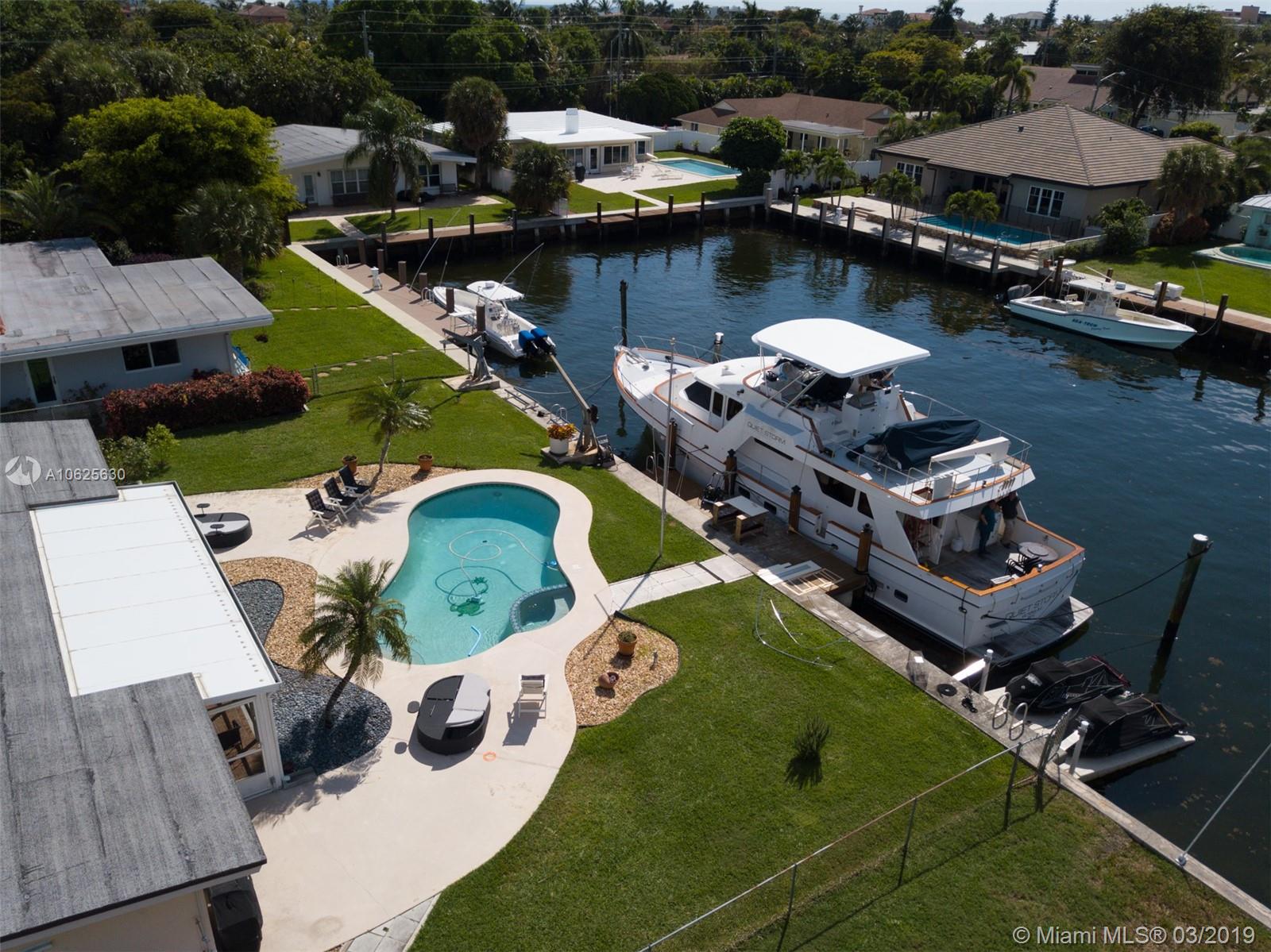 Boater's paradise on area's widest private canal and just 10 minutes out to the Atlantic. Walk only 3 blocks to the ocean and have access to an optional private beach. Dock for up to 70' boat. Sea Doo's and dock only 2 years old also available. Seawall and docks in great shape. This is a great lot in the exclusive and quiet Hillsboro Shores. Newly heated pool. Memberships available at the Hillsboro Beach Club.