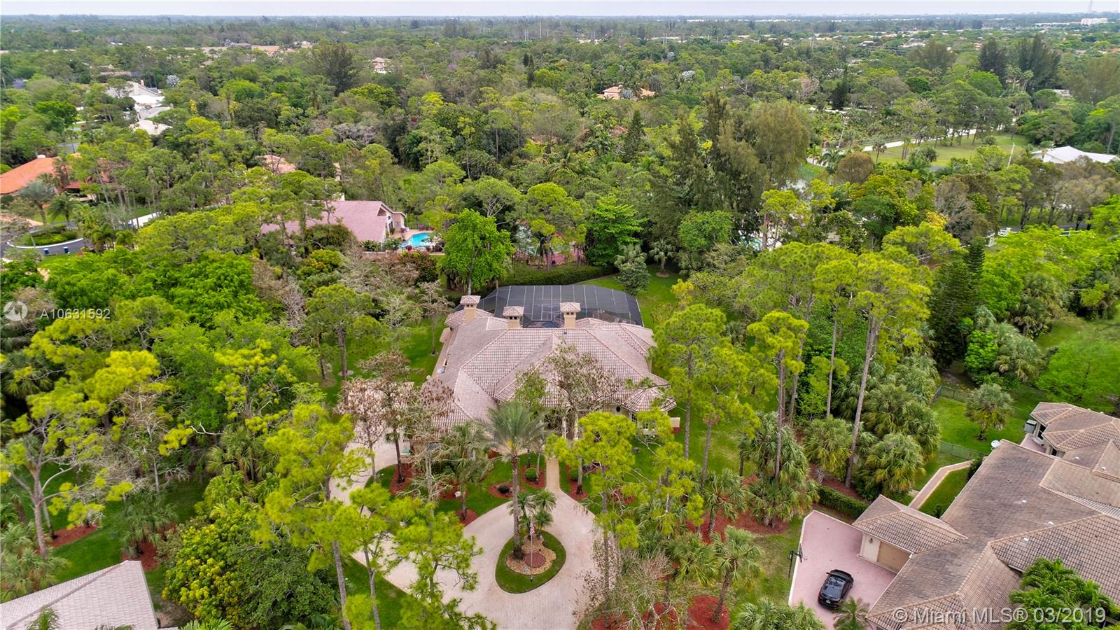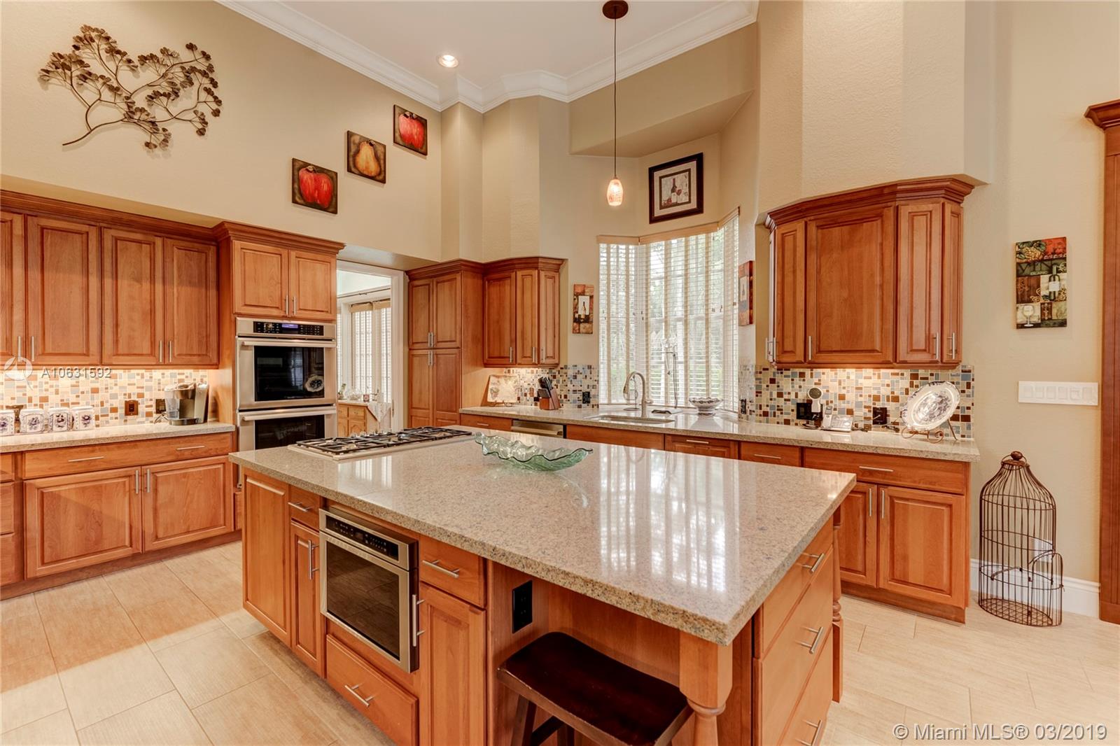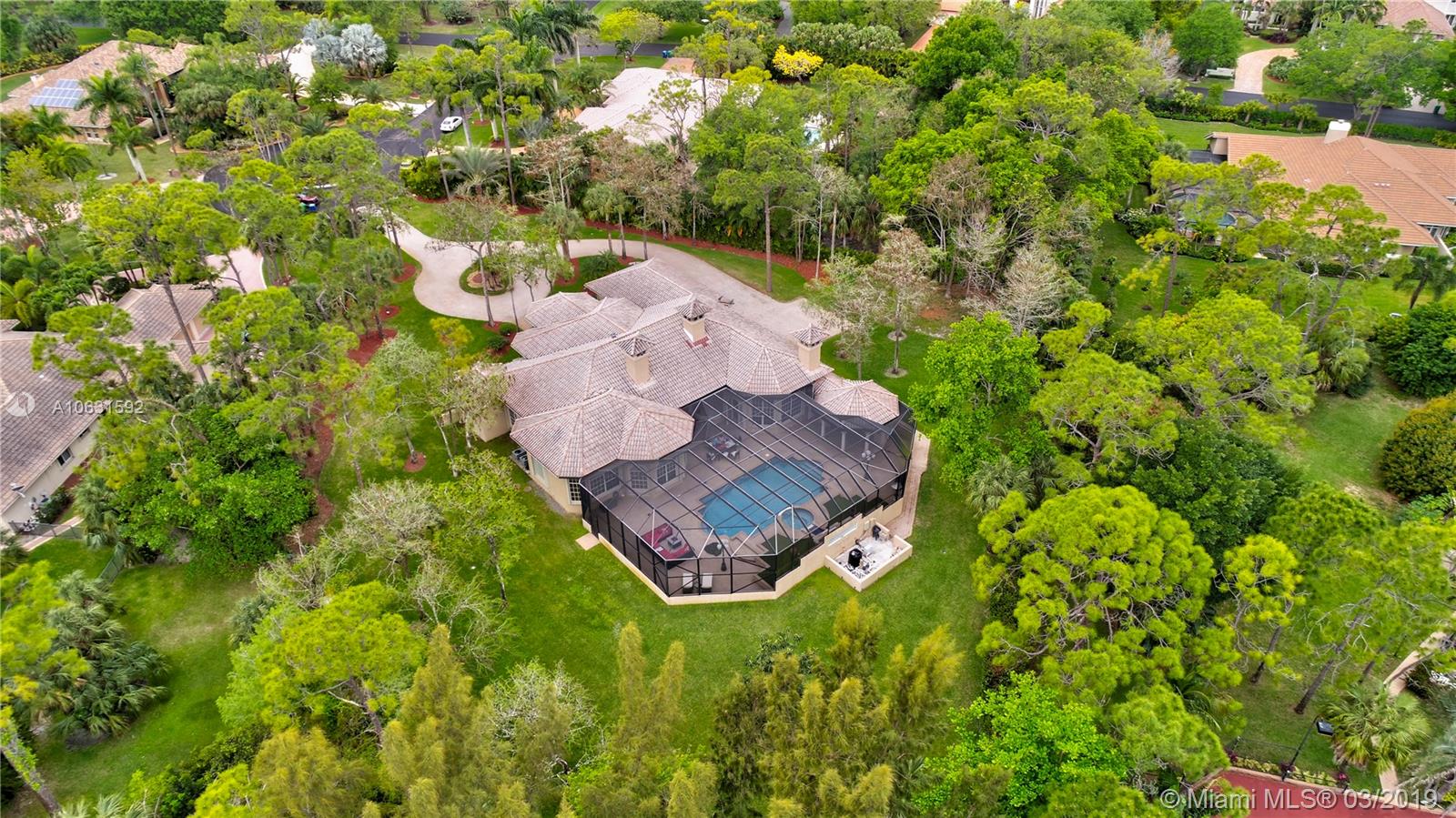 Impeccable 4,800 SQ FT home built in 1994 on 1.25 acre cul-de-sac lot in prestigious Whispering Woods. This is the only community in Coral Springs with 1+ acre lots that is 24-hour manned and gated. Stunning grand entrance invites you to this 4 bedroom/5 bath (3 full & 2 half) with marble tile floors. Home also has a den and a gym. Master suite has two walk in cedar closets with cabinetry. Dream kitchen has been totally remodeled with top of the line Thermador appliances, Silestone Quartz countertops and an oversized island. Kitchen has a built-in wine refrigerator and a built-in microwave drawer. There are three working gas fireplaces and two attics with floors for storage. Laundry room has Bosch large capacity washer and dryer and plenty of cabinets.