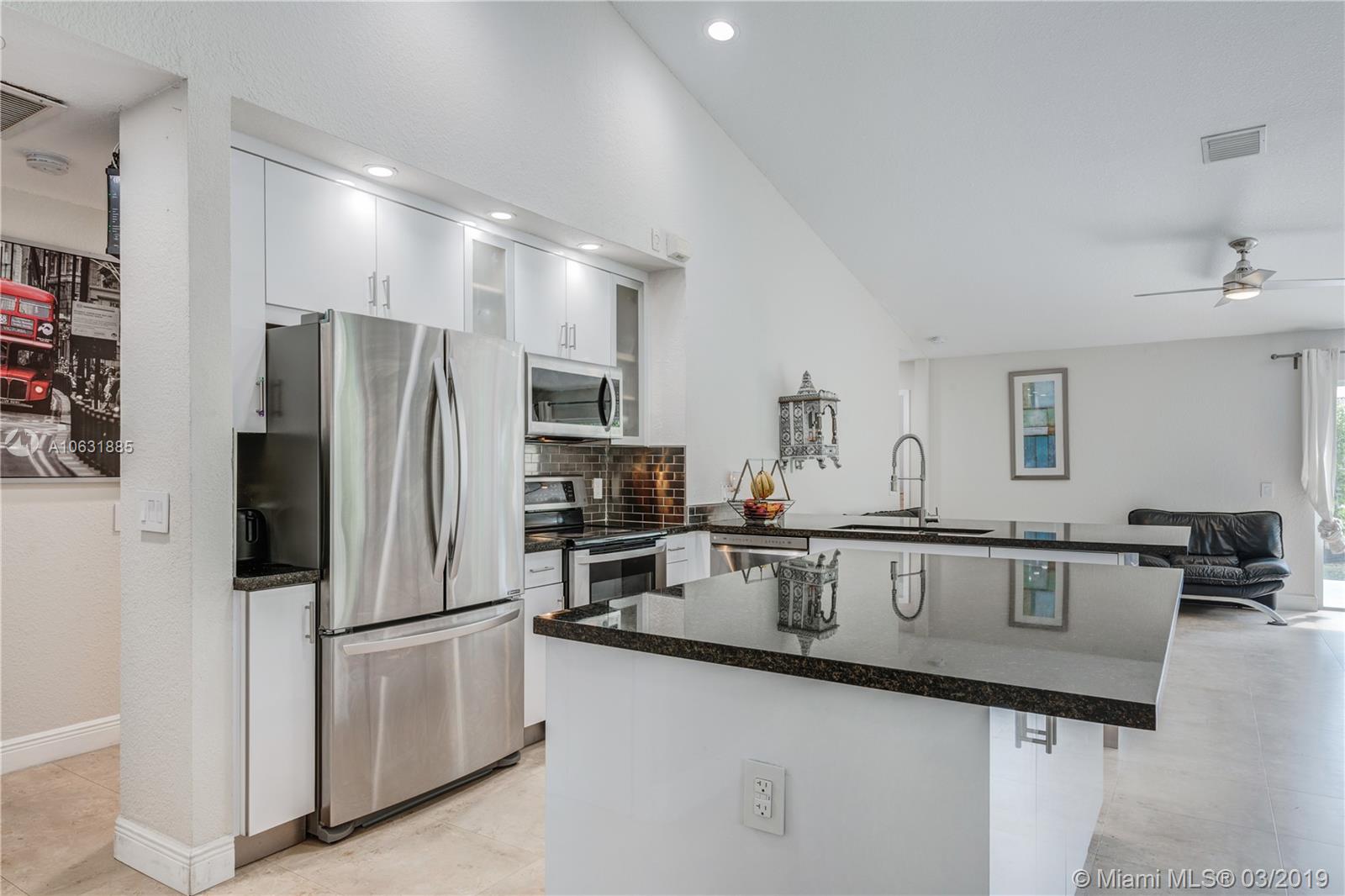 Complete renovation! This contemporary, open concept home features stunning modern Kitchen with stainless appliances, granite counters, and custom glass tile backsplash. Freshly painted inside and out. Living, Dining, and Family Rooms circle the Kitchen creating a floorplan perfect for entertaining. New tile floors throughout create seamless, stunning interior. Bedrooms feature wood looking modern tile for easy maintenance. Both Bathrooms are newly upgraded with all the modern conveniences. Master Bath has glass enclosed shower. Cozy yard with patio is easy maintenance. Hurricane shutters for entire home. Gated Weston community, with five star resort style amenities offers hotel like pools, water slide, miniature golf, restaurant, fitness room, events, sports fields and so much more!